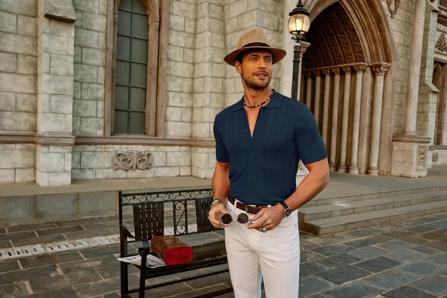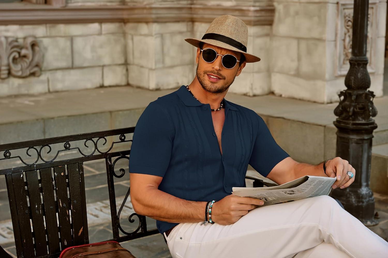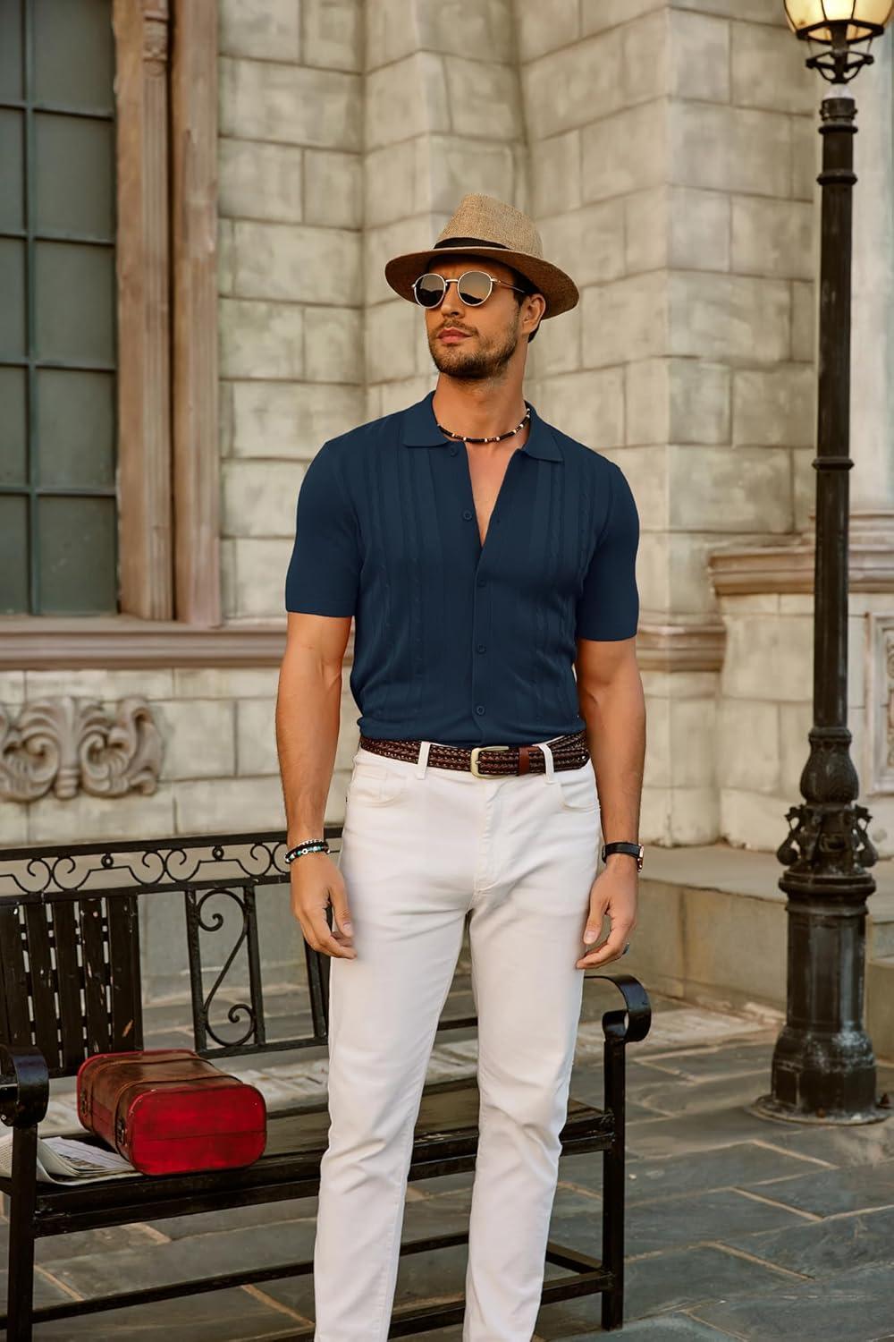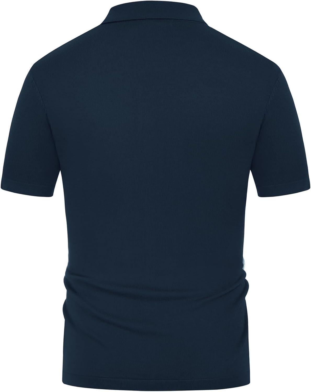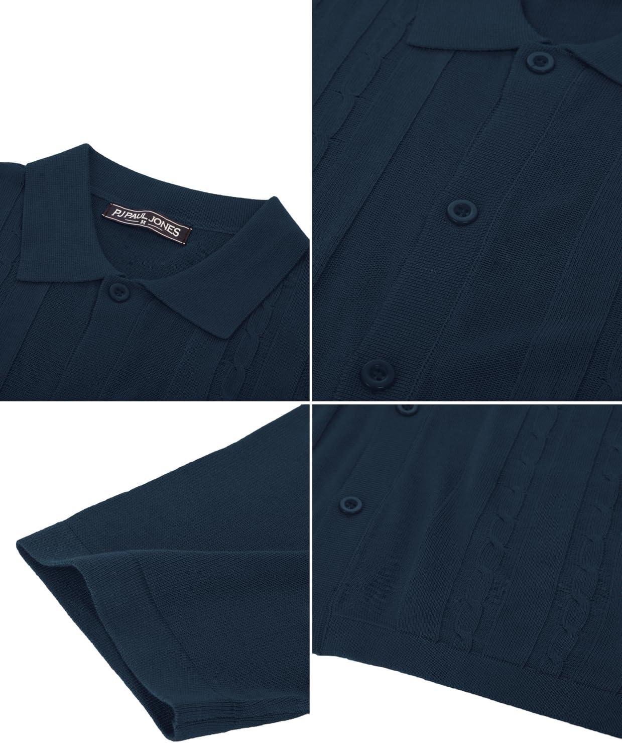 PJ PAUL JONES Mens Polo Shirts Vintage Striped Button Down Knitted Golf Shirts(Royal Blue)