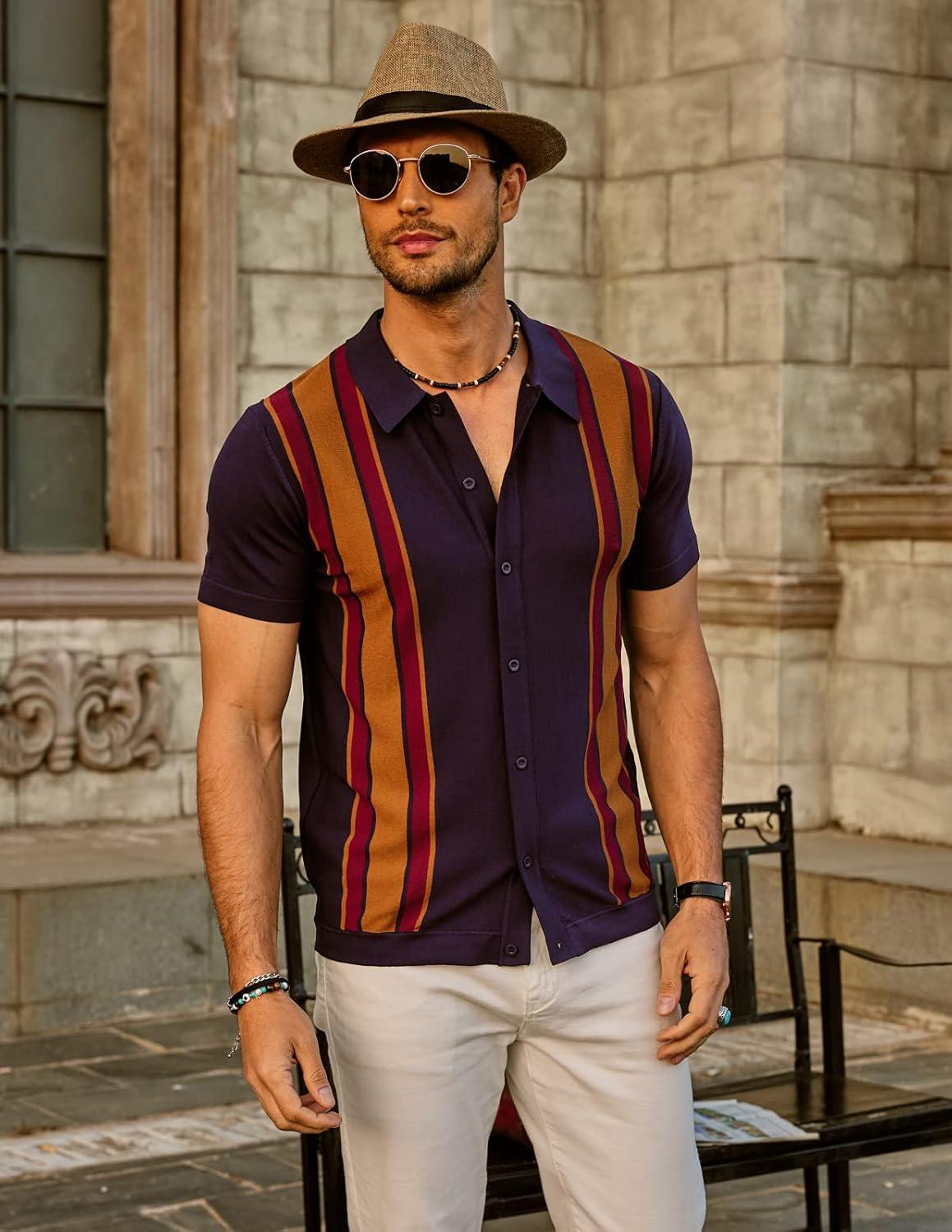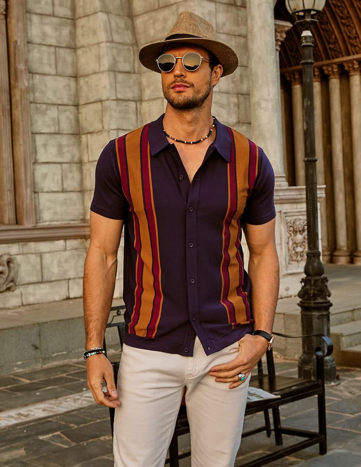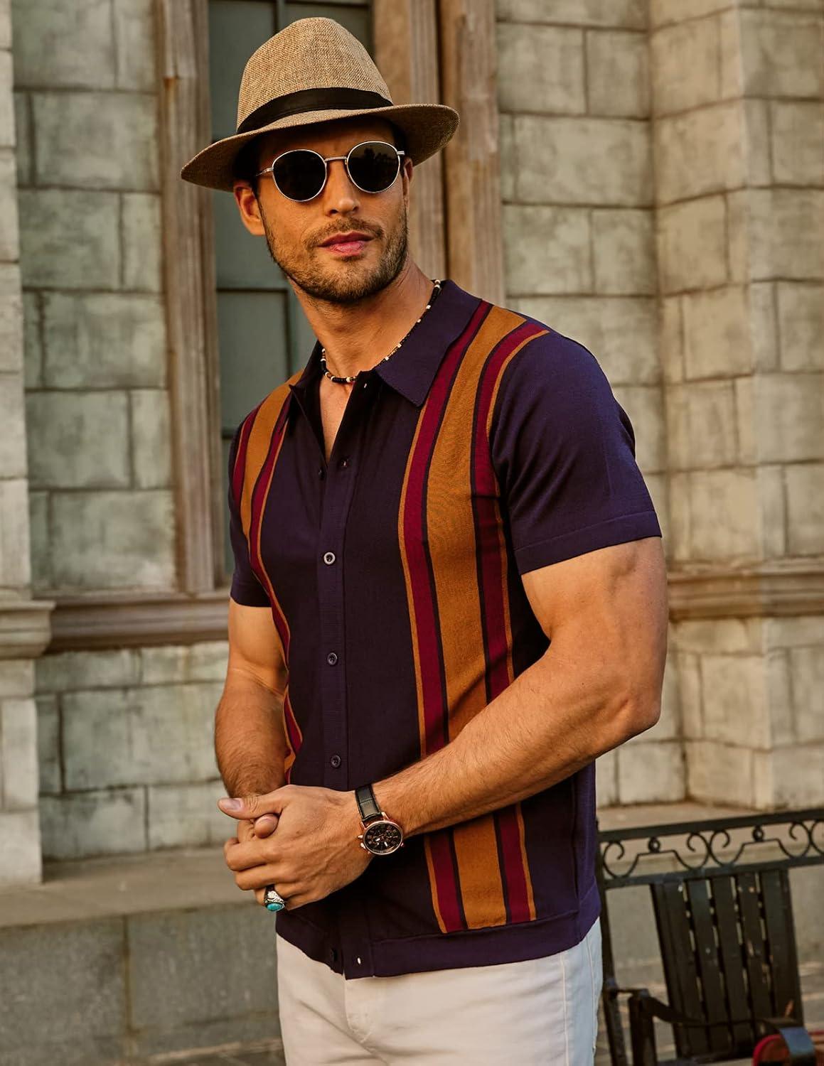 PJ Paul Jones Mens Polo Shirts Vintage Striped Lightweight Knitting Golf Shirts(Blue)