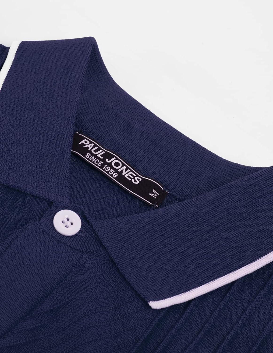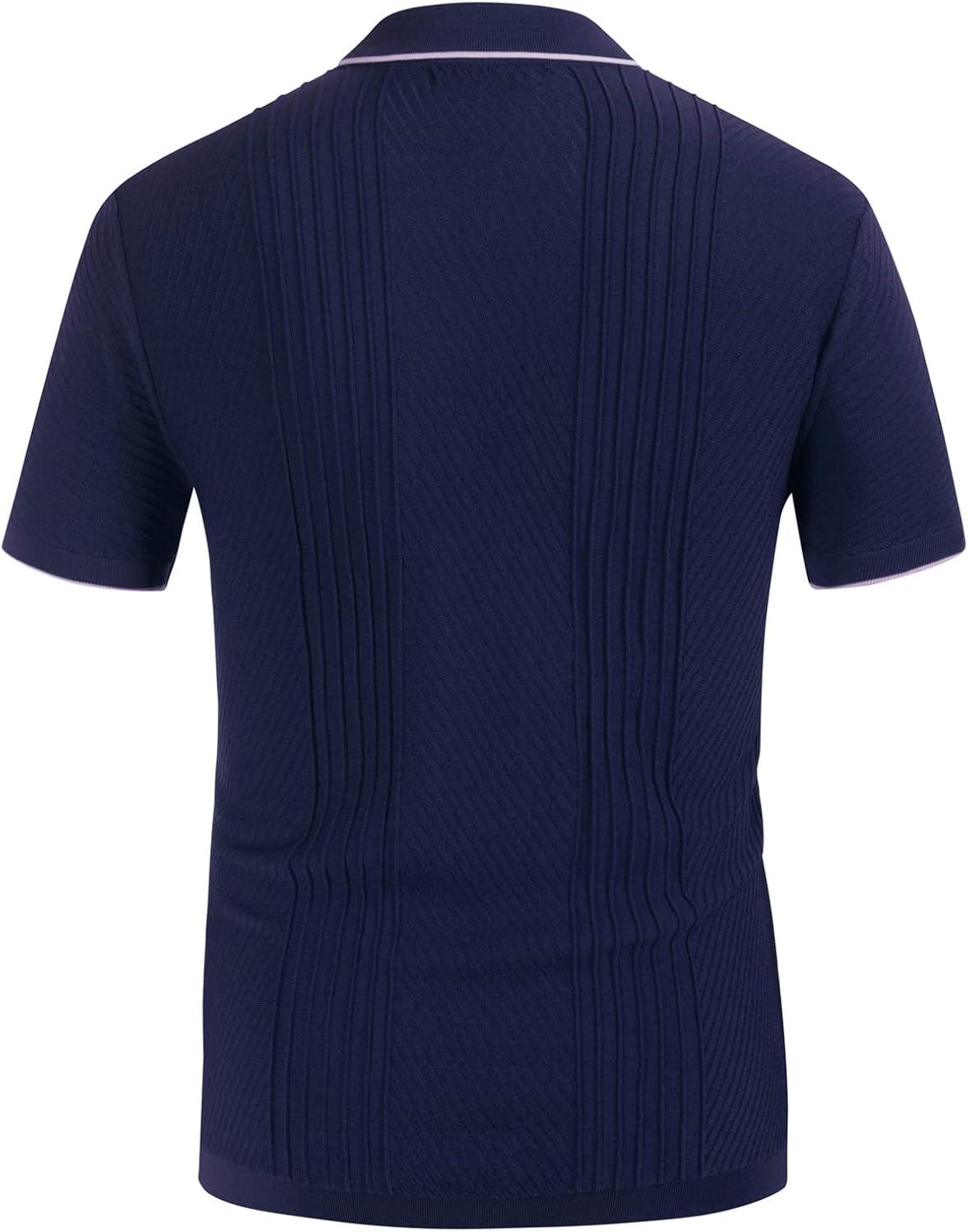 PJ Paul Jones Mens Polo Shirts Vintage Striped Lightweight Knitting Golf Shirts(Texture-royal Blue)