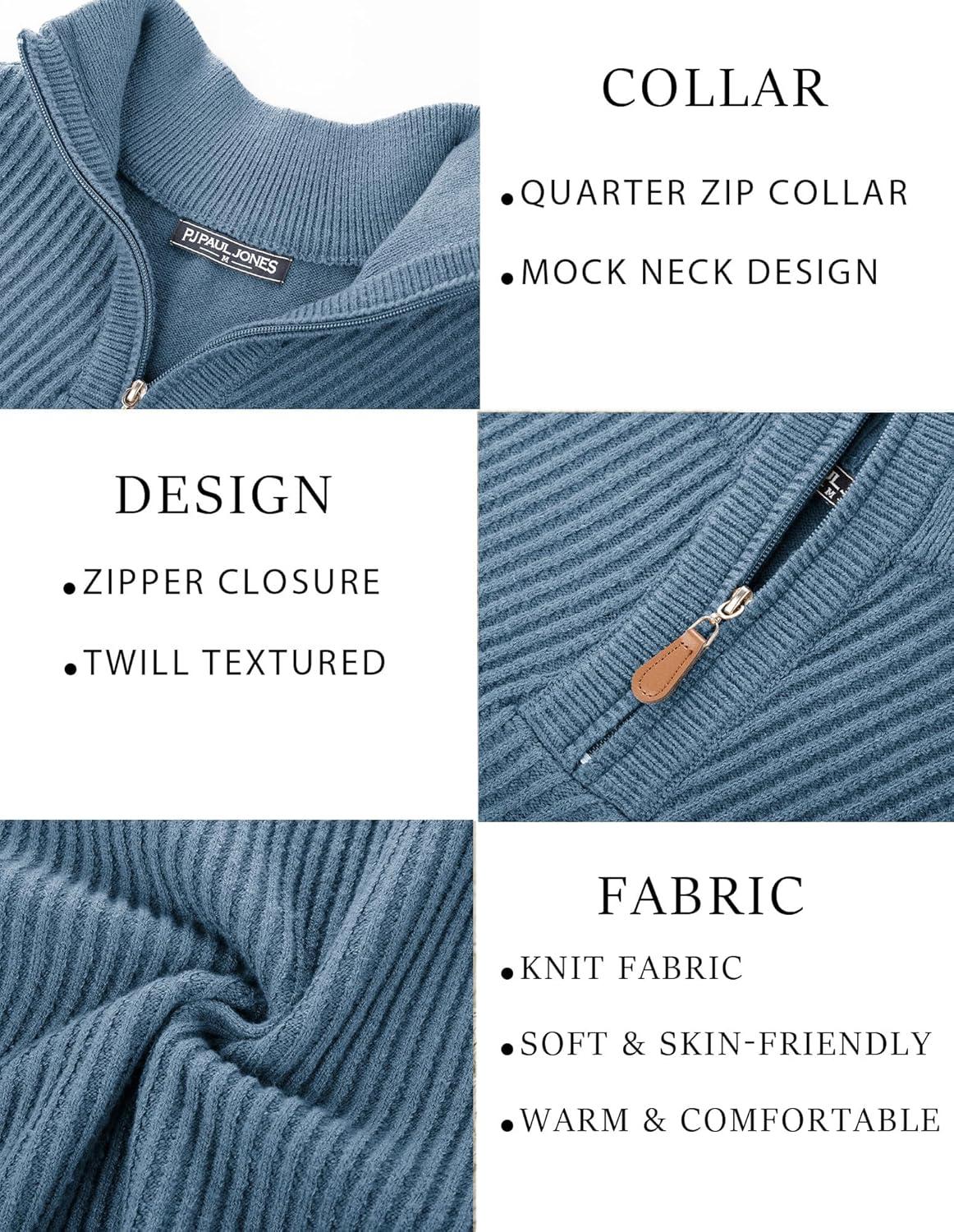 PJ PAUL JONES Mens Quarter Zip Pullover Sweaters Casual Slim Fit Knit Texture Sweater(Blue Gray)