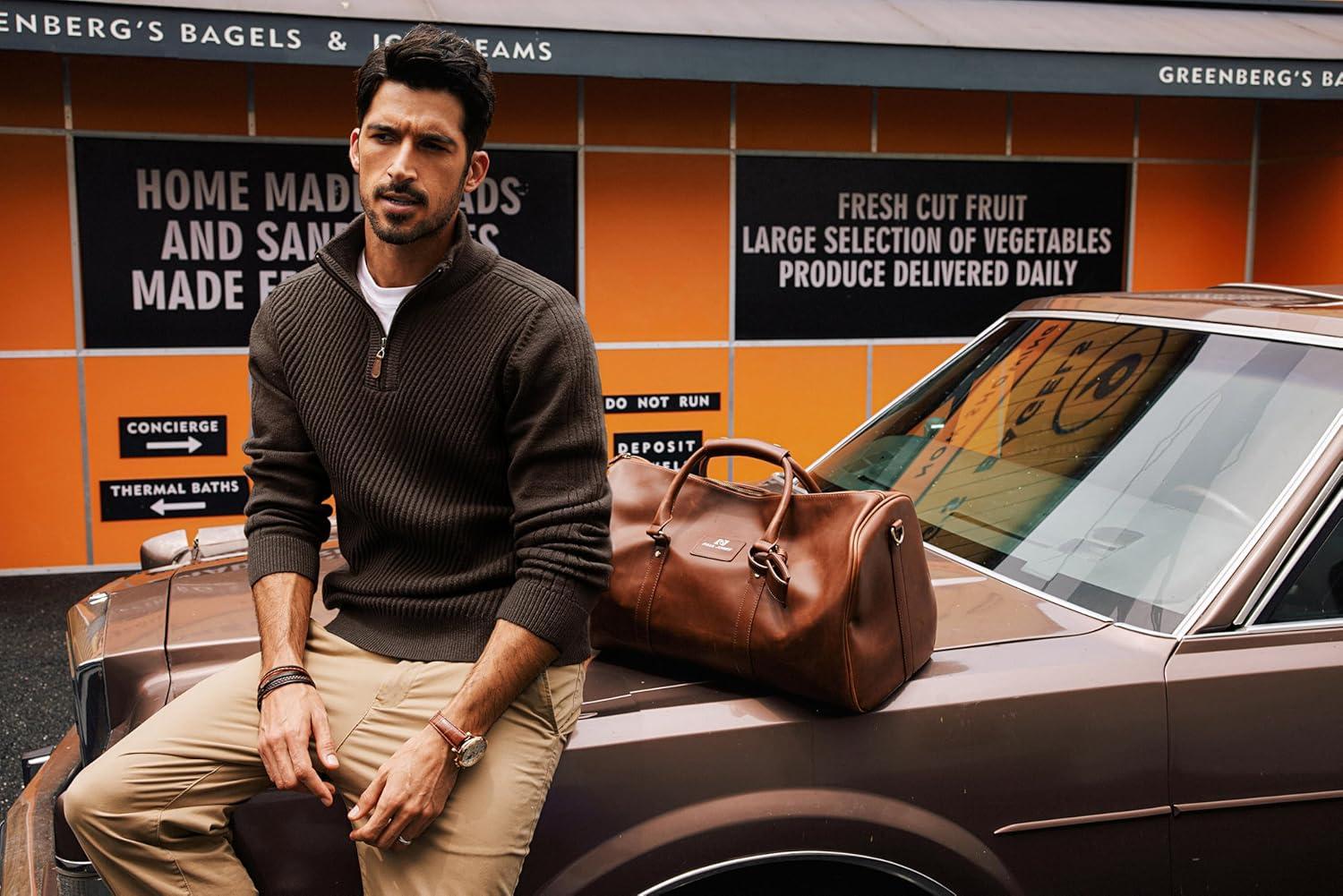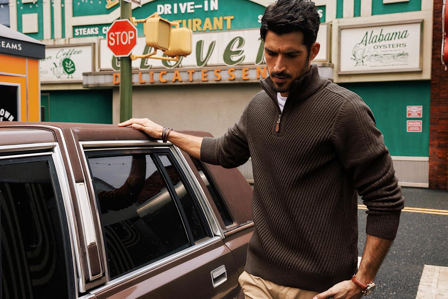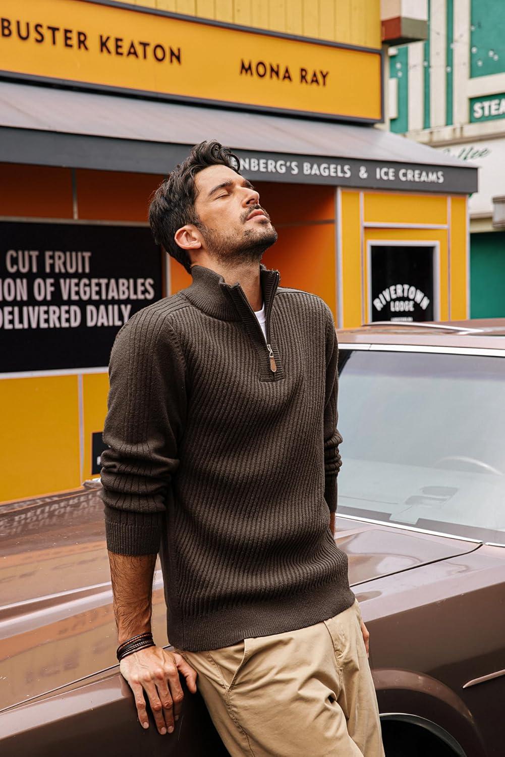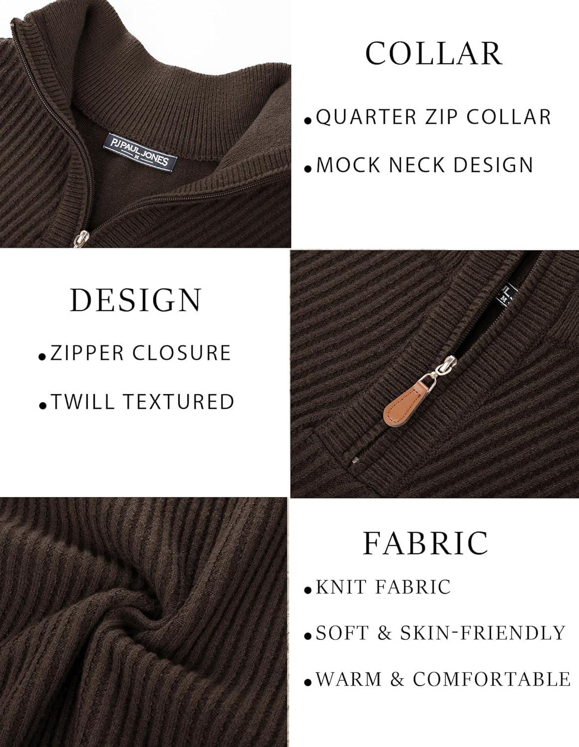 PJ PAUL JONES Mens Quarter Zip Pullover Sweaters Casual Slim Fit Knit Texture Sweater(Dark Coffee)
