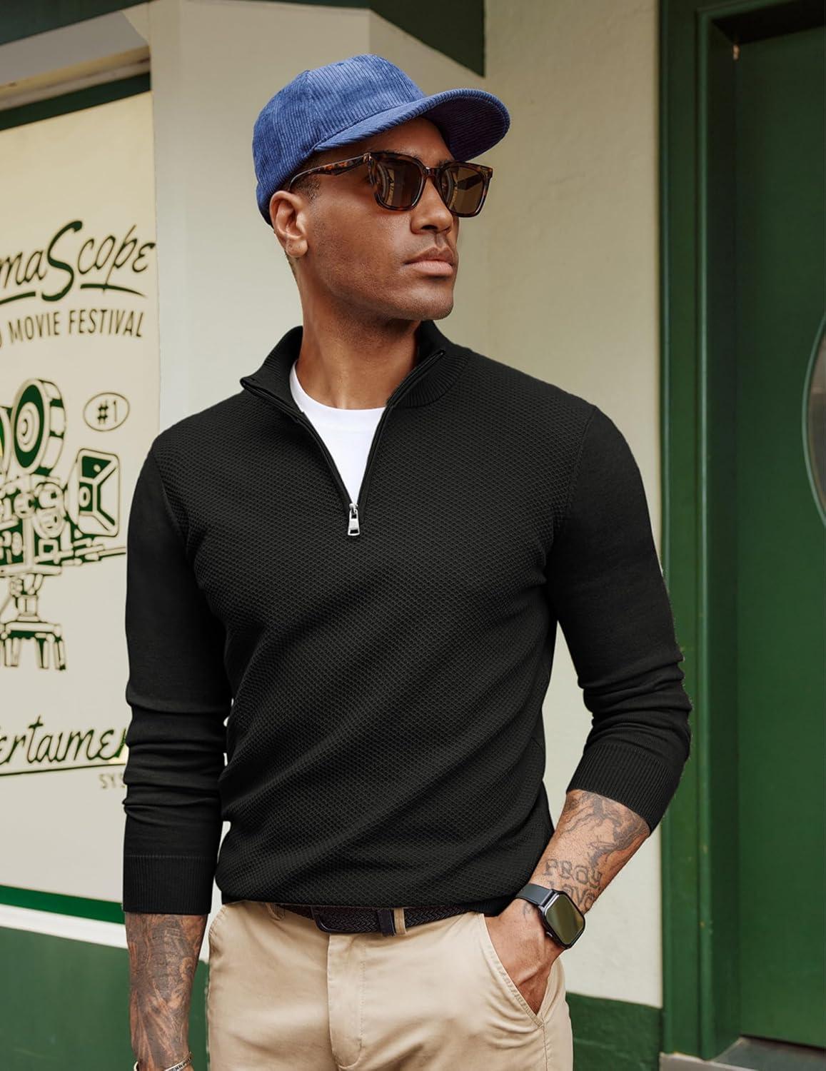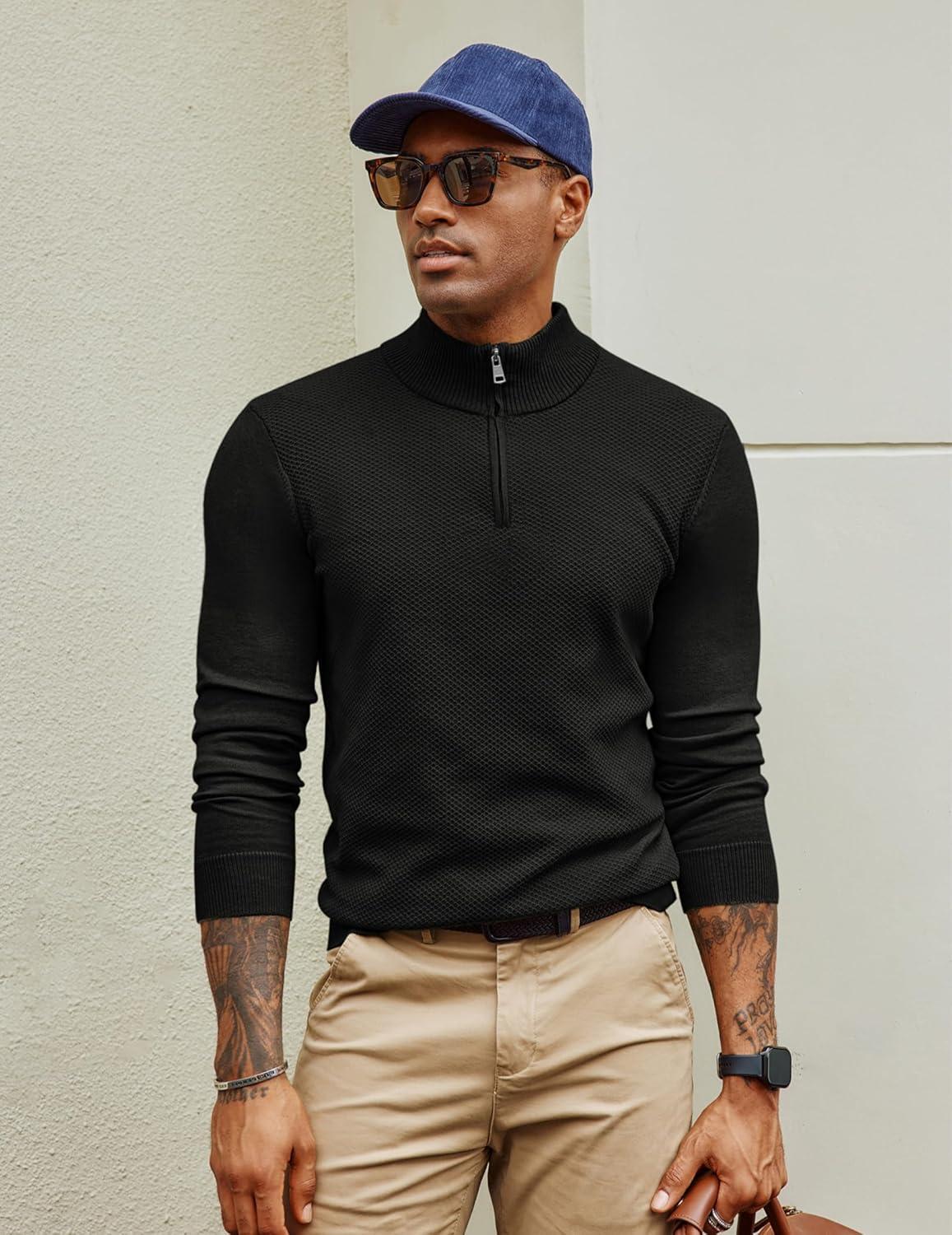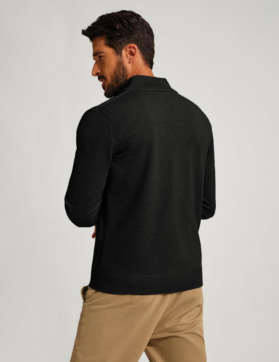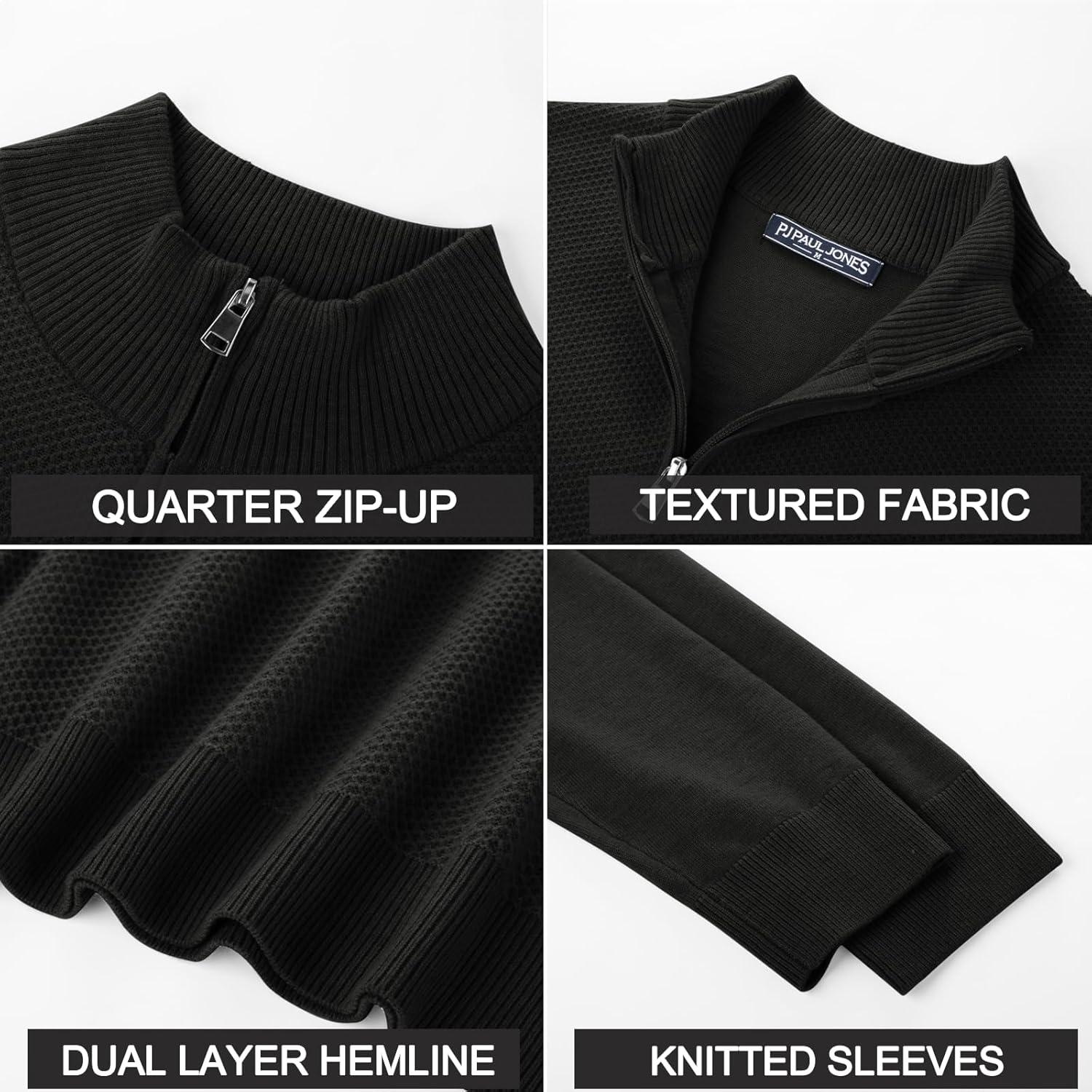 PJ PAUL JONES Mens Quarter Zip Pullover Sweaters Casual Slim Fit Lightweight Knit Sweater(Black)