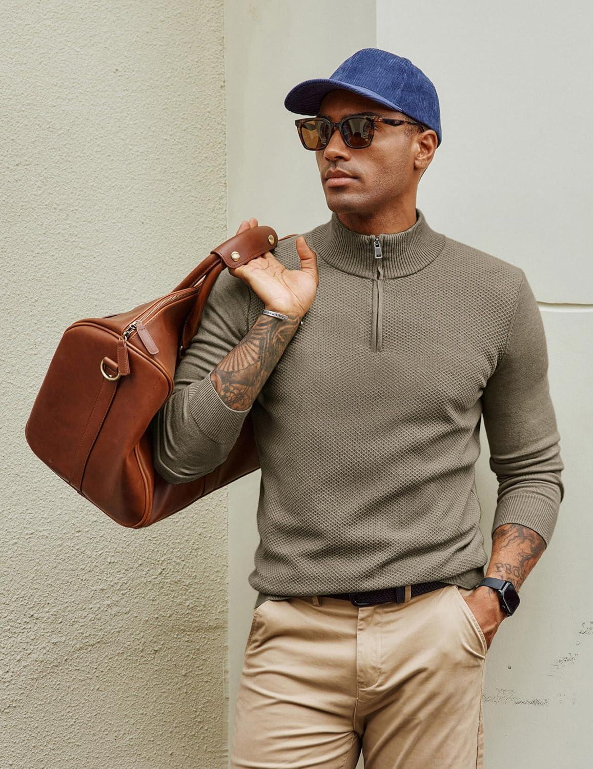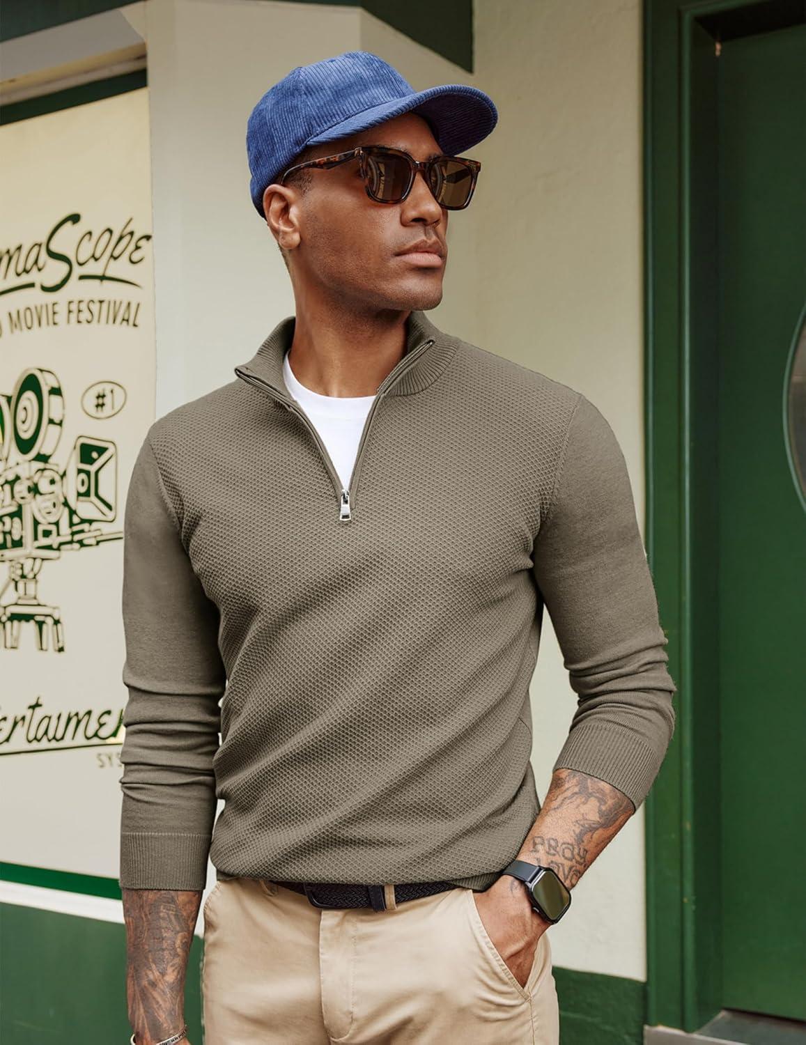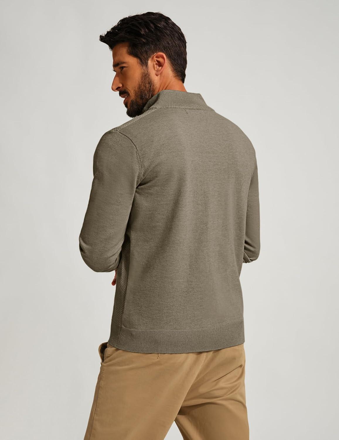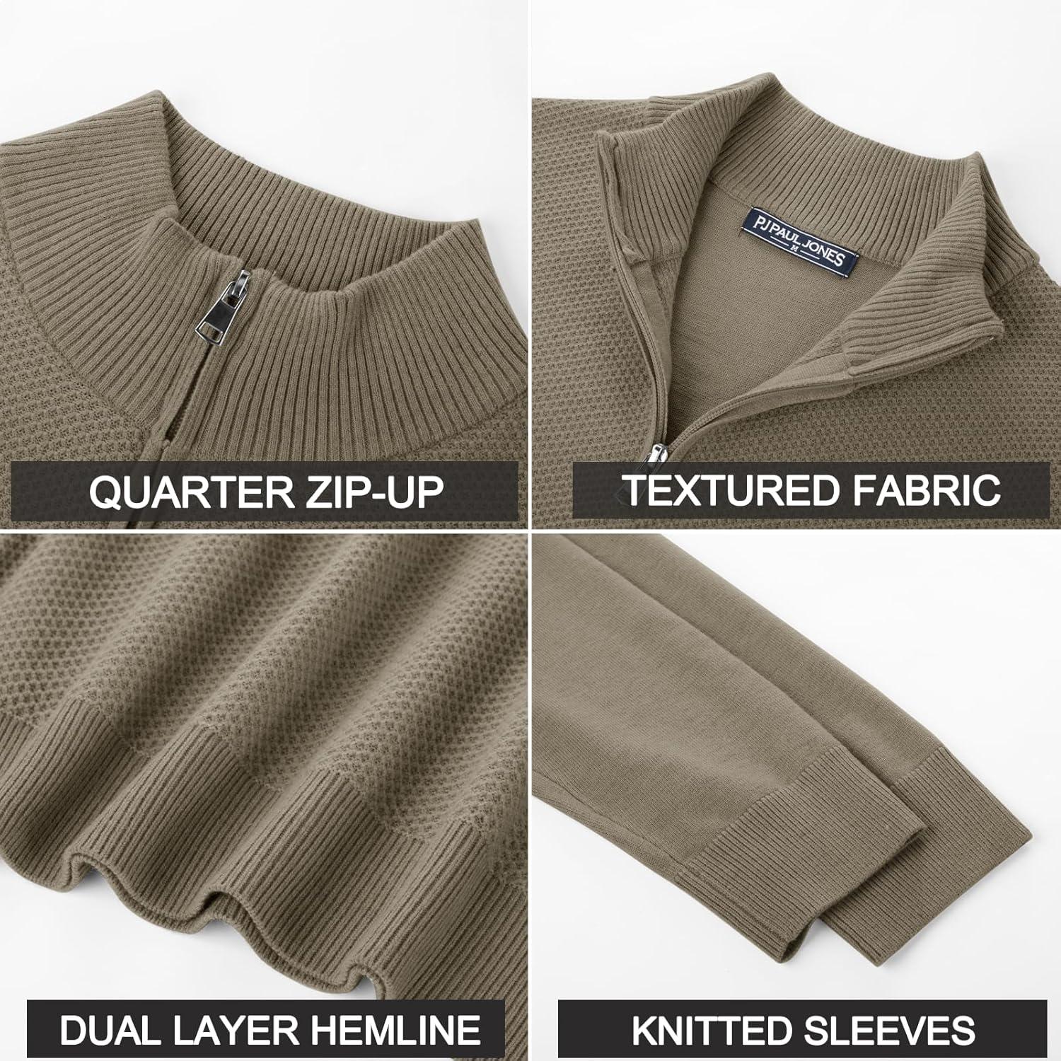 PJ PAUL JONES Mens Quarter Zip Pullover Sweaters Casual Slim Fit Lightweight Knit Sweater(Brown)