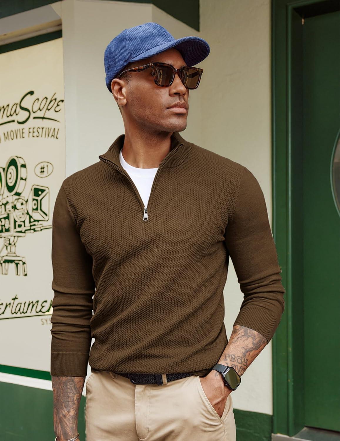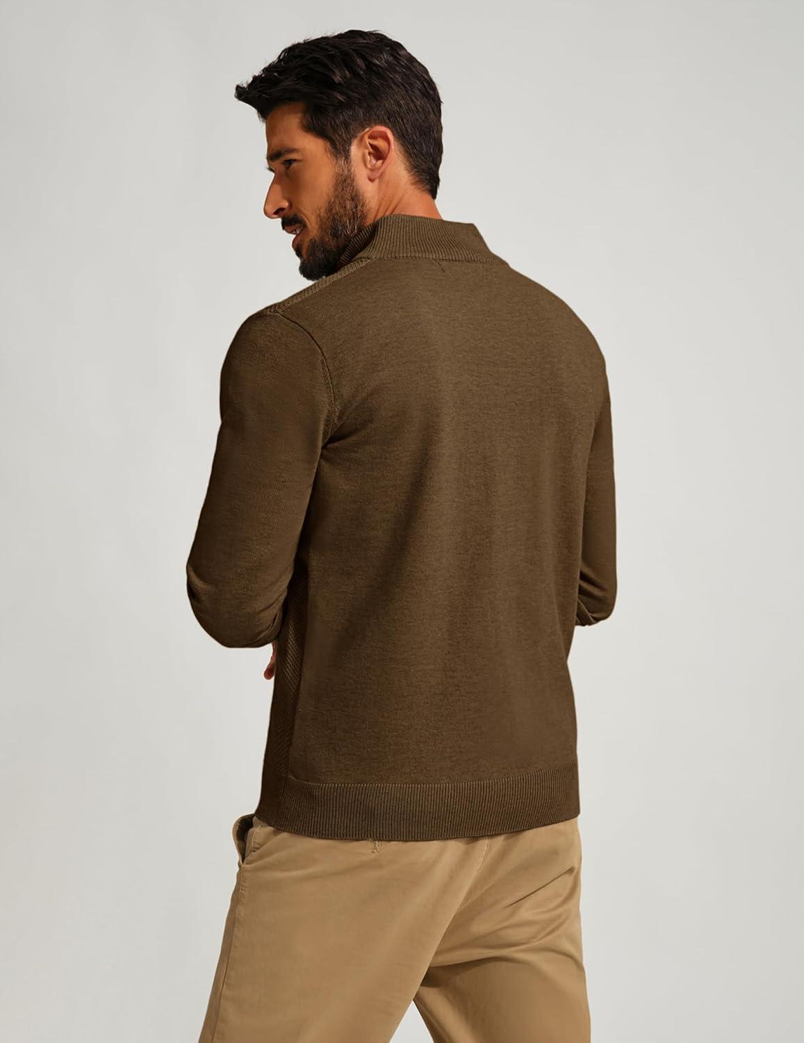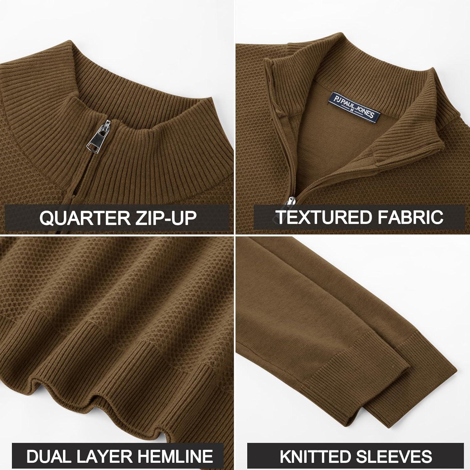 PJ PAUL JONES Mens Quarter Zip Pullover Sweaters Casual Slim Fit Lightweight Knit Sweater(Coffee)