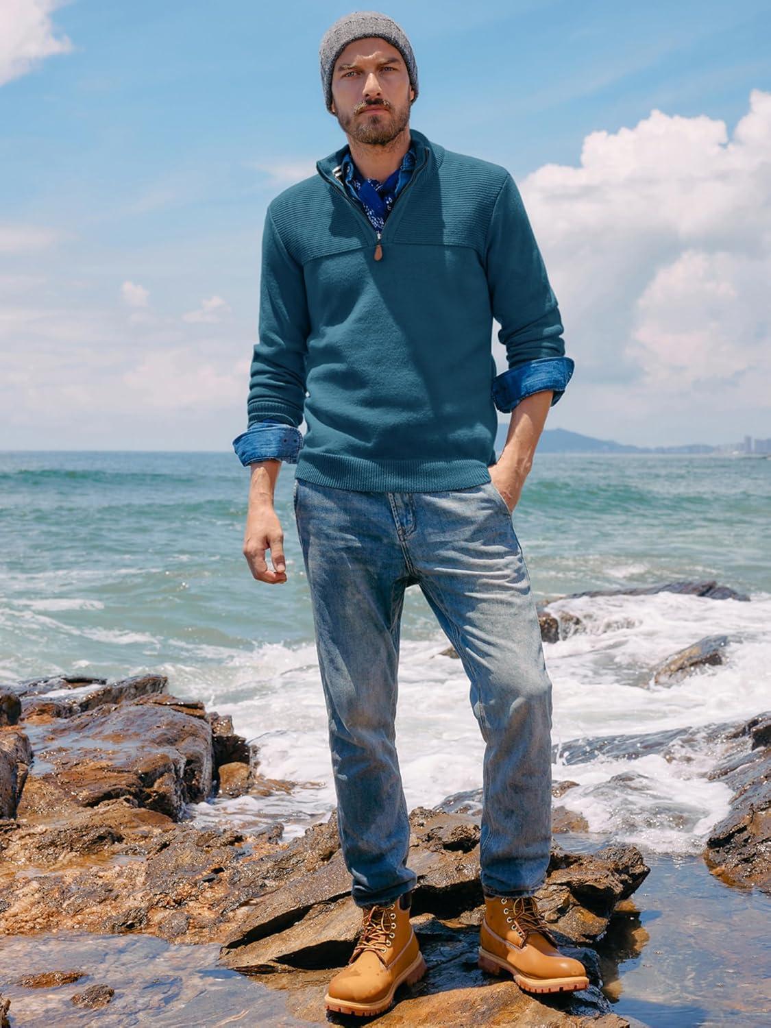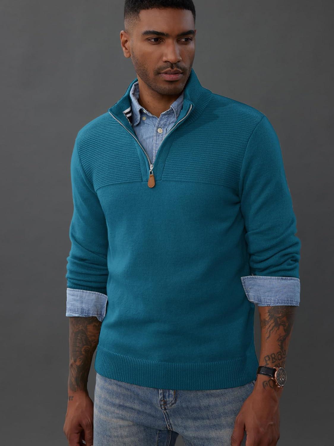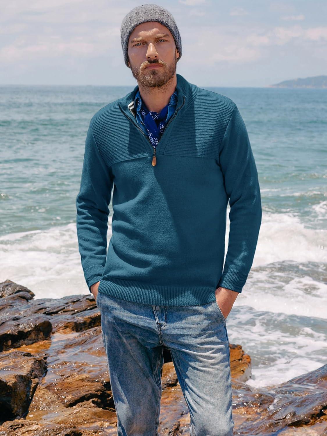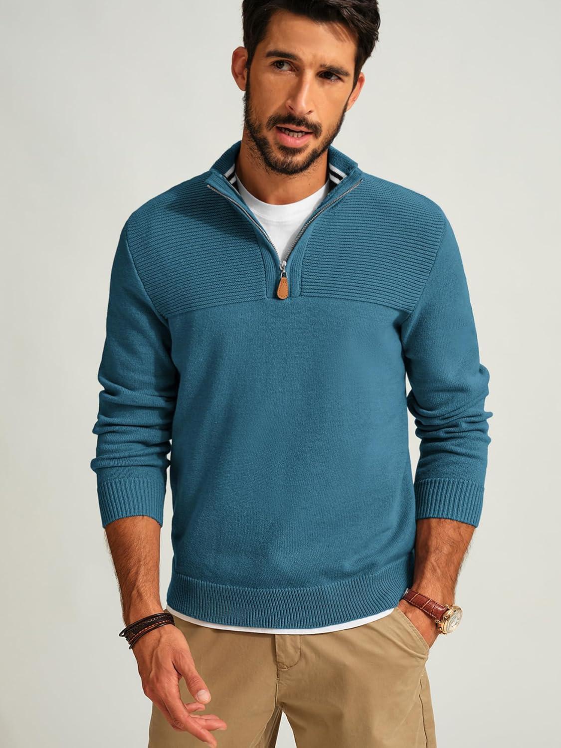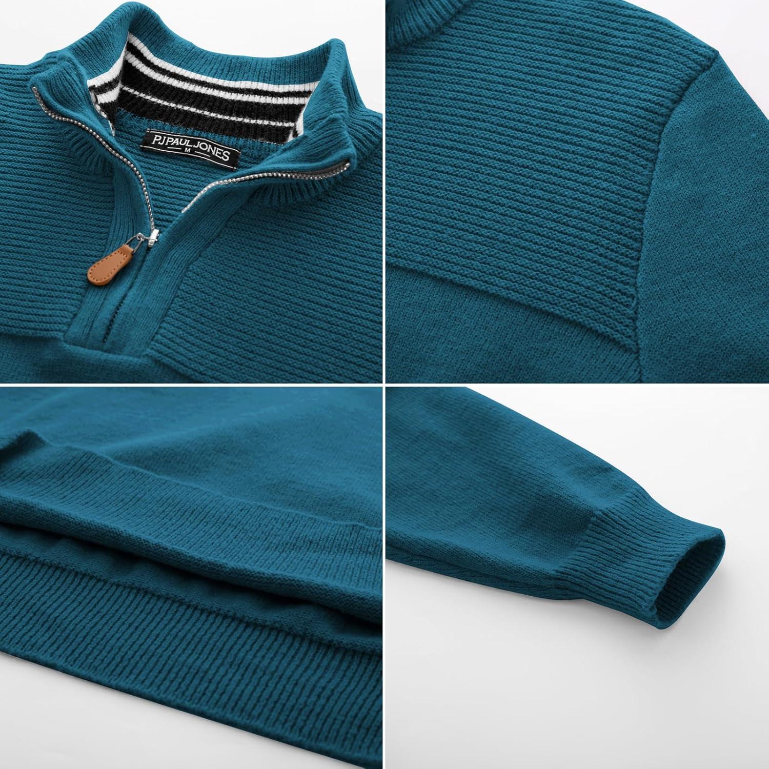 PJ PAUL JONES Men’s Quarter Zip Sweater Slim Fit Casual Pullover Sweater Mock Neck Polo Sweaters(Lake Blue)