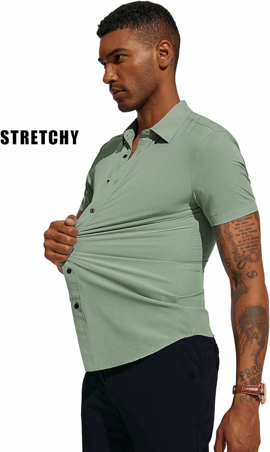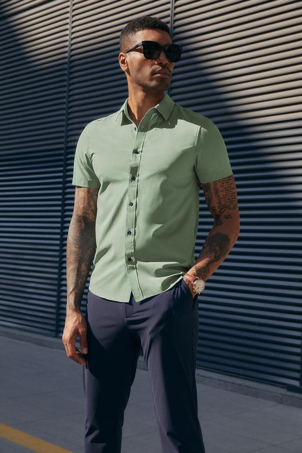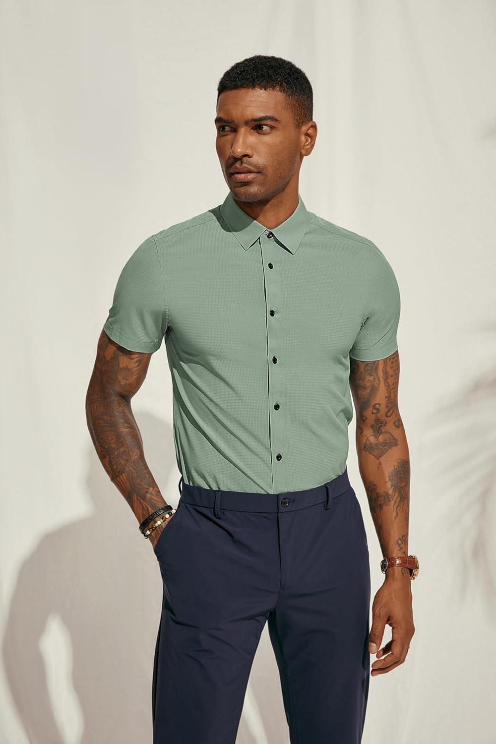 PJ PAUL JONES Mens Short Sleeve Button Down Shirts Wrinkle Free Stretch Dress Shirts for Men Casual Formal Shirt(Light Green)