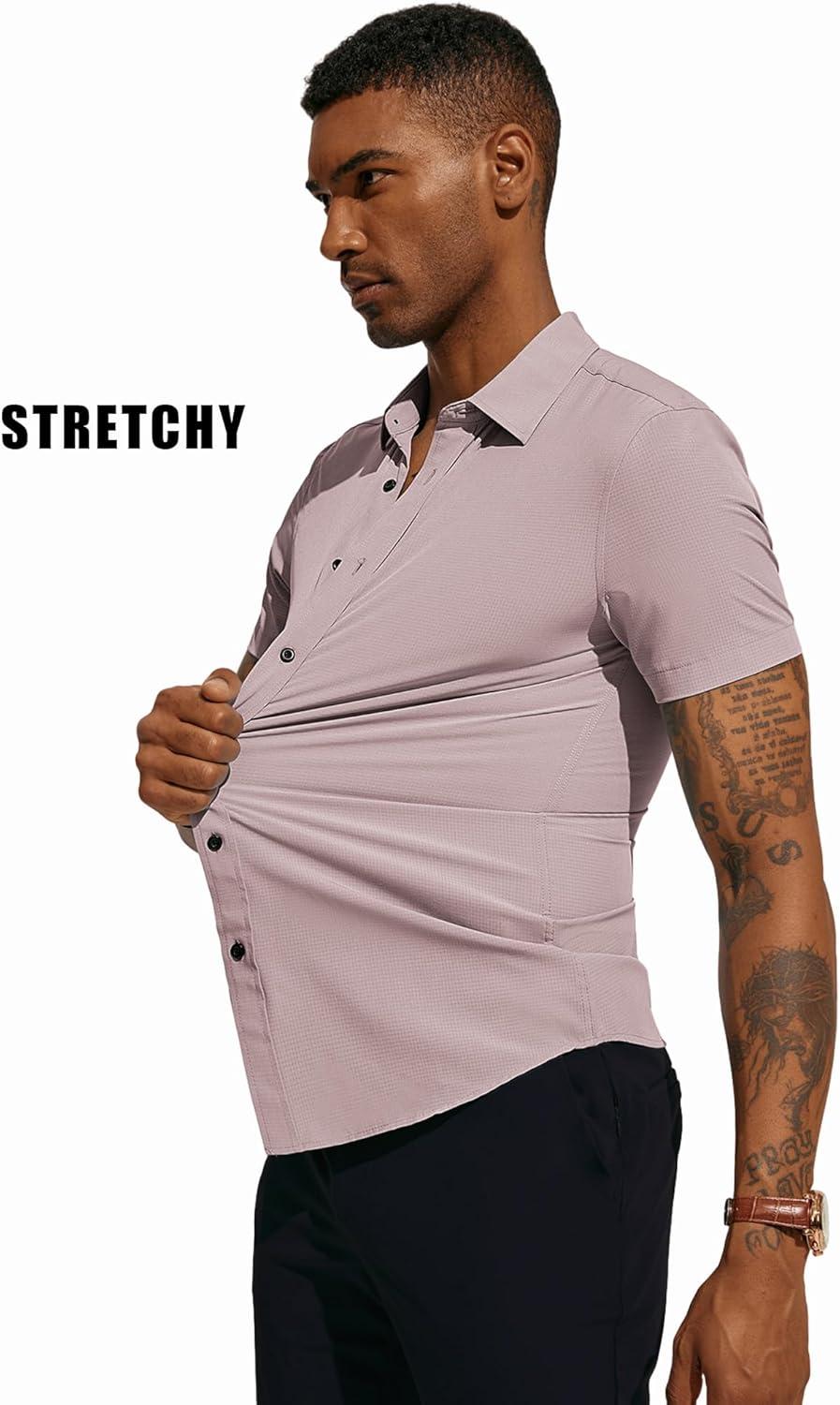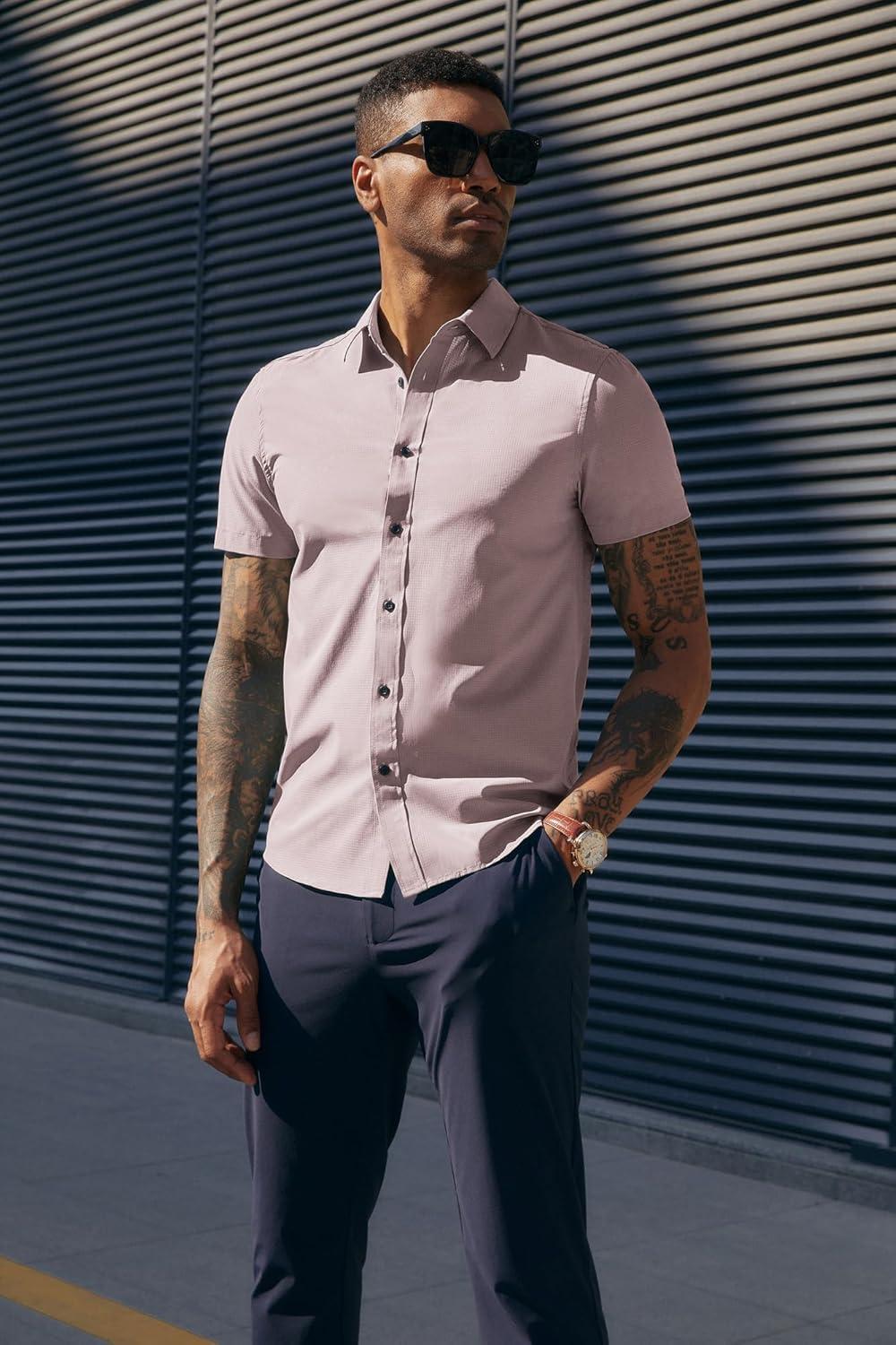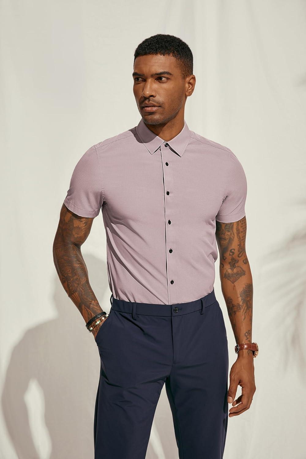 PJ PAUL JONES Mens Short Sleeve Button Down Shirts Wrinkle Free Stretch Dress Shirts for Men Casual Formal Shirt(Light Pink)