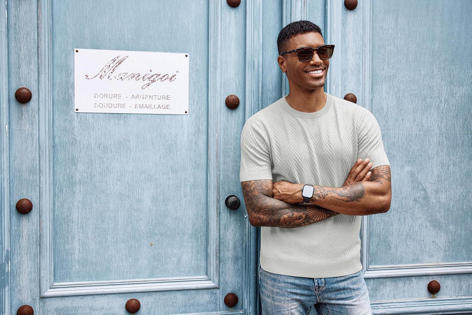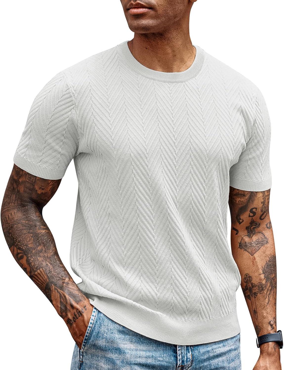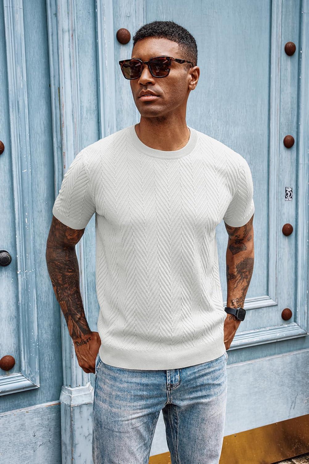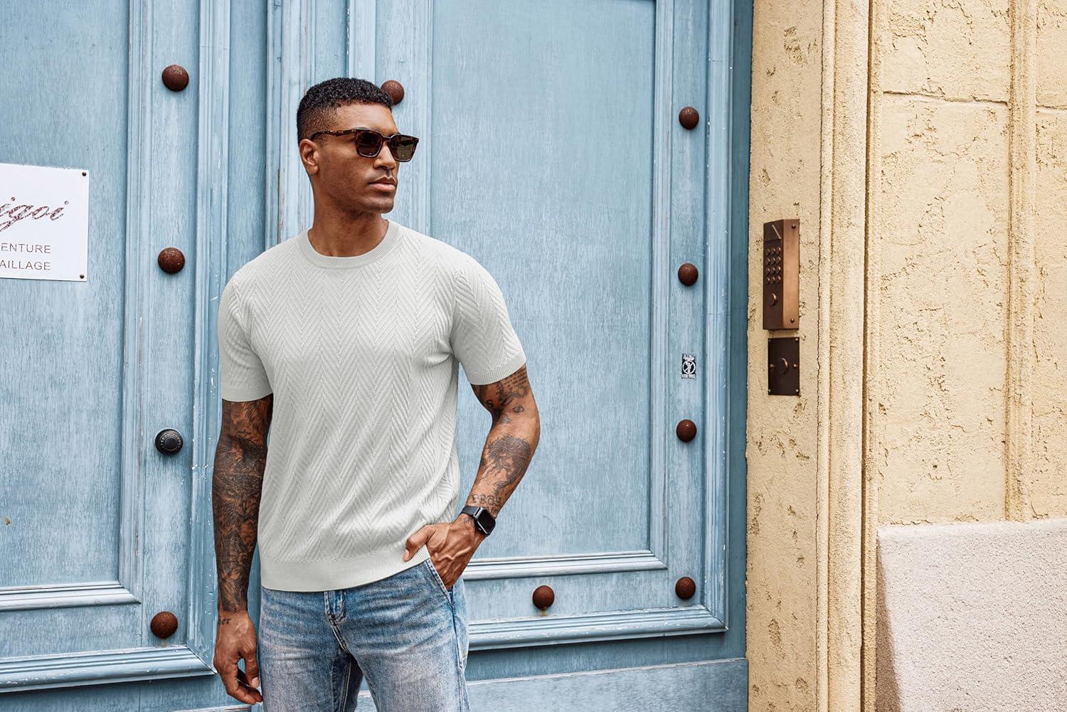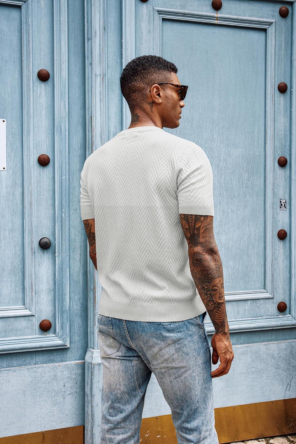 PJ PAUL JONES Men’s Short Sleeve Knit T-Shirts Casual Crewneck Solid Texture Knit Shirt(White)