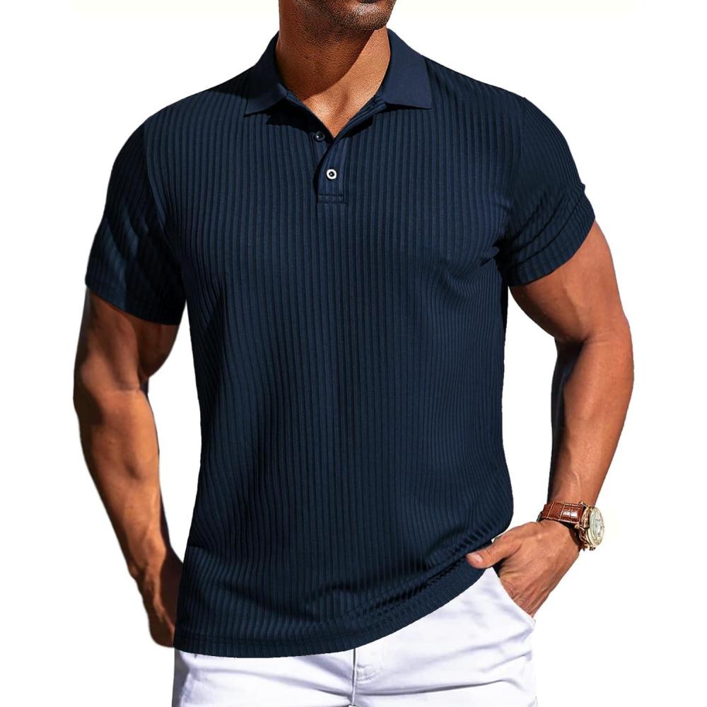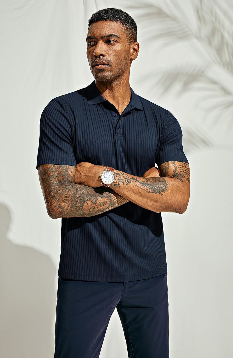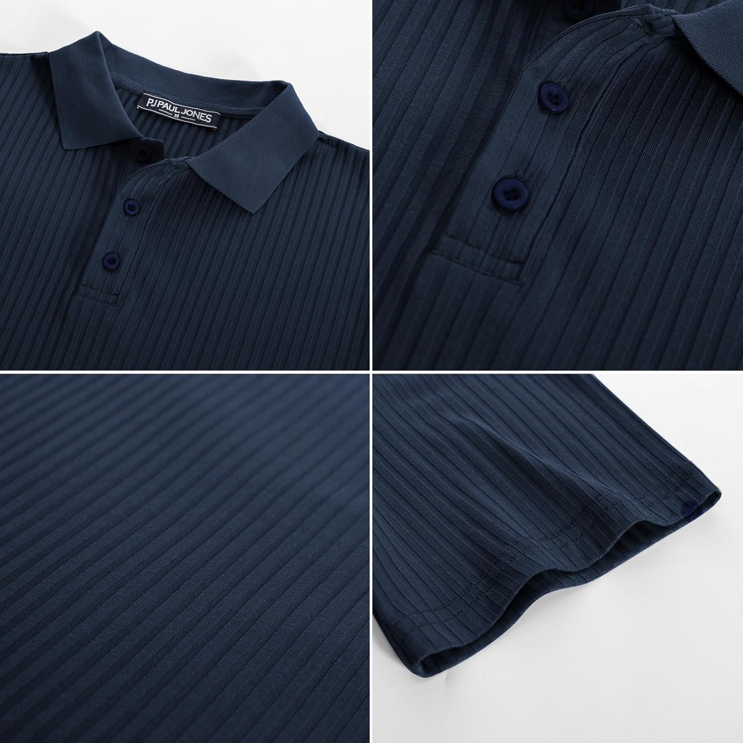 PJ PAUL JONES Mens Short Sleeve Texture Polo Shirts Casual Wrinkle Free Stretch Knit Golf Shirt Tops(Dark Blue)