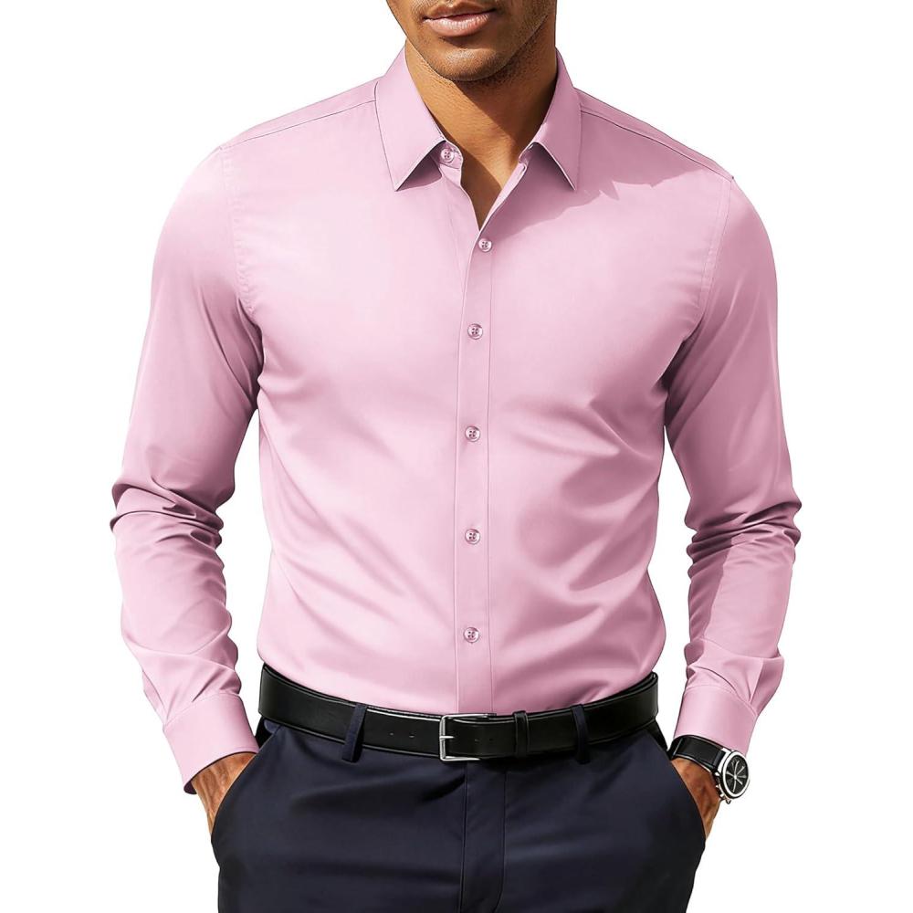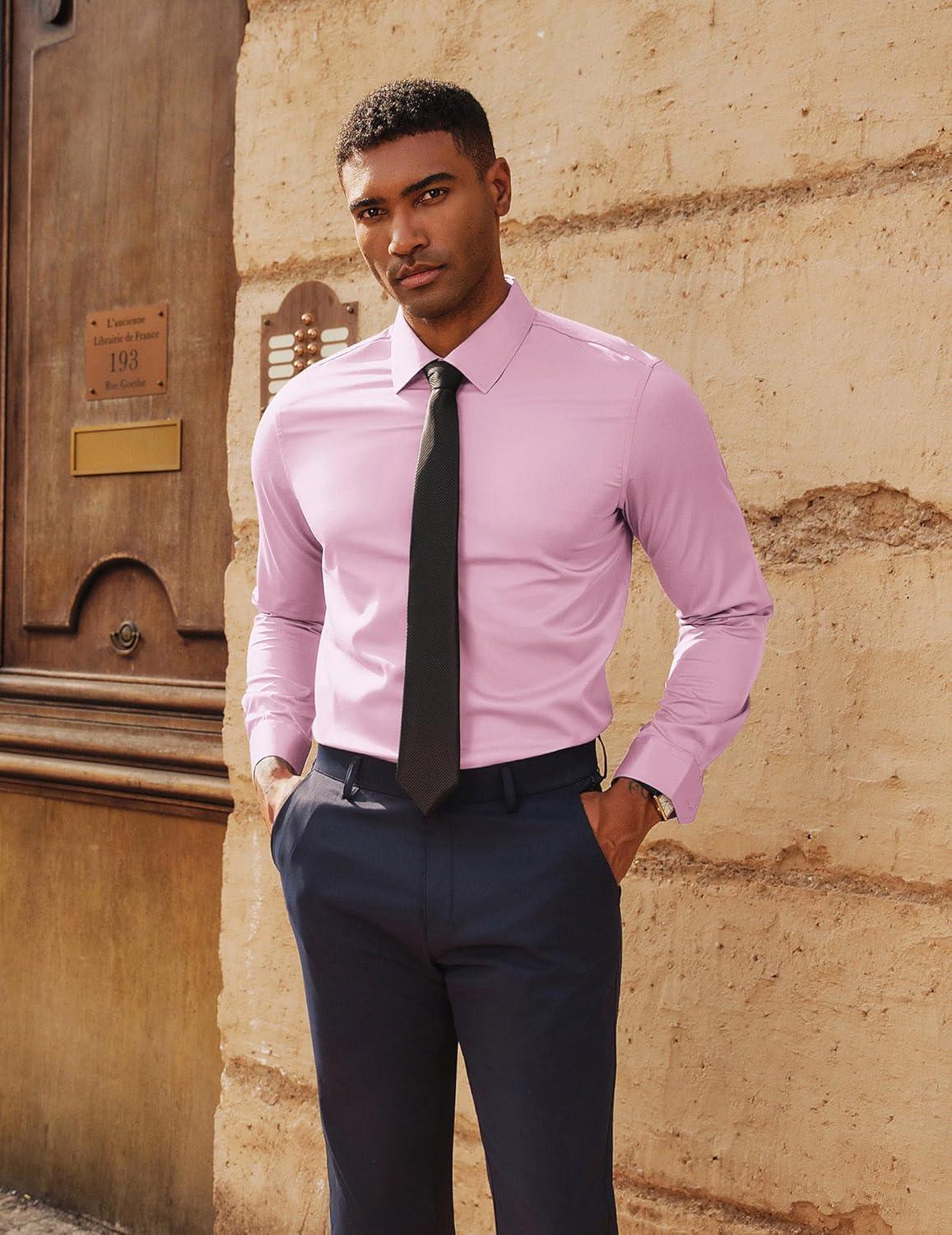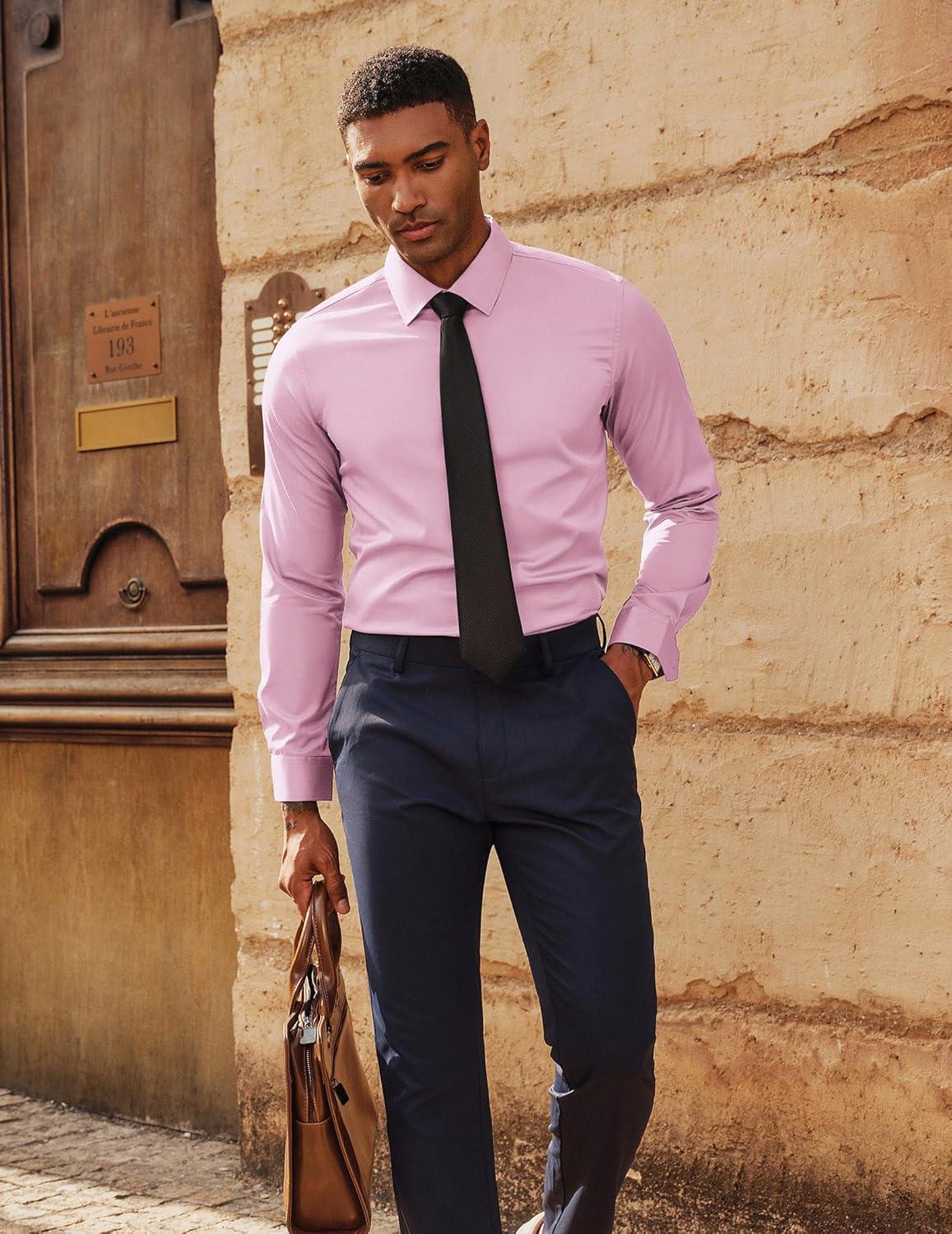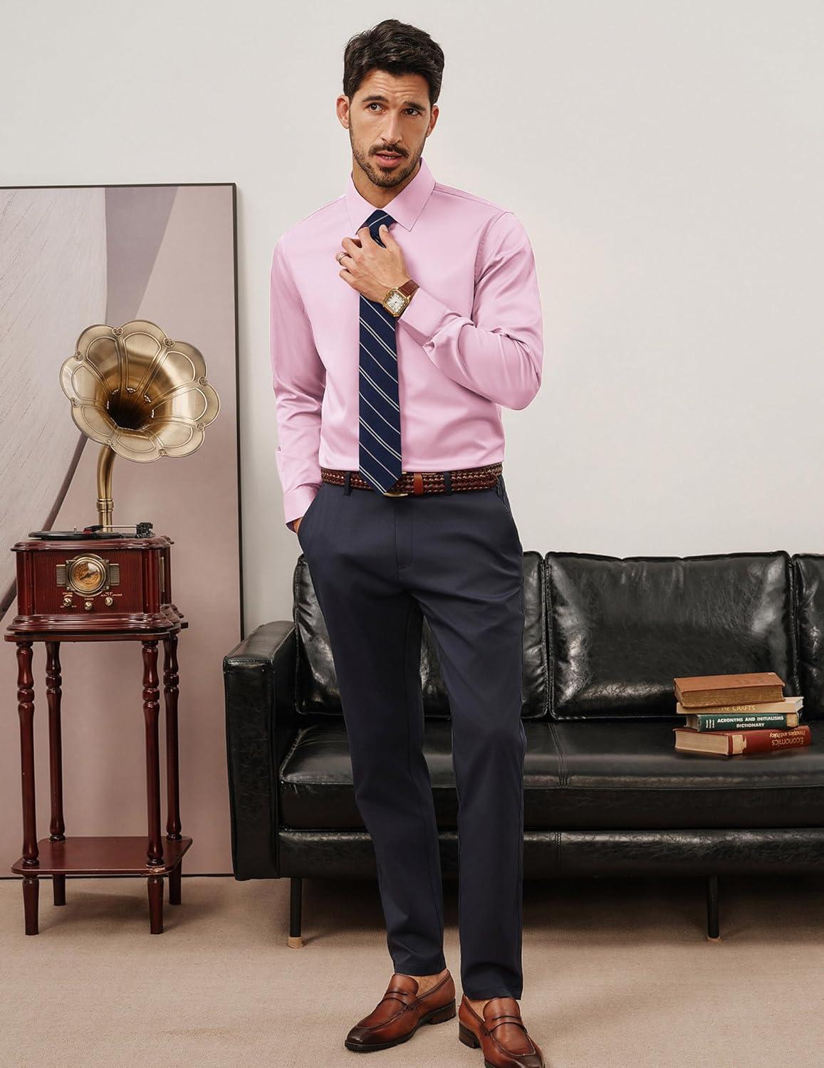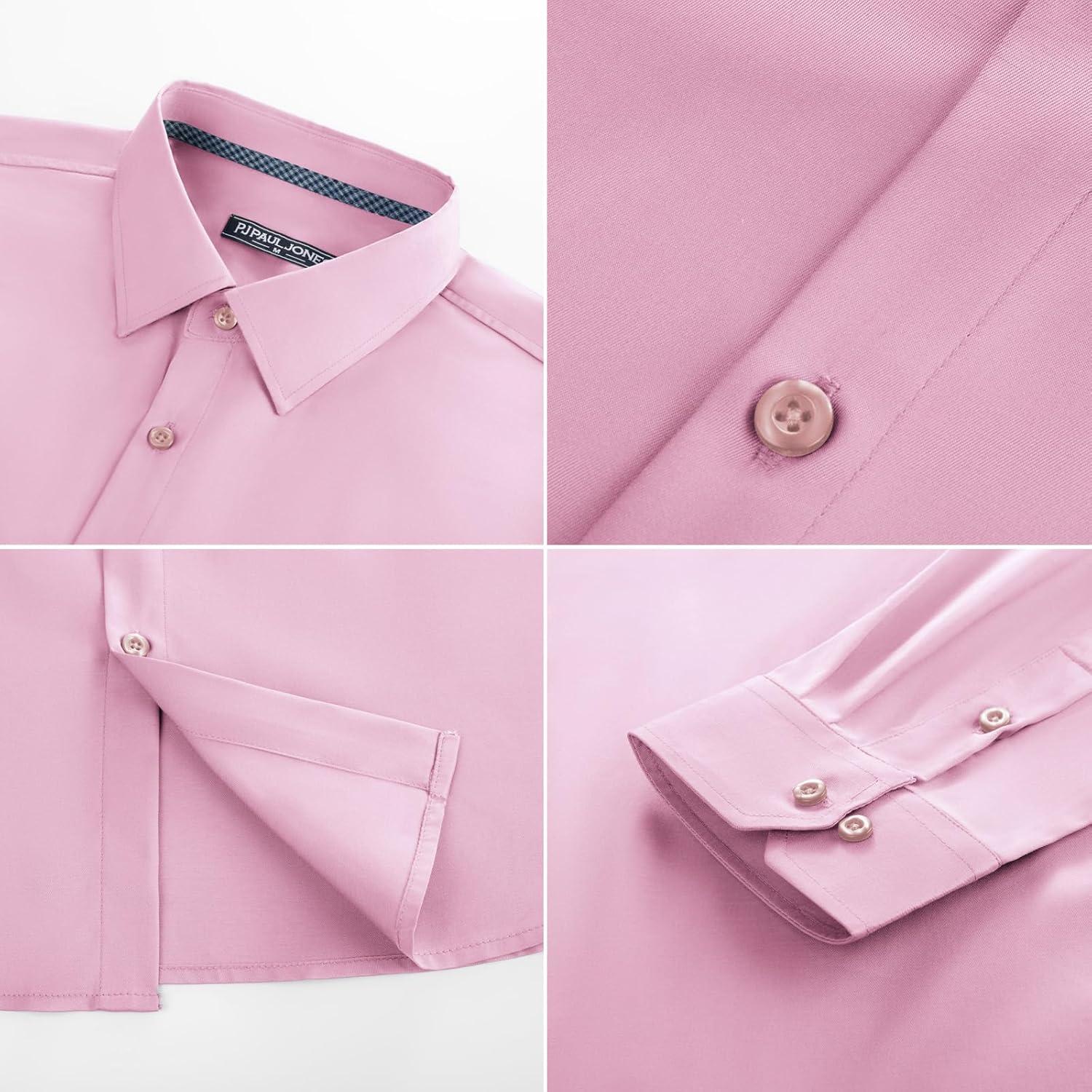 PJ PAUL JONES Men’s Slim Fit Dress Shirts Business Casual Long Sleeve Stretch Wrinkle Free Shirt(Pink)