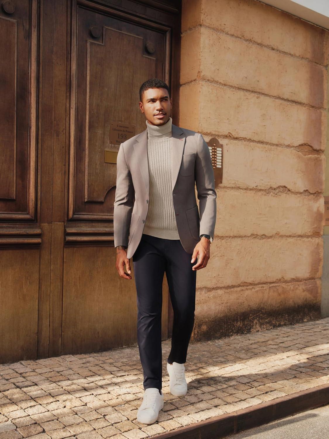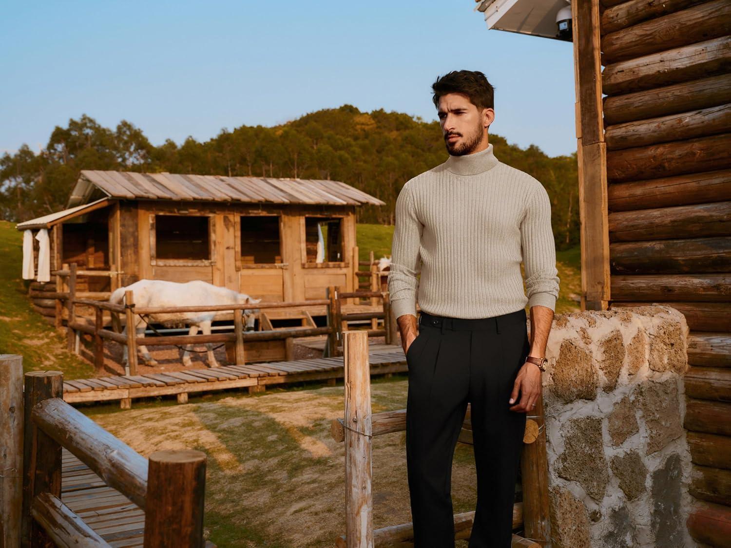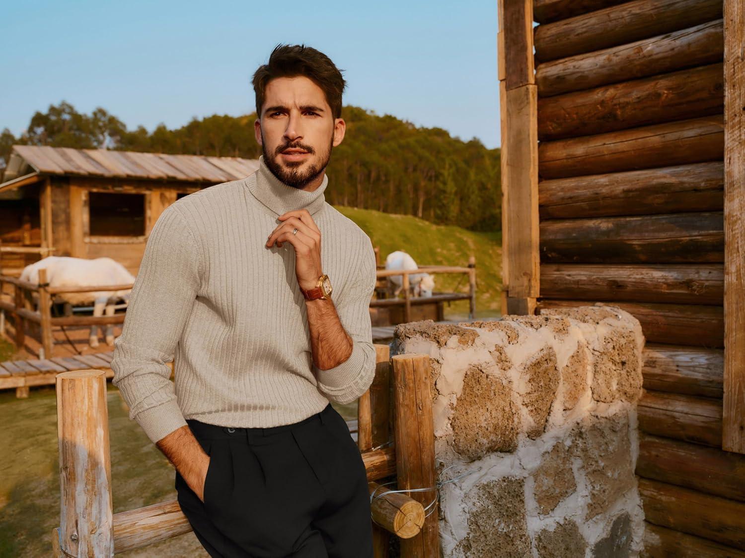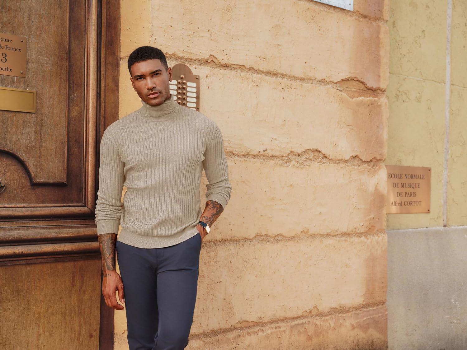 PJ PAUL JONES Men’s Slim Fit Turtleneck Sweater Casual Ribbed Knitted Pullover Sweaters(Apricot)