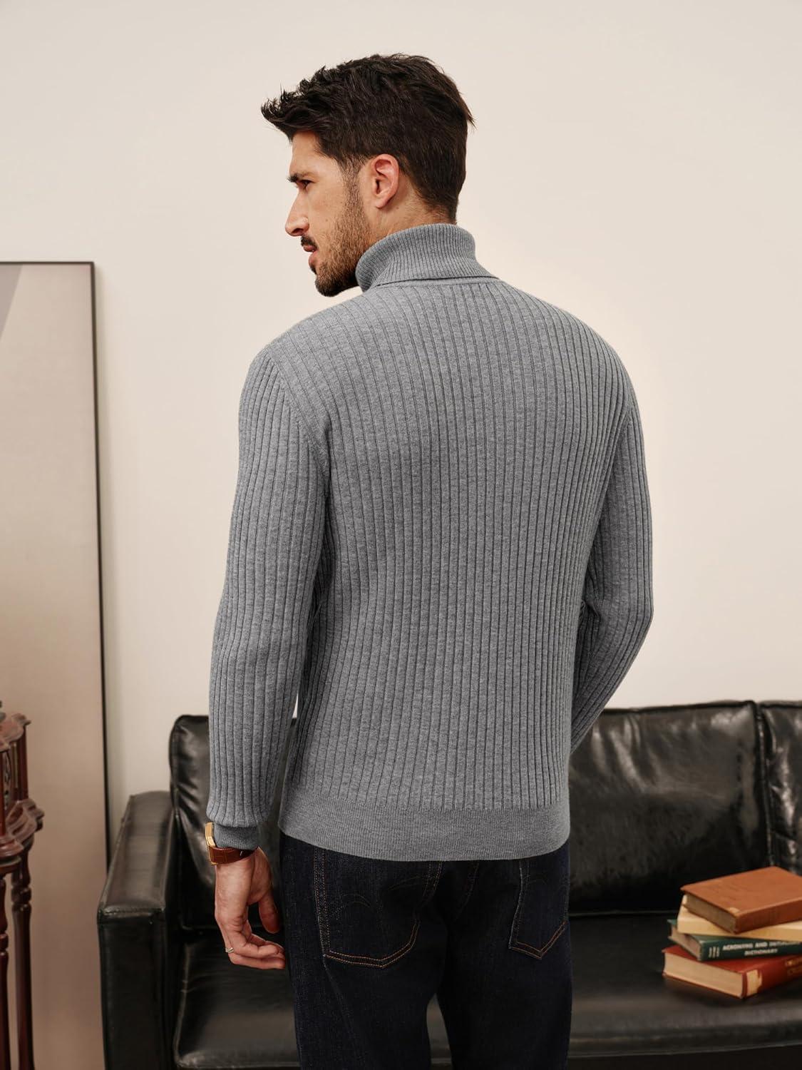 PJ PAUL JONES Men’s Slim Fit Turtleneck Sweater Casual Ribbed Knitted Pullover Sweaters(Dark Grey)