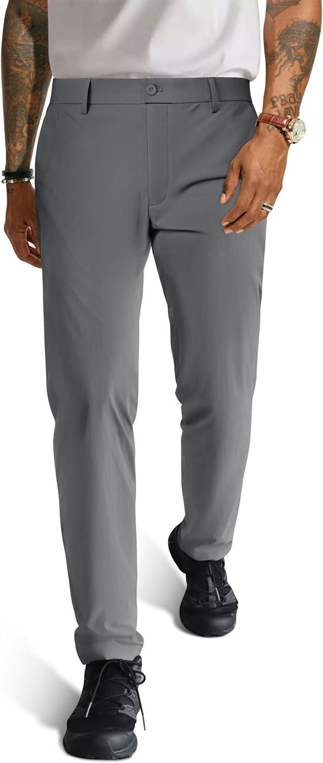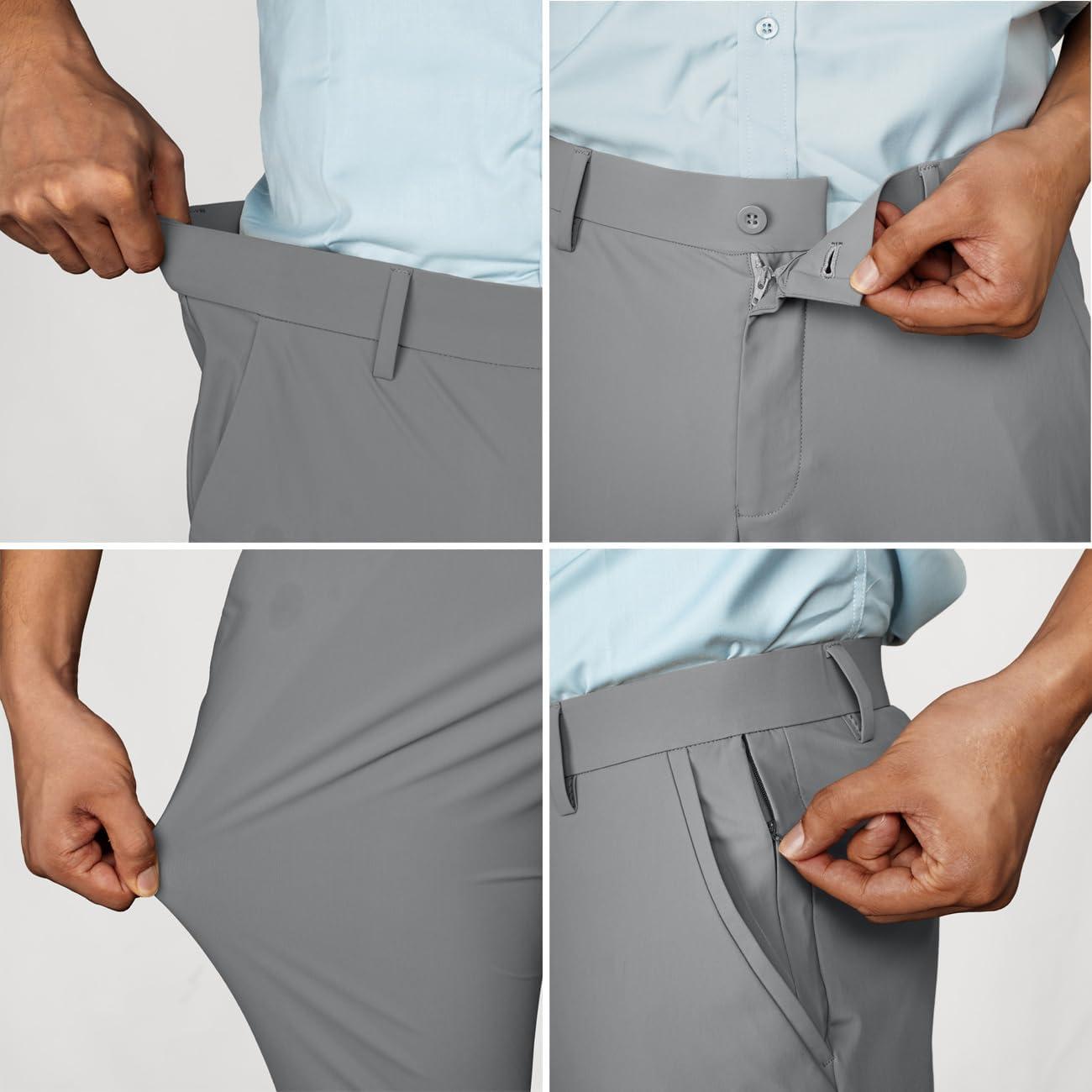 PJ PAUL JONES Mens Stretch Golf Pants Quick Dry Lightweight Casual Pants with Pockets(Light Grey)