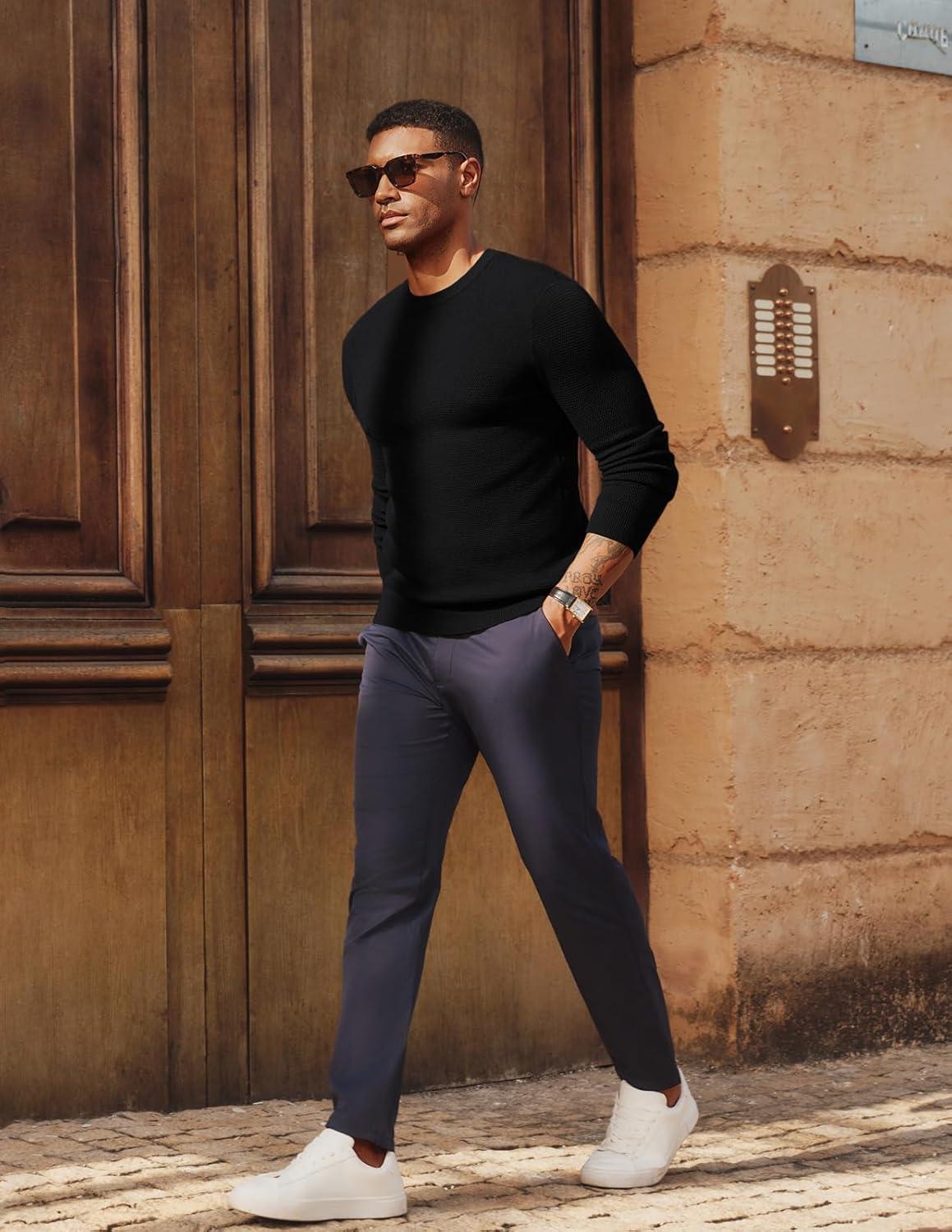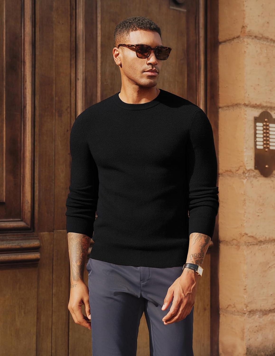 PJ PAUL JONES Mens Sweater Cable Knit Textured Solid Fall Sweaters(Black)