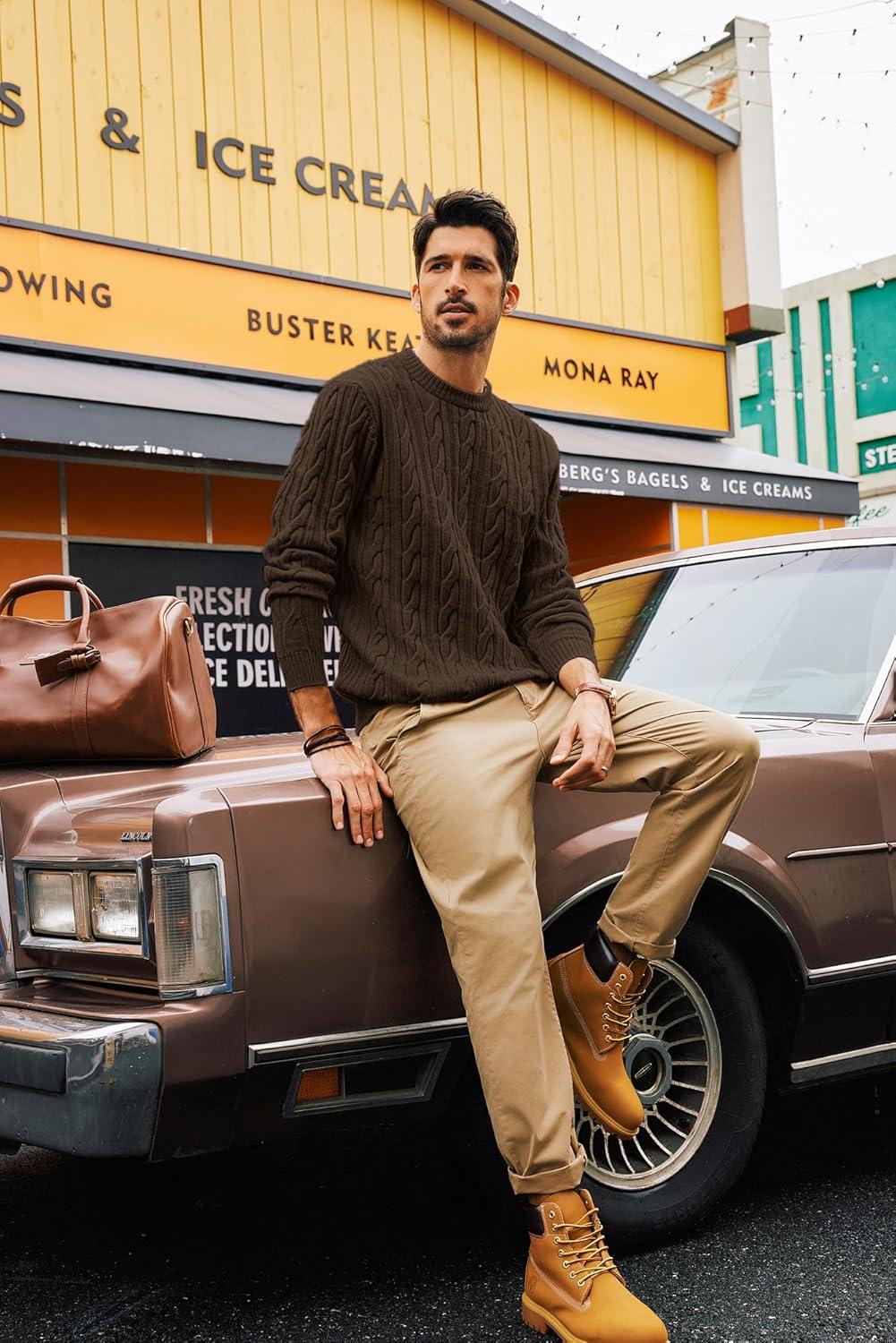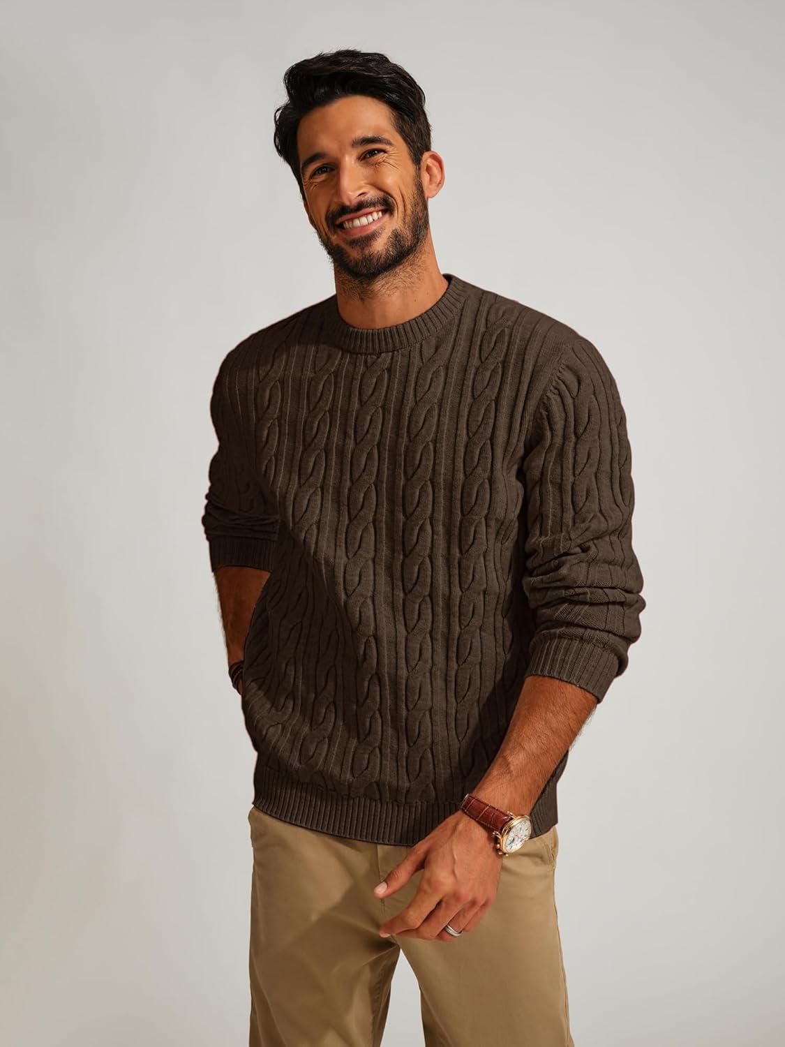 PJ PAUL JONES Mens Sweater Crewneck Cable Knit Pullover Sweater Casual Twist Textured Sweaters(Coffee)
