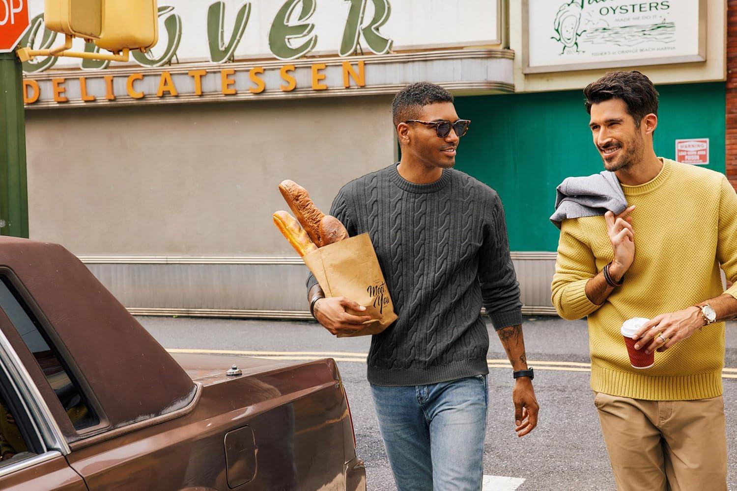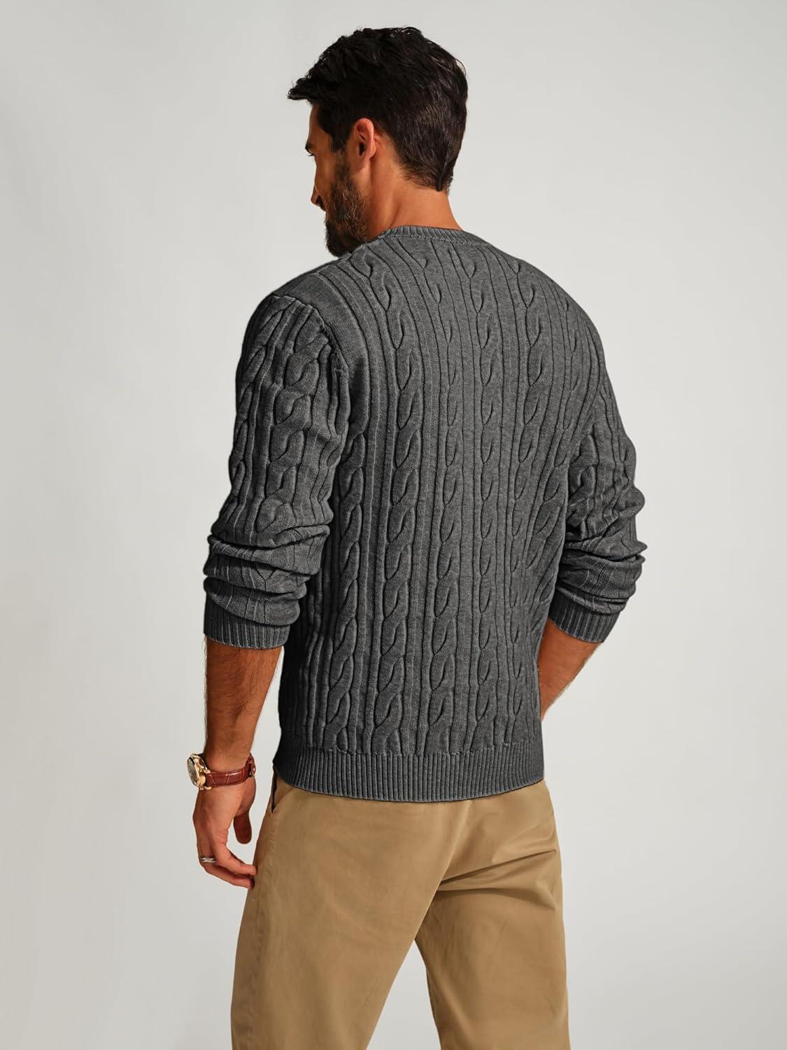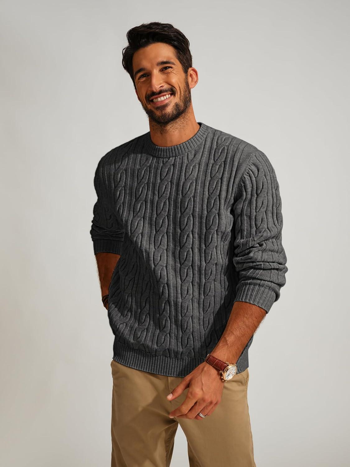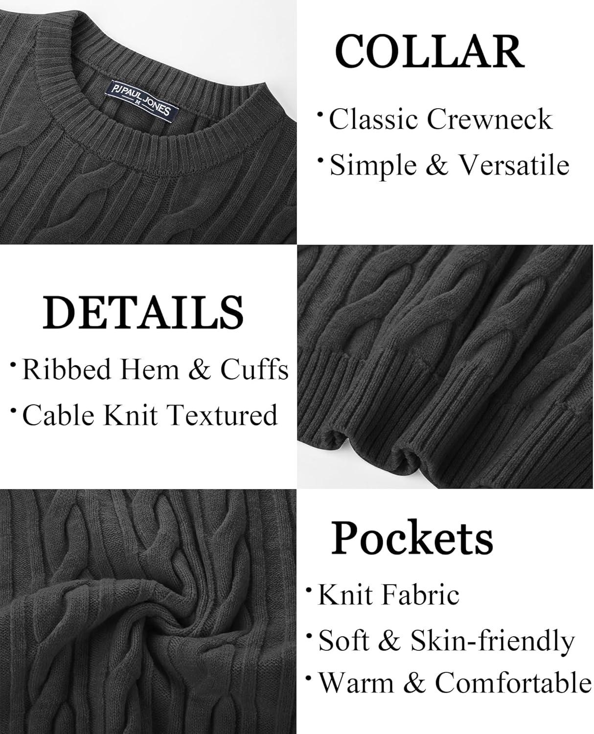 PJ PAUL JONES Mens Sweater Crewneck Cable Knit Pullover Sweater Casual Twist Textured Sweaters(Dark Gray)