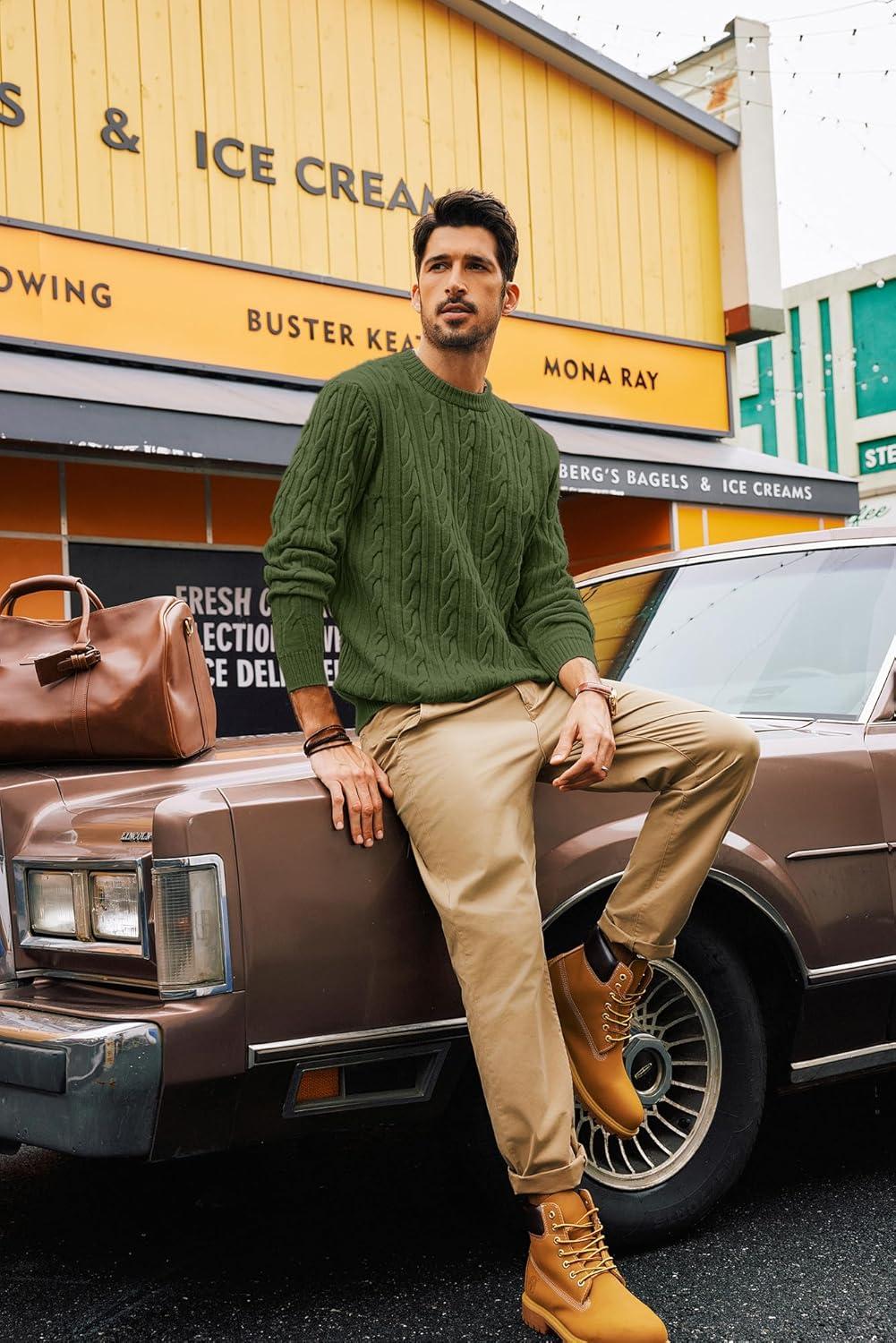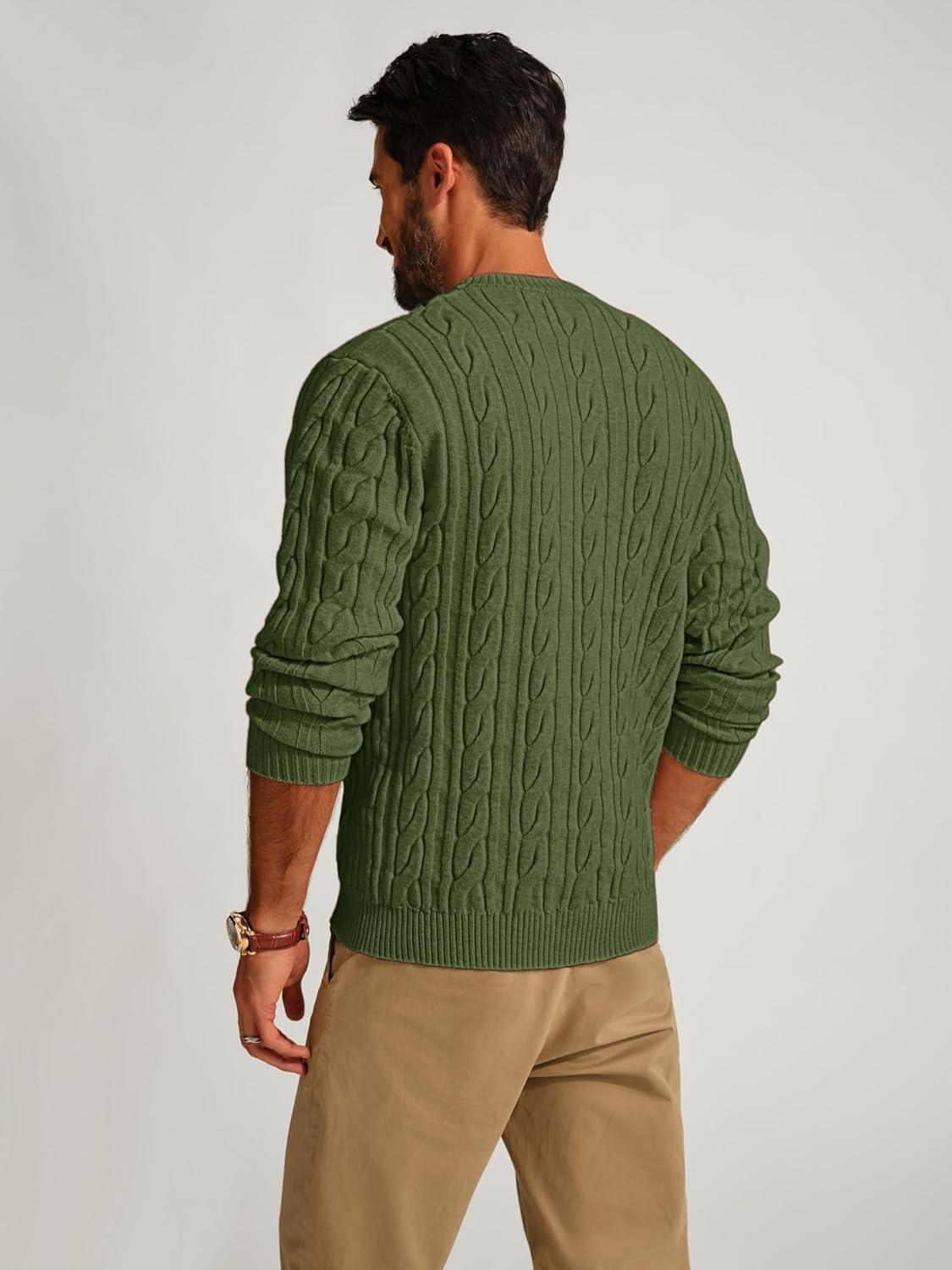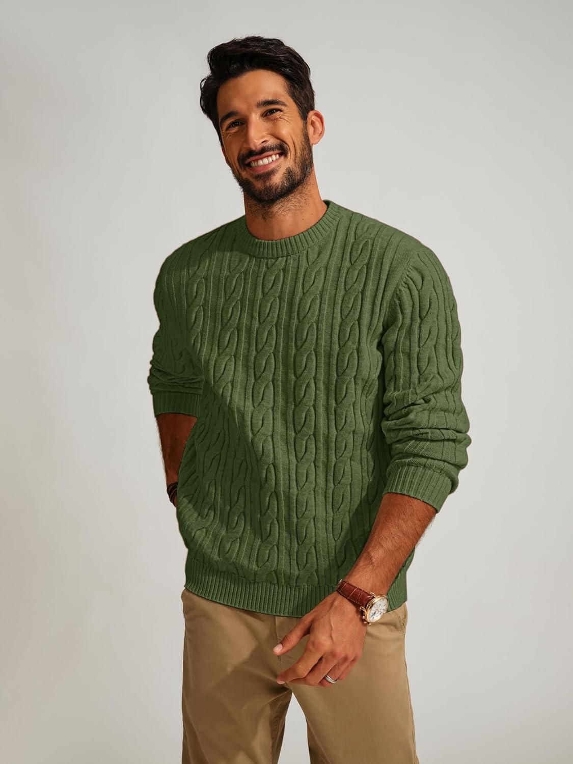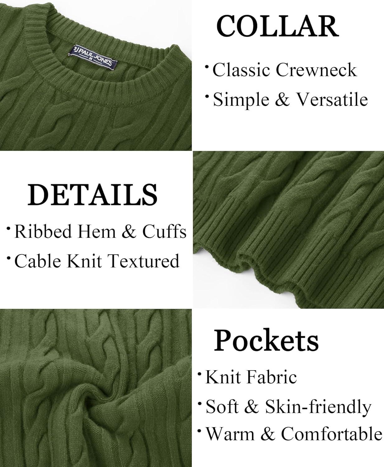 PJ PAUL JONES Mens Sweater Crewneck Cable Knit Pullover Sweater Casual Twist Textured Sweaters(Green)