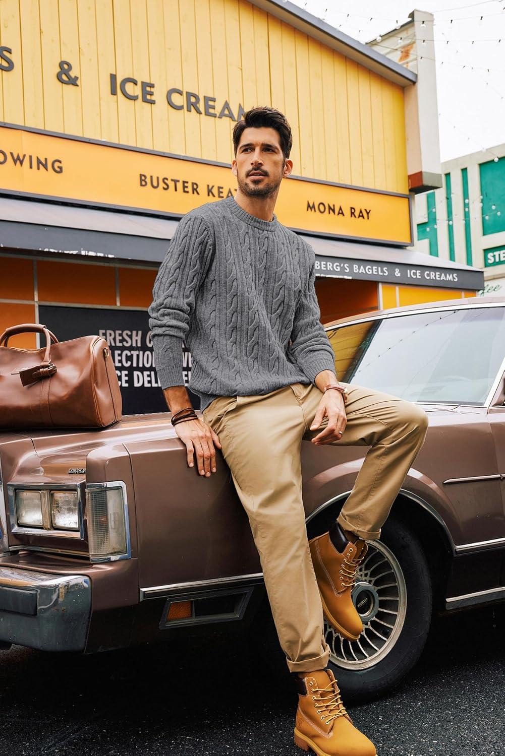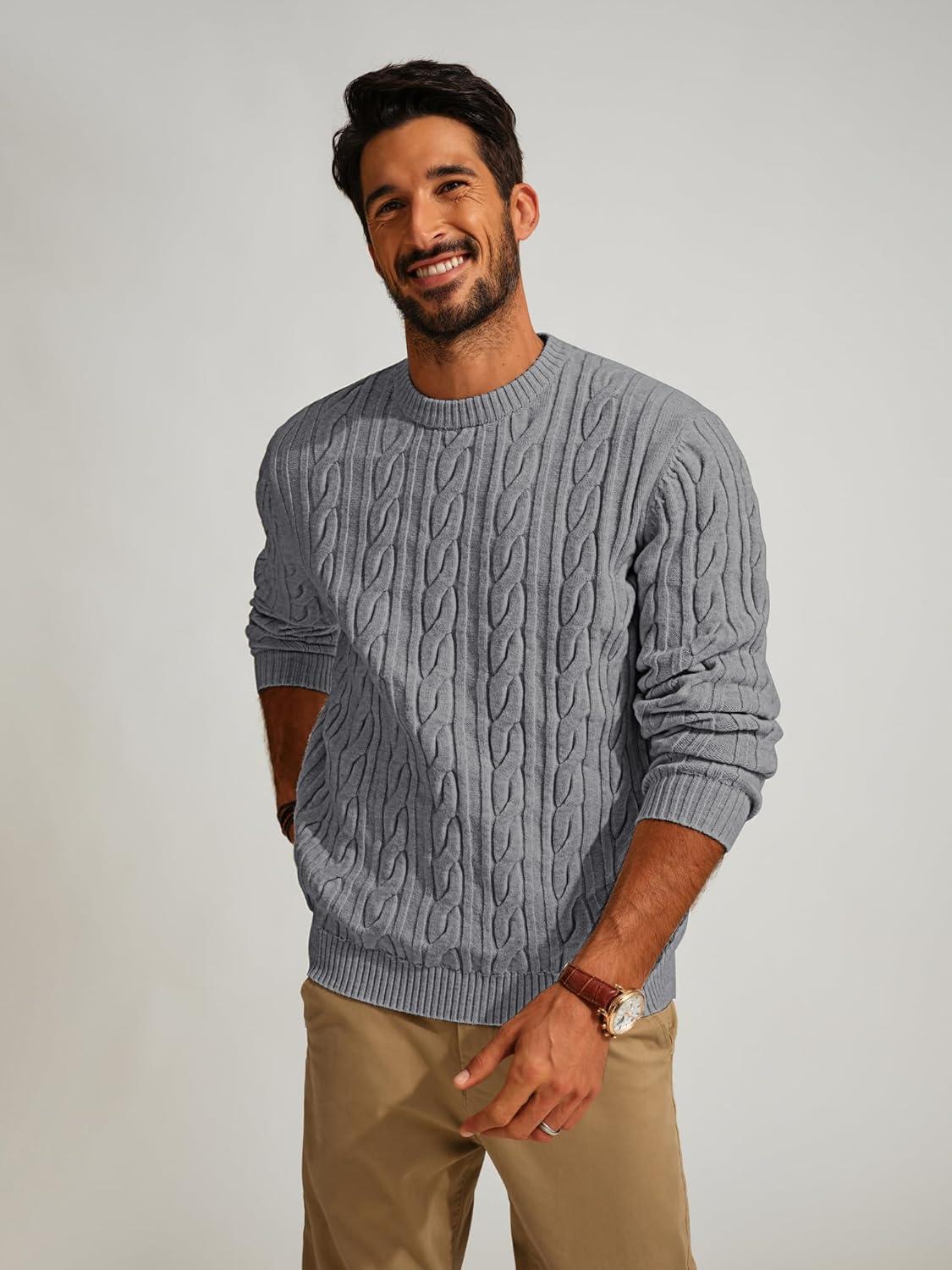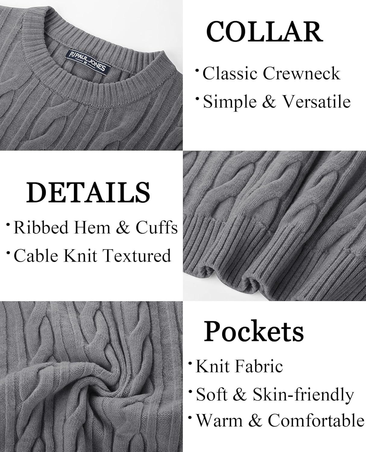 PJ PAUL JONES Mens Sweater Crewneck Cable Knit Pullover Sweater Casual Twist Textured Sweaters(Light Gray)