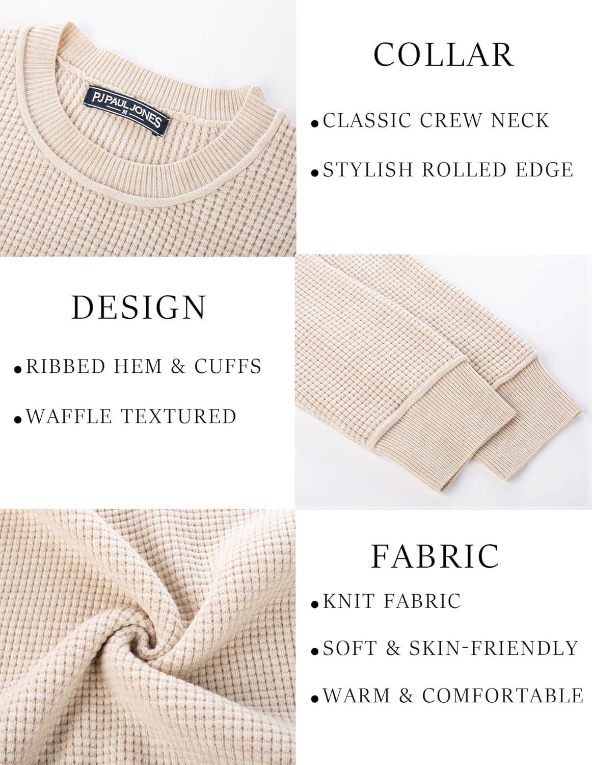 PJ PAUL JONES Mens Sweater Crewneck Knit Sweaters Casual Waffle Pullover Sweater for Men(Apricot)