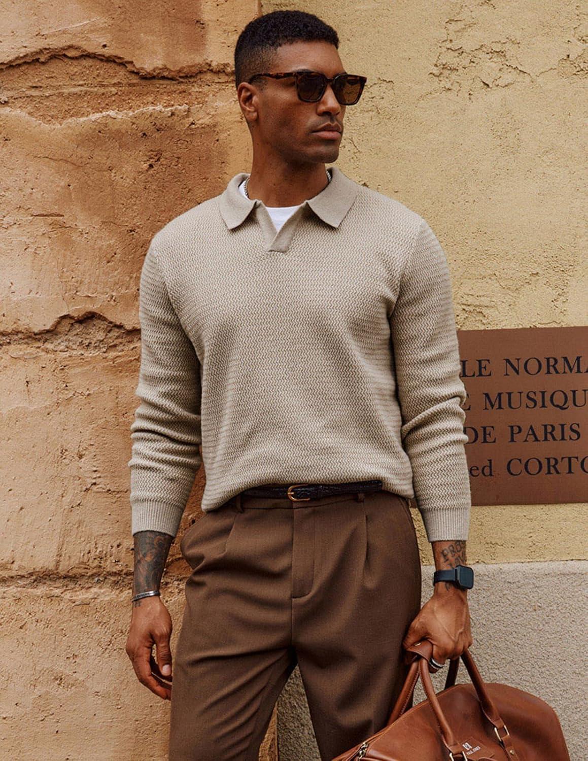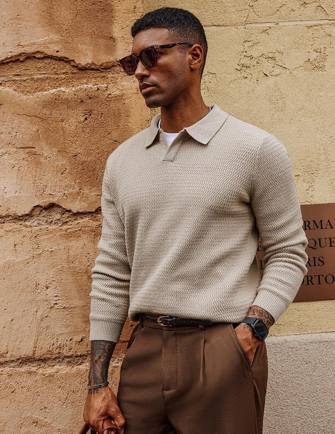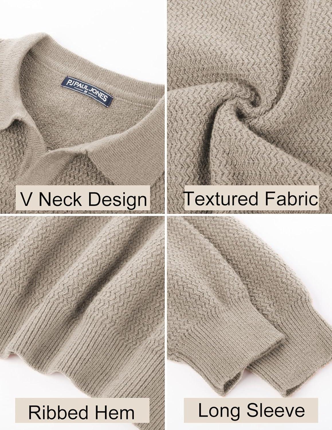PJ PAUL JONES Mens Sweater V Neck Pullover Sweater Long Sleeve Cable Knit Textured Sweater(Beige)