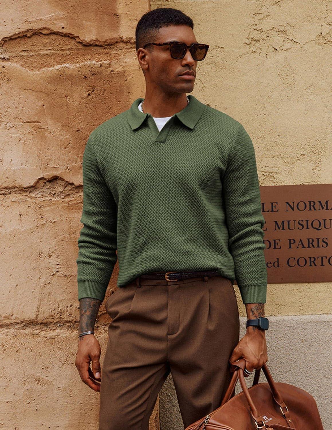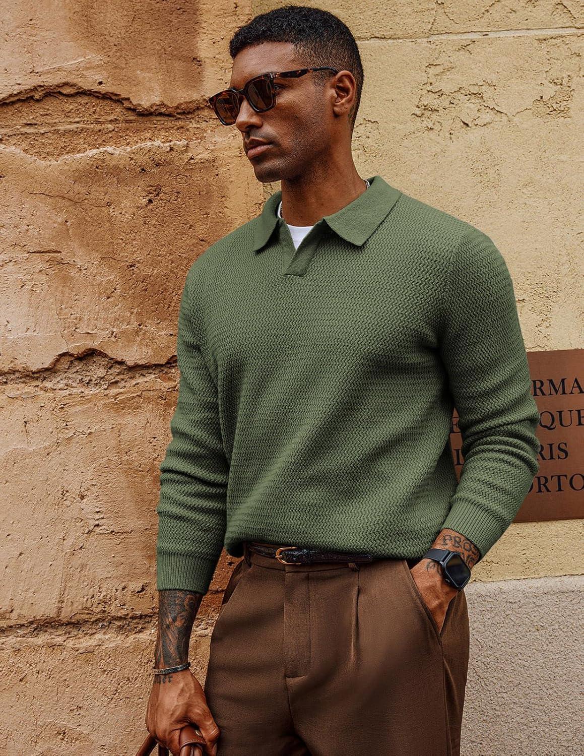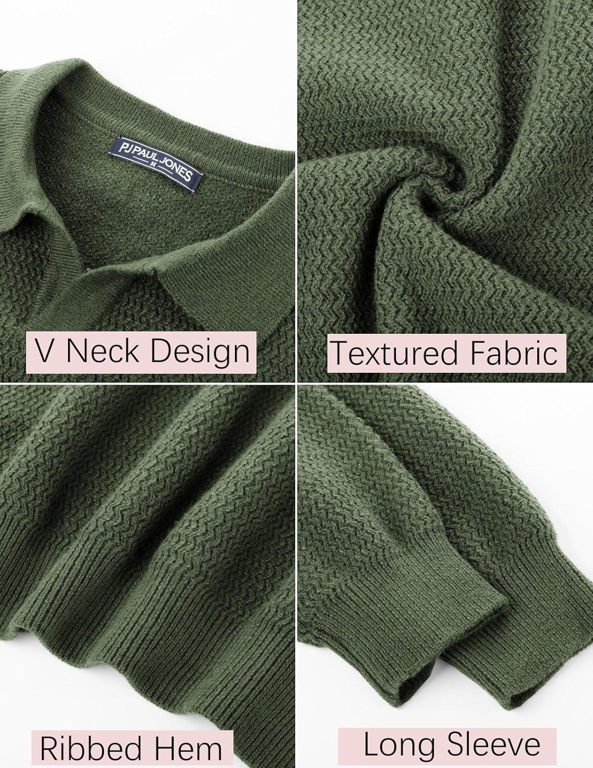 PJ PAUL JONES Mens Sweater V Neck Pullover Sweater Long Sleeve Cable Knit Textured Sweater(Dark Green)