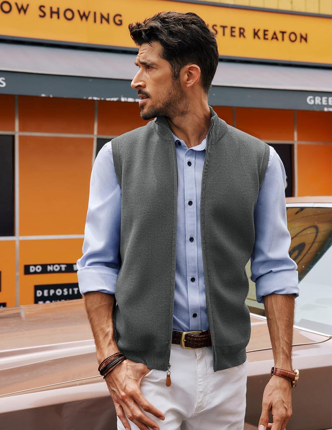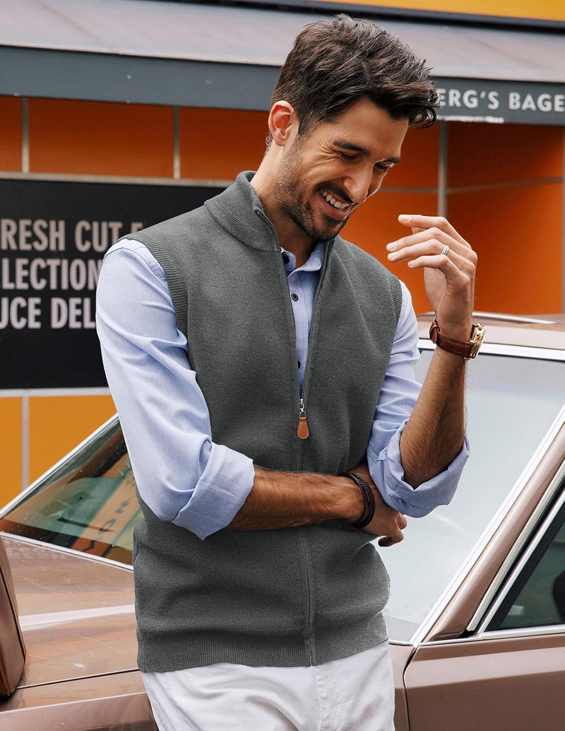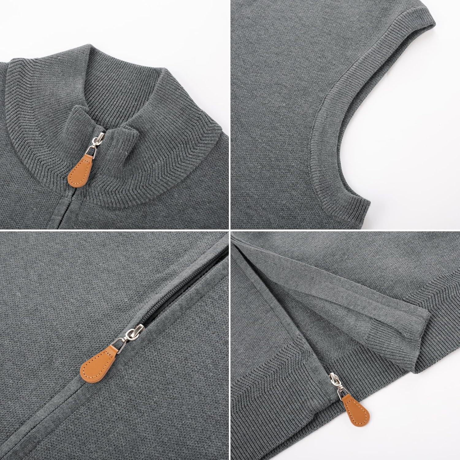 PJ PAUL JONES Mens Sweater Vest Full-Up Knitted Vests Casual Stand Collar Vests Sweater(Grey)