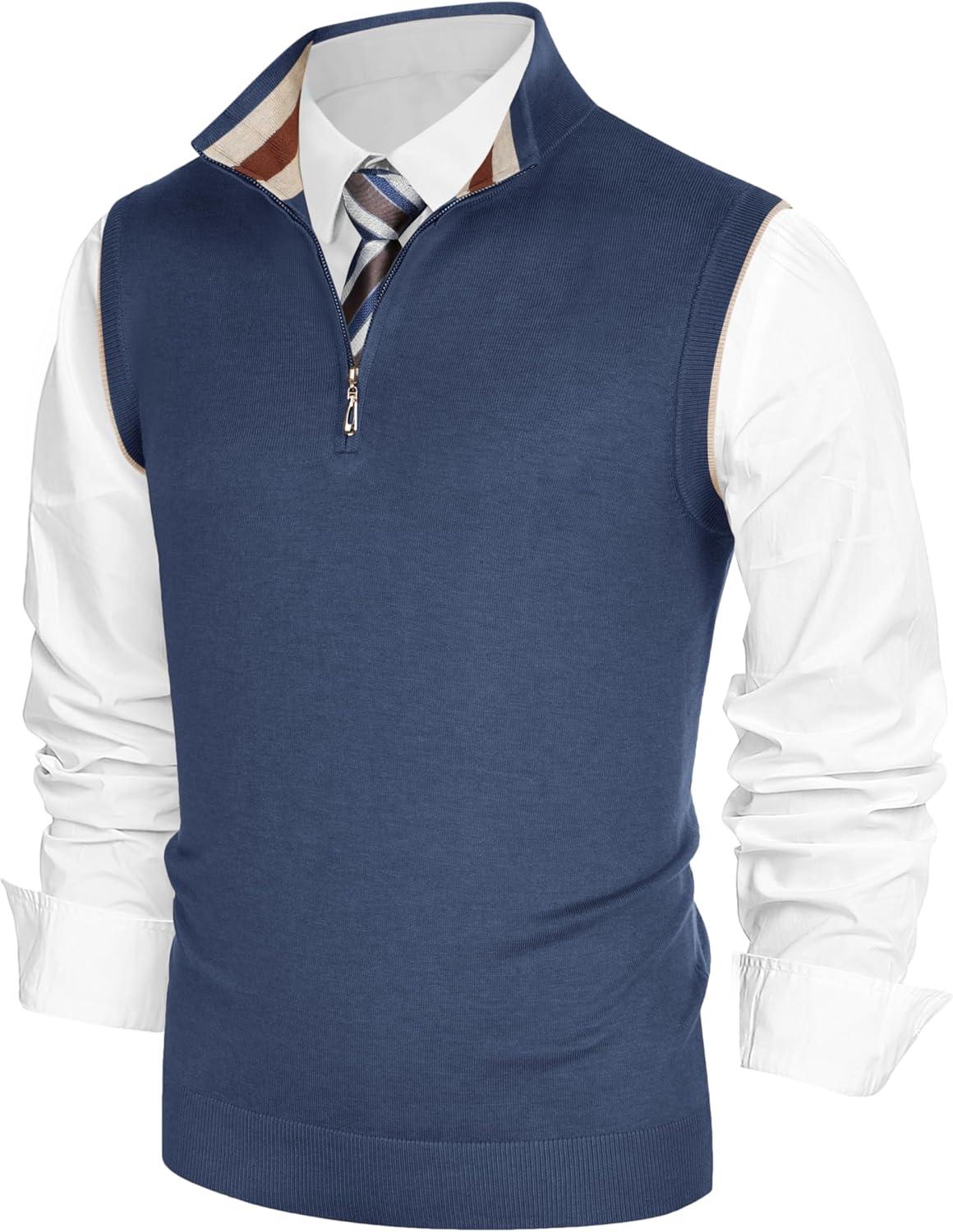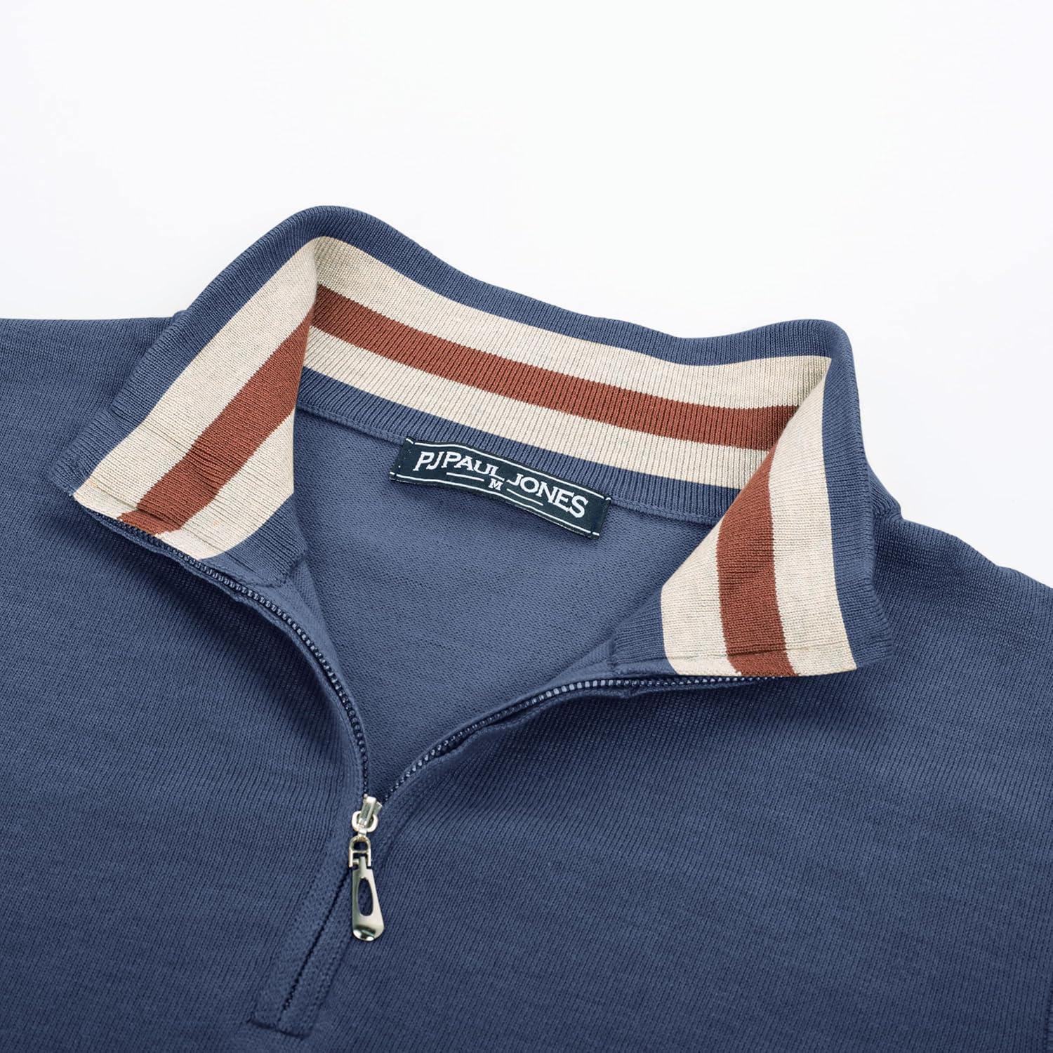 PJ PAUL JONES Mens Sweater Vest Quarter Zip Vest Sweater Stand Collar Contrast Stripes Pullover Knitwear Vest(Grey Blue)