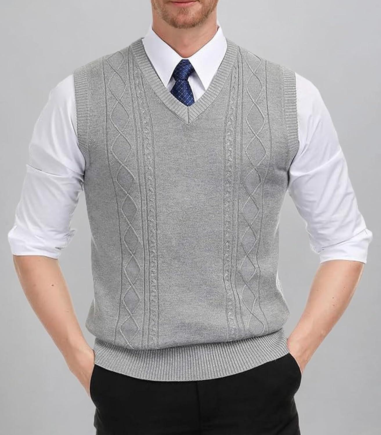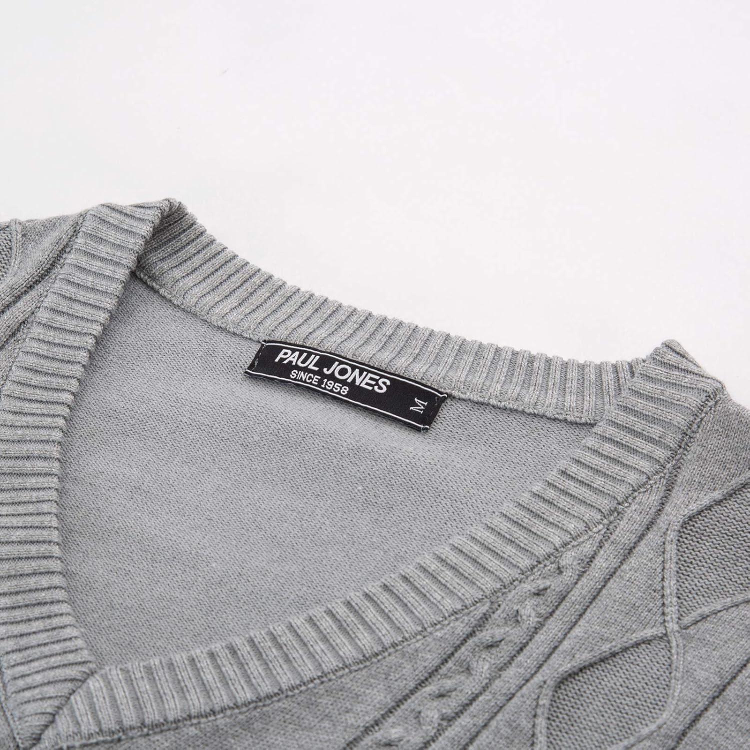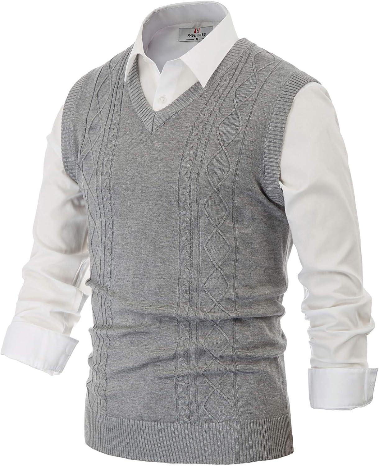 PJ PAUL JONES Mens Sweater Vest V Neck Cable Knitted Casual Sleeveless Pullover Sweaters(Grey)
