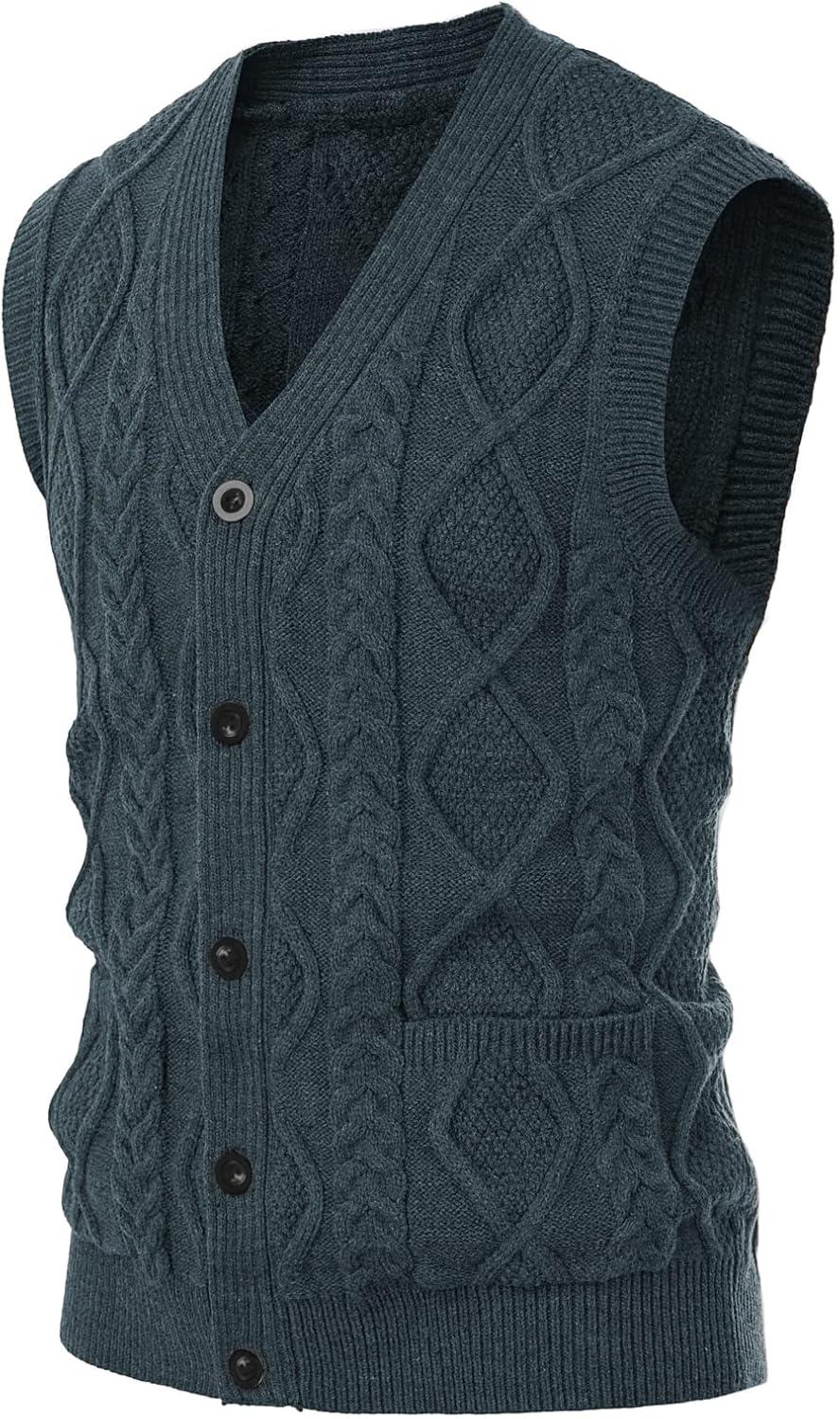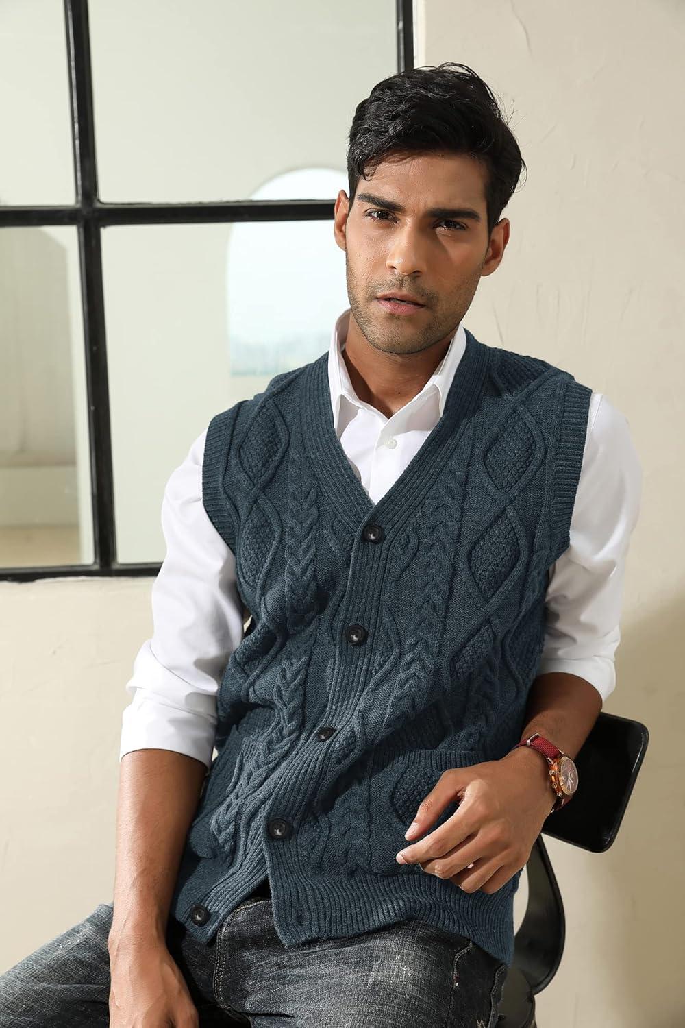 PJ PAUL JONES Men’s Sweater Vest V-Neck Sleeveless Cable Knitted Cardigan Vest(Blue)