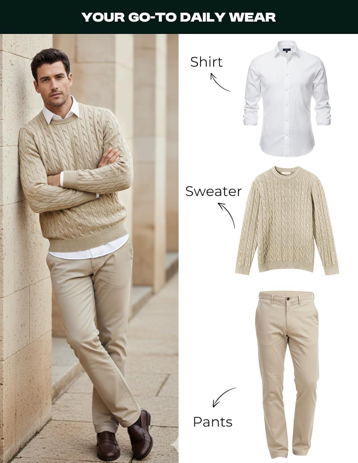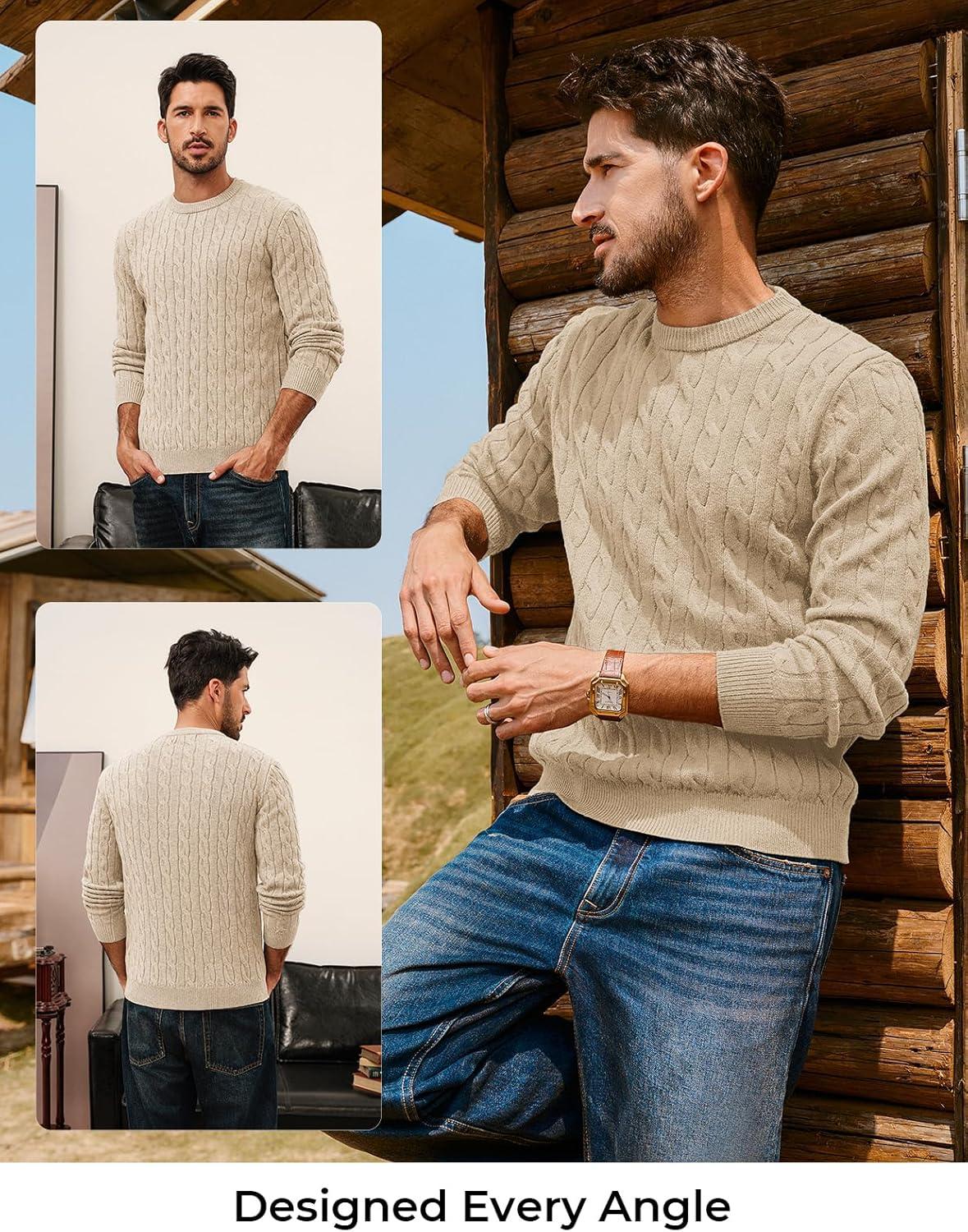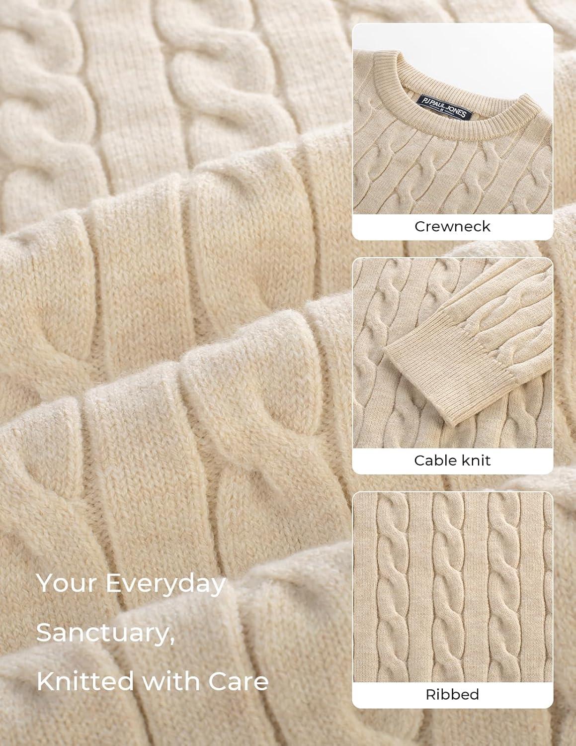 PJ PAUL JONES Mens Sweaters Casual Cable Knit Pullover Sweater Crewneck Twist Sweaters(Apricot)