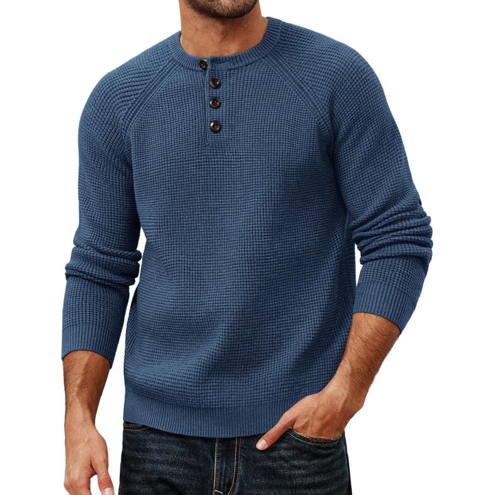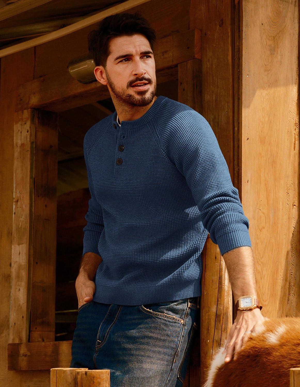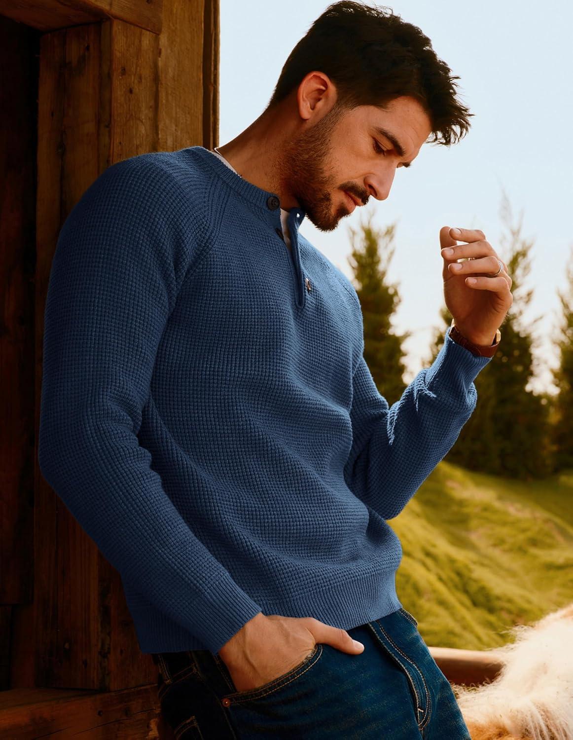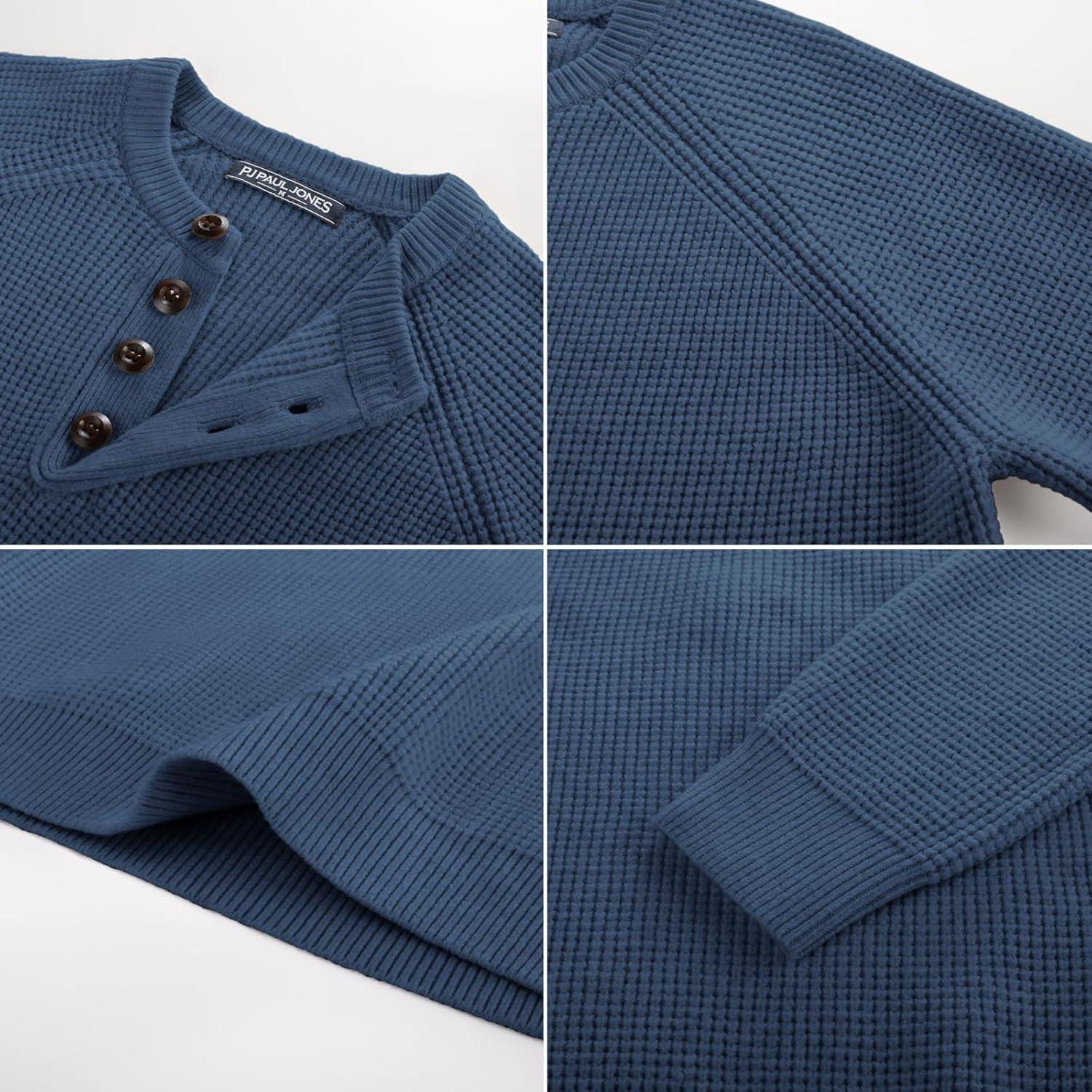 PJ PAUL JONES Mens Sweaters Casual Waffle Pullover Sweater Button Crewneck Textured Knit Henley Sweaters(Denim Blue)