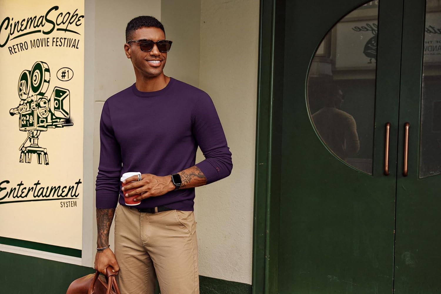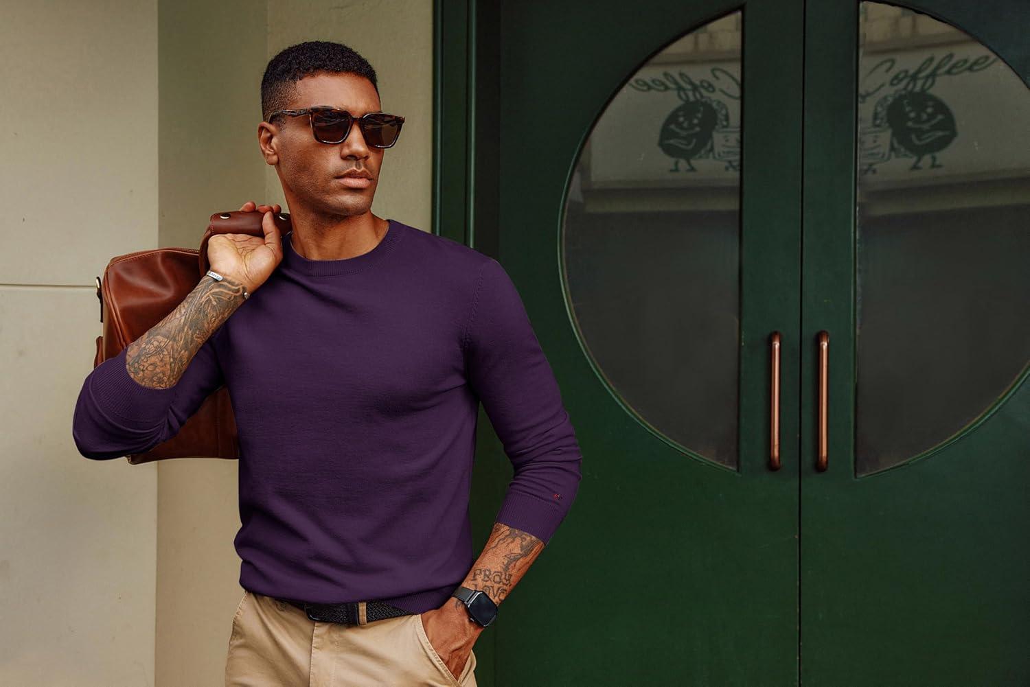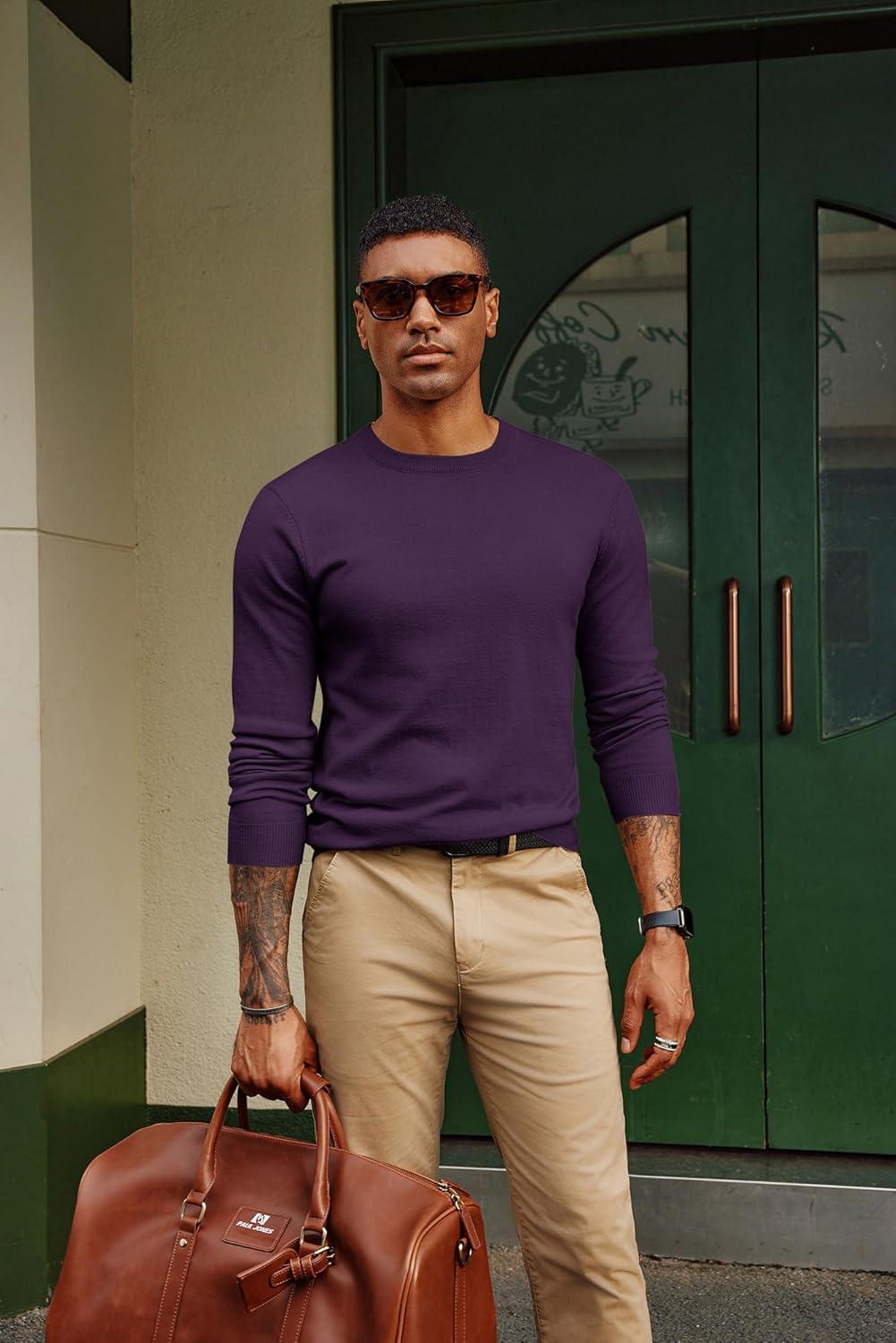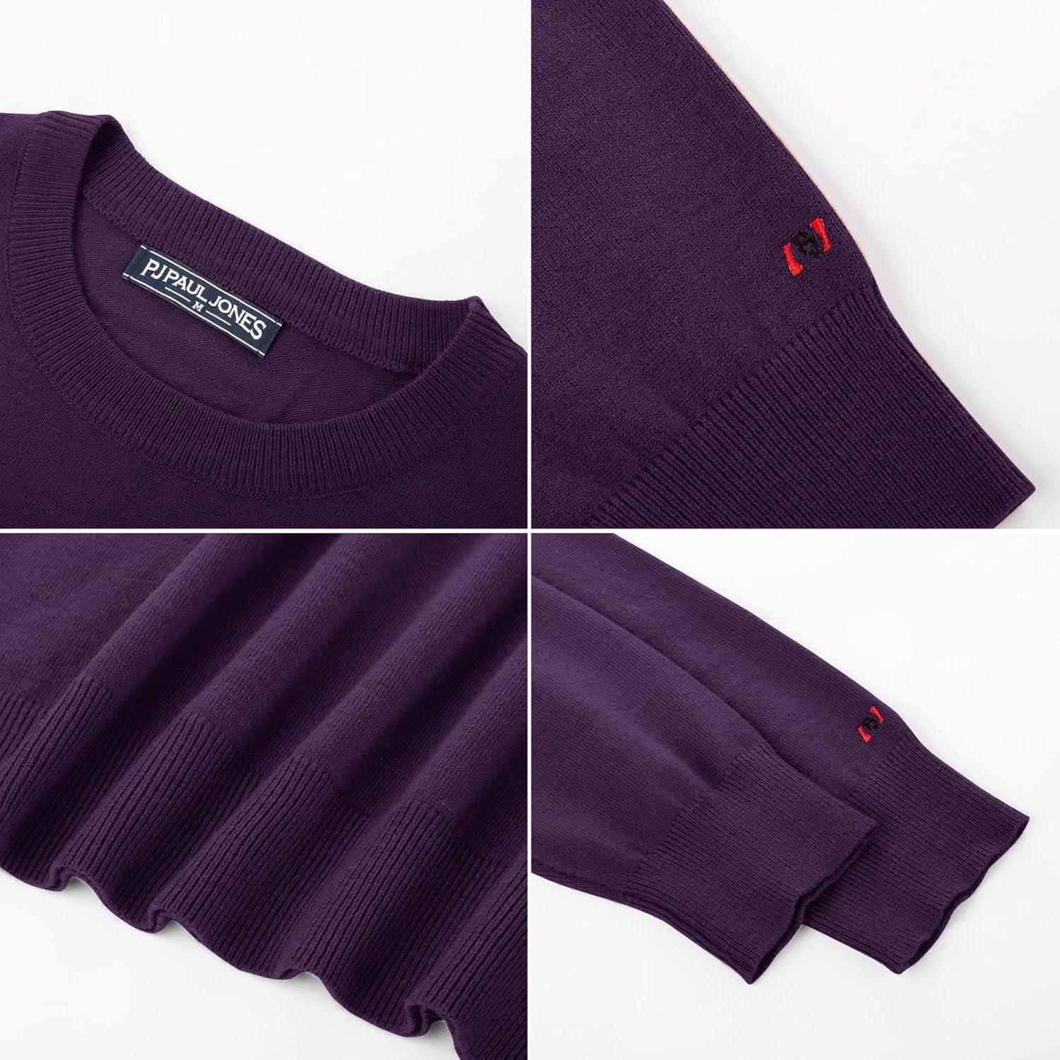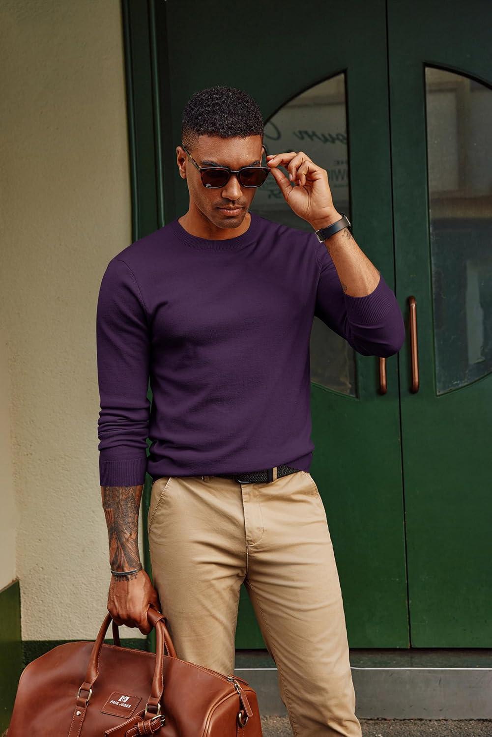 PJ PAUL JONES Men’s Sweaters Crewneck Basic Lightweight Wool Blend Knitted Pullover Long Sleeve Shirts for Men(Purple)