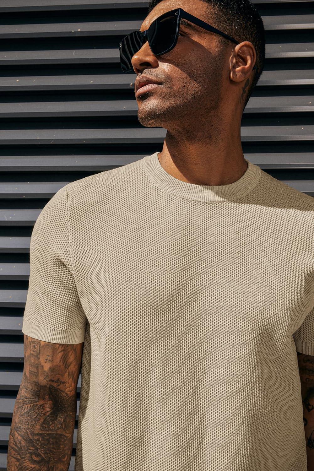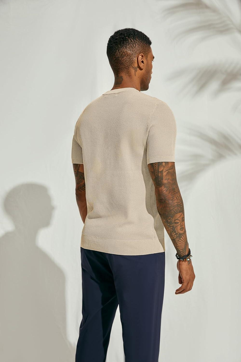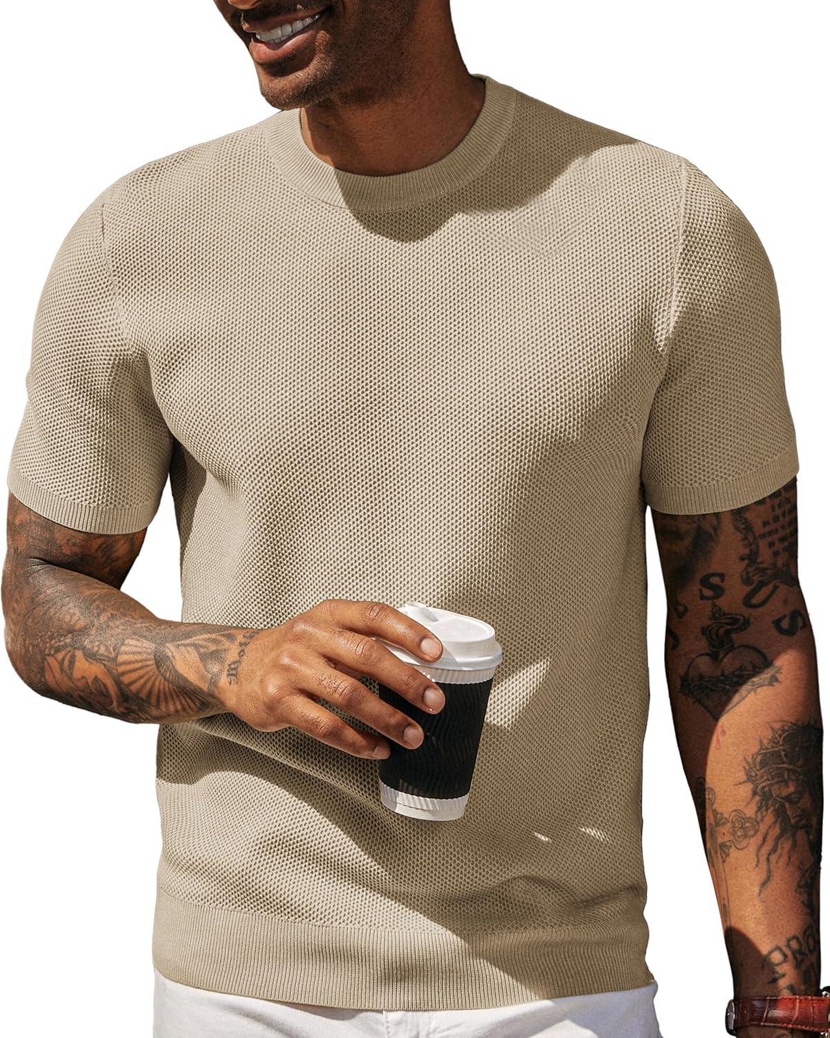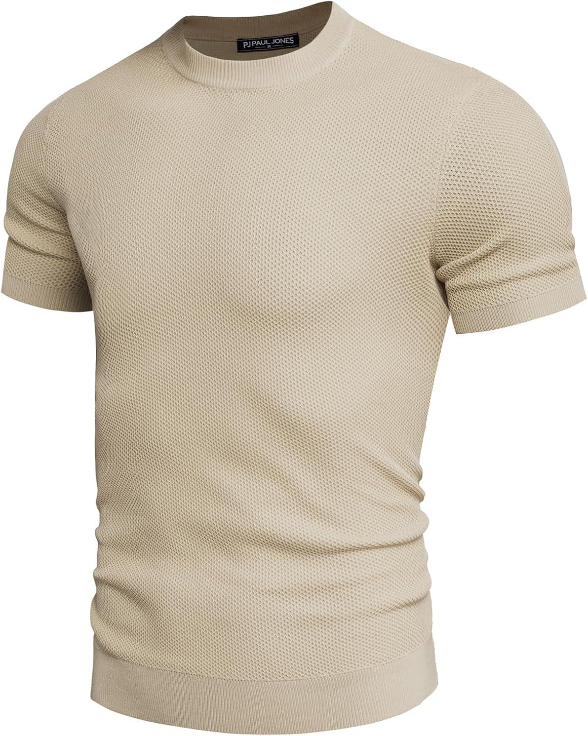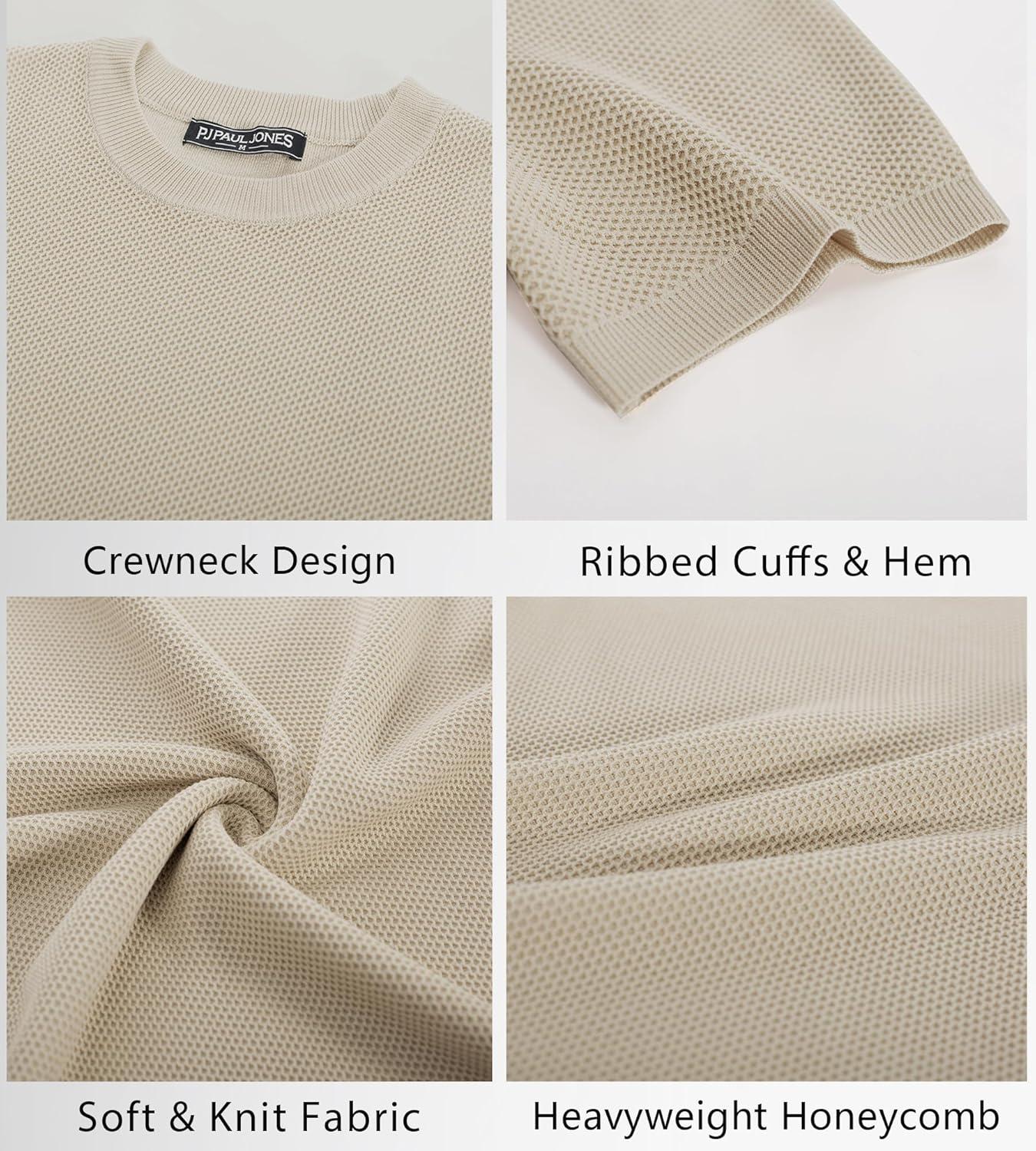 PJ PAUL JONES Mens T-Shirts Crew Neck Waffle Knit Shirt Short Sleeve Tee Shirts Fashion Casual Pullover Tops(Apricot)