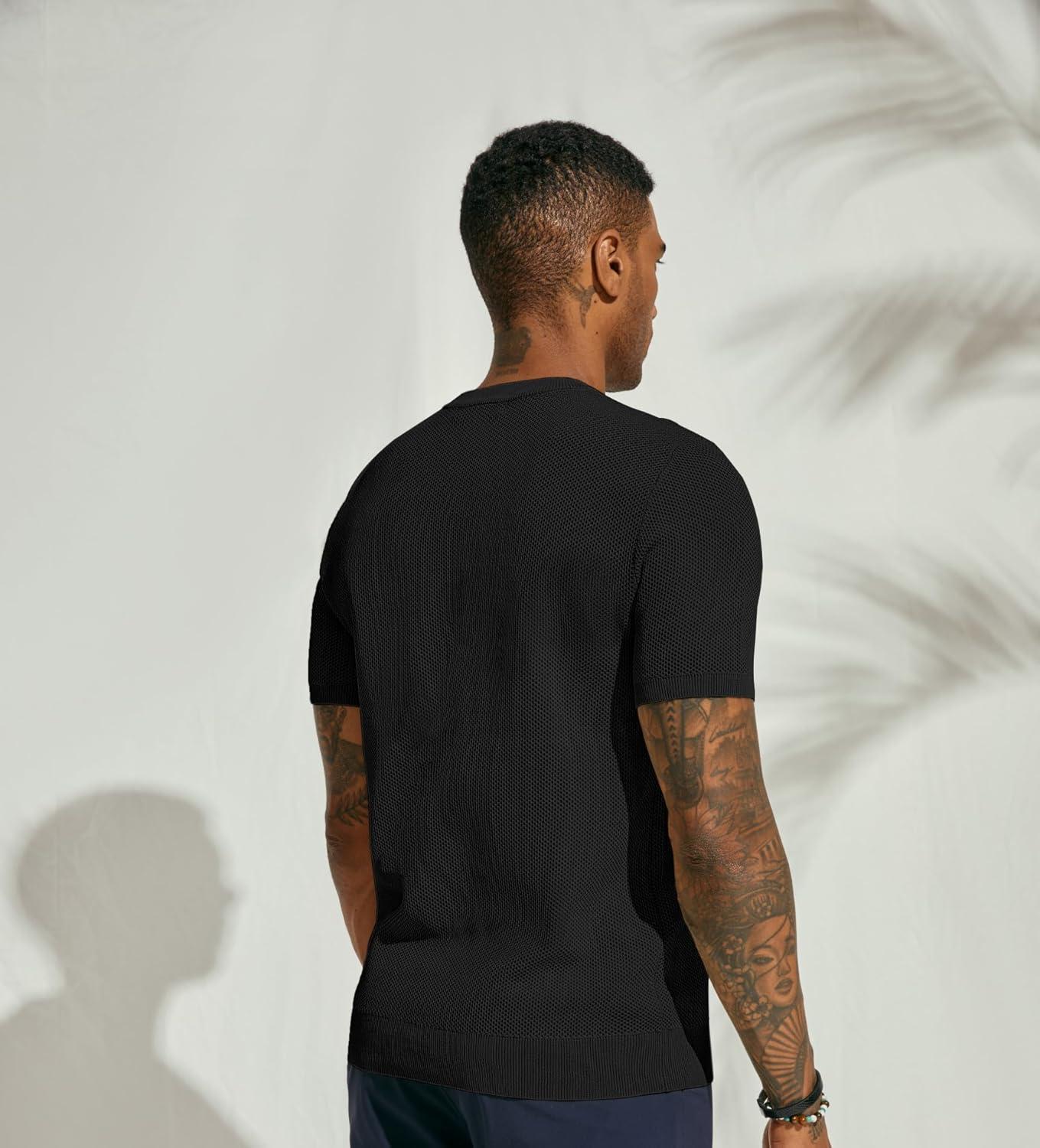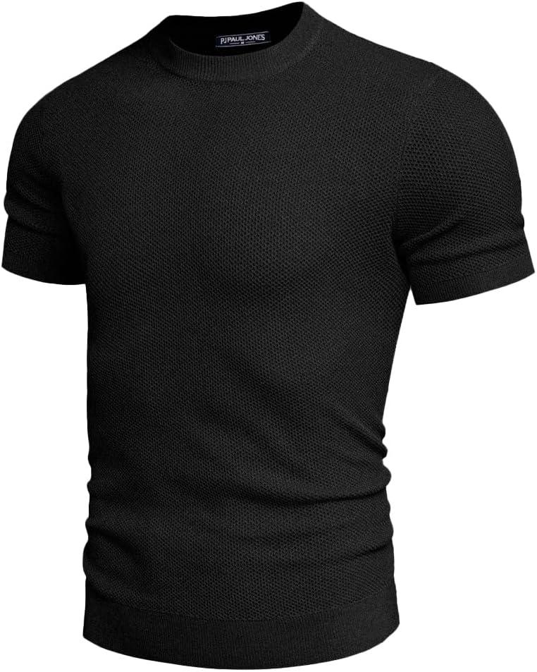 PJ PAUL JONES Mens T-Shirts Crew Neck Waffle Knit Shirt Short Sleeve Tee Shirts Fashion Casual Pullover Tops(Black)