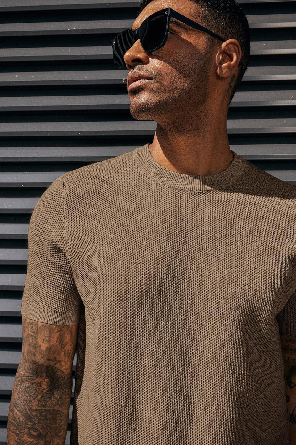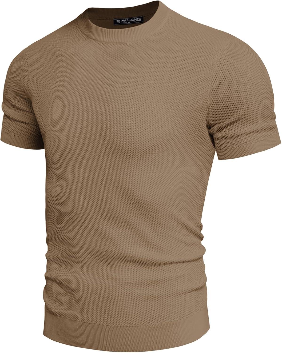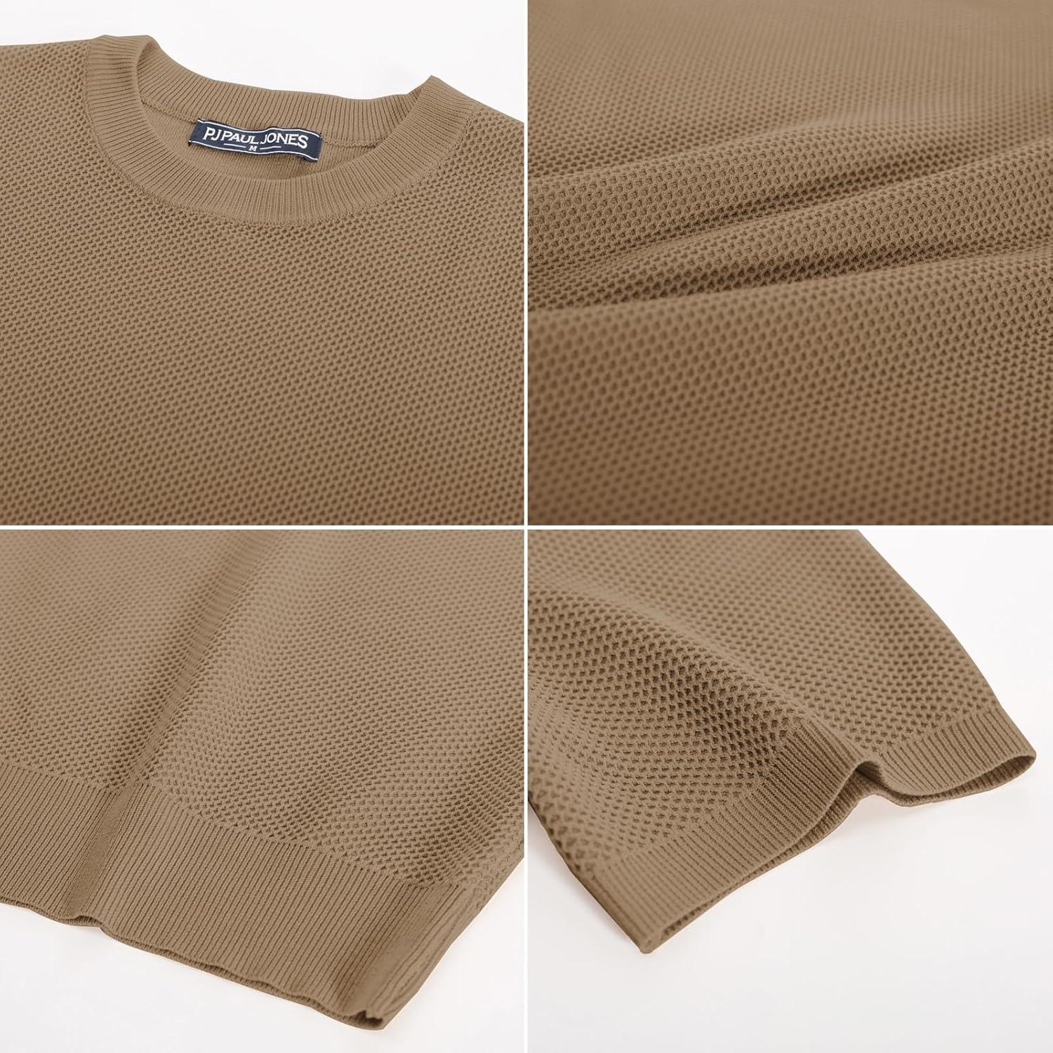 PJ PAUL JONES Mens T-Shirts Crew Neck Waffle Knit Shirt Short Sleeve Tee Shirts Fashion Casual Pullover Tops(Camel)