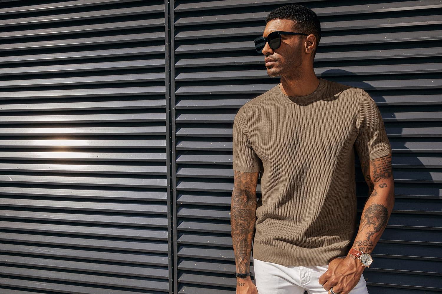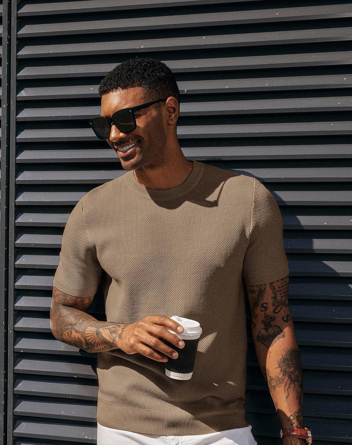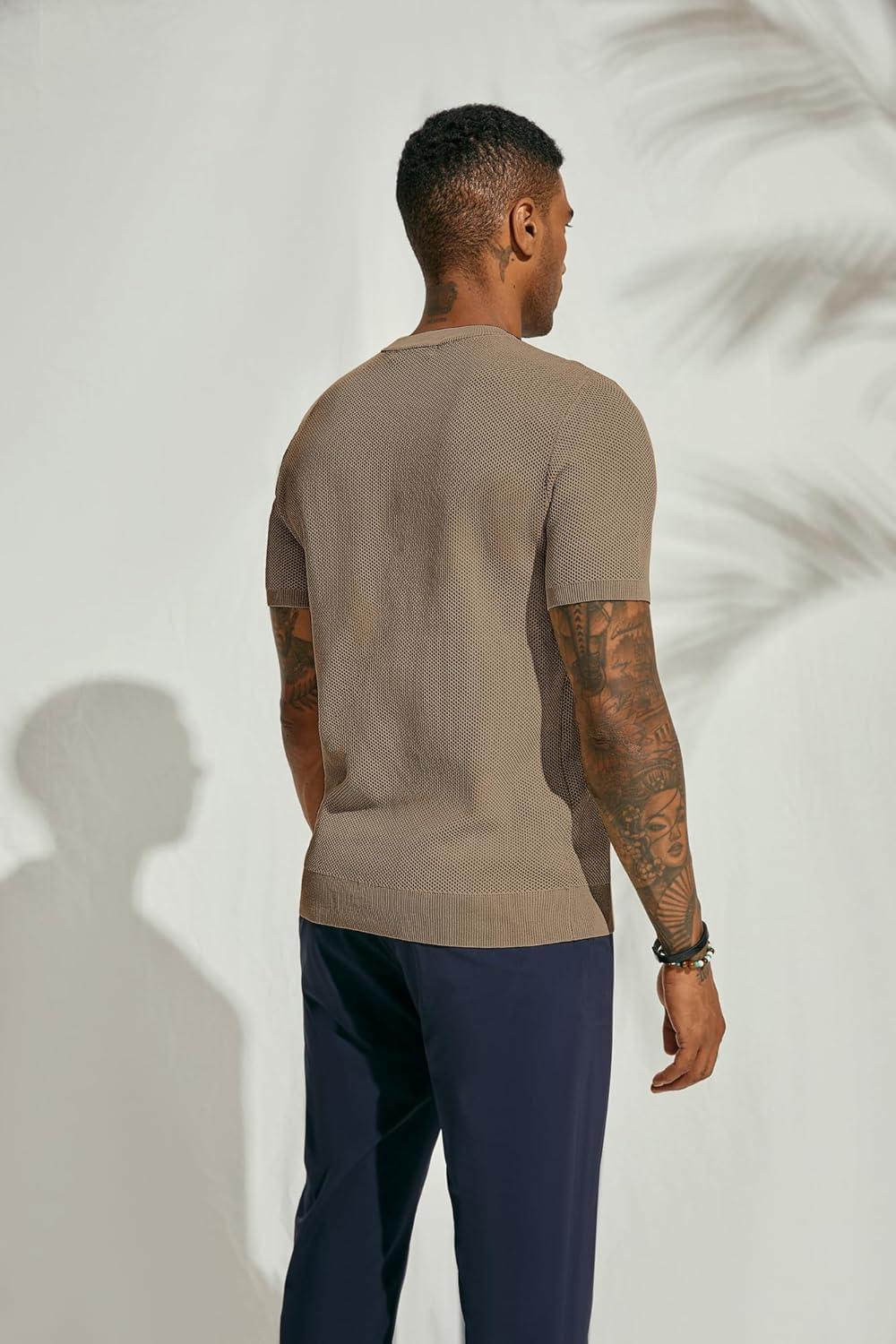 PJ PAUL JONES Mens T-Shirts Crew Neck Waffle Knit Shirt Short Sleeve Tee Shirts Fashion Casual Pullover Tops(Camel)