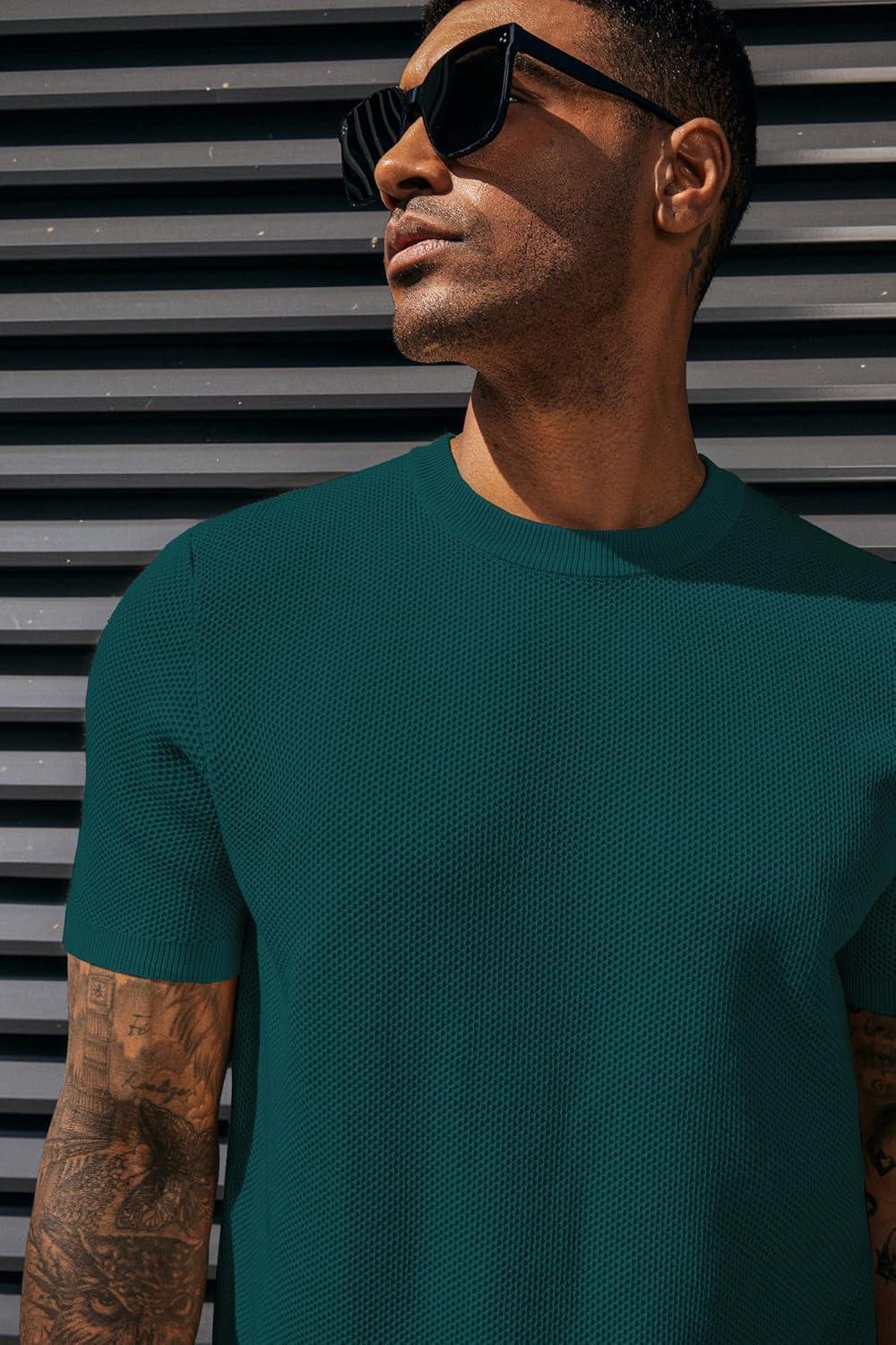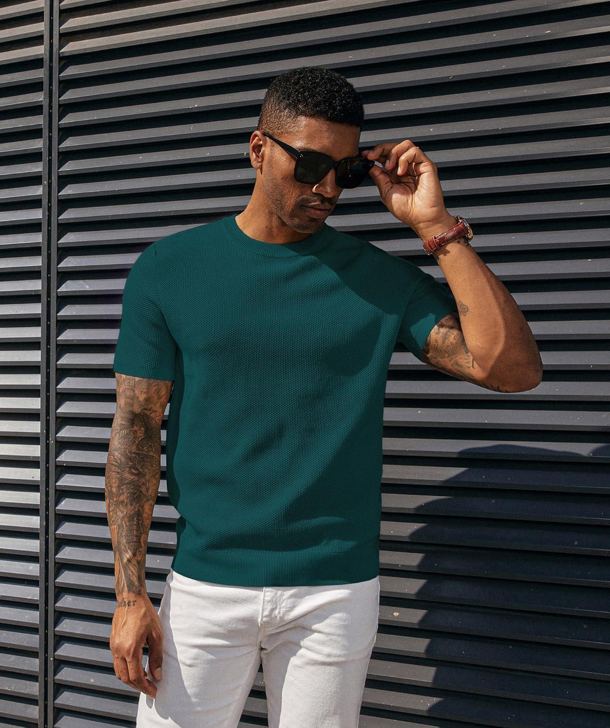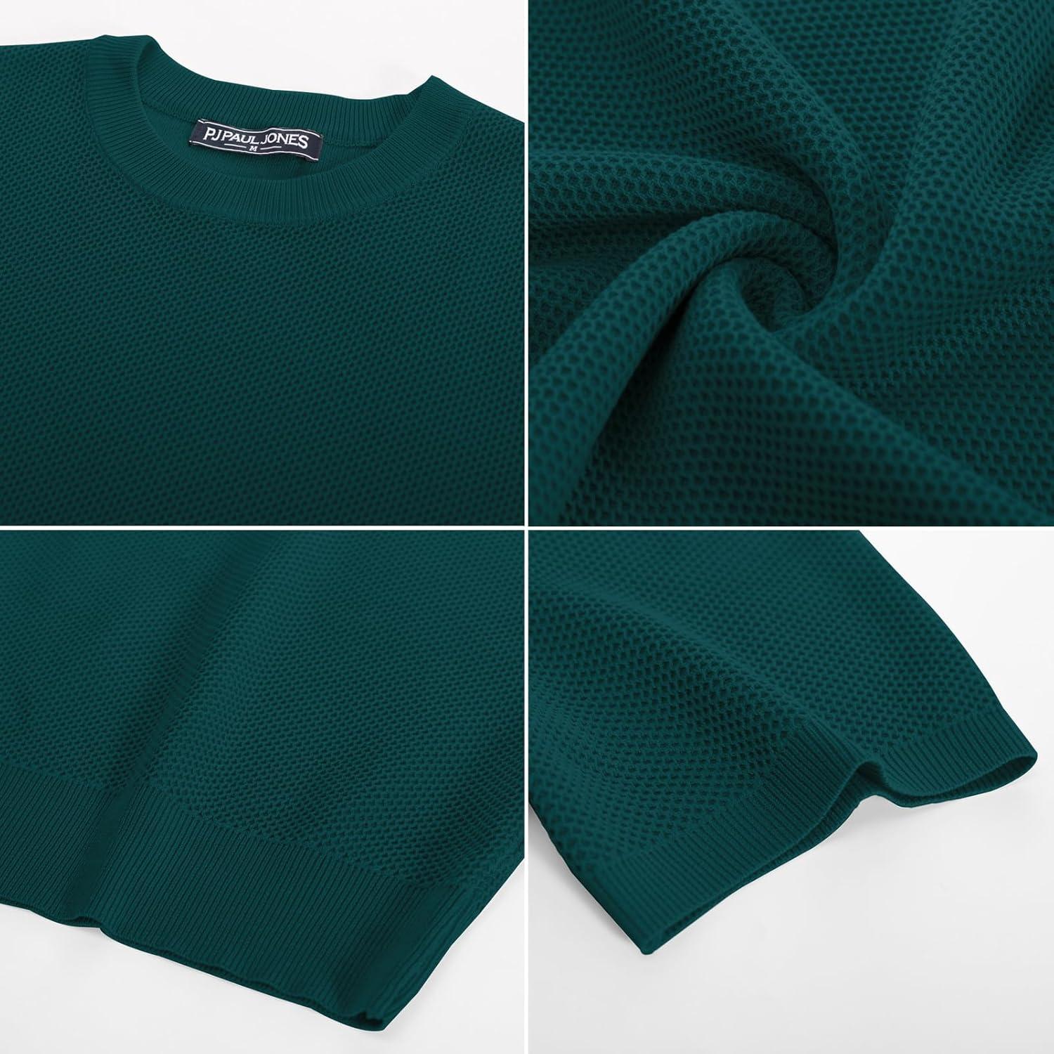 PJ PAUL JONES Mens T-Shirts Crew Neck Waffle Knit Shirt Short Sleeve Tee Shirts Fashion Casual Pullover Tops(Dark Green)