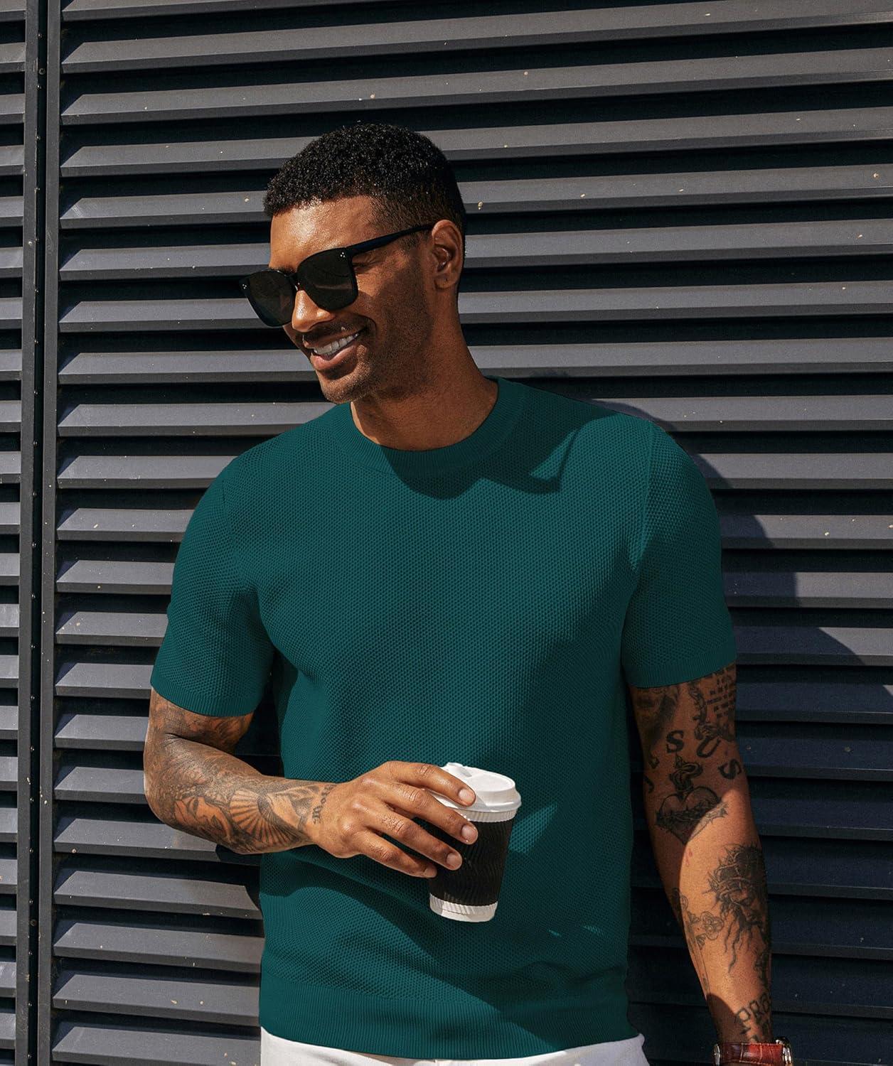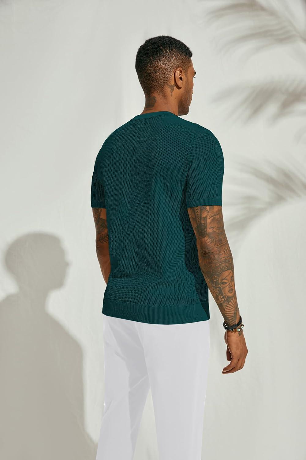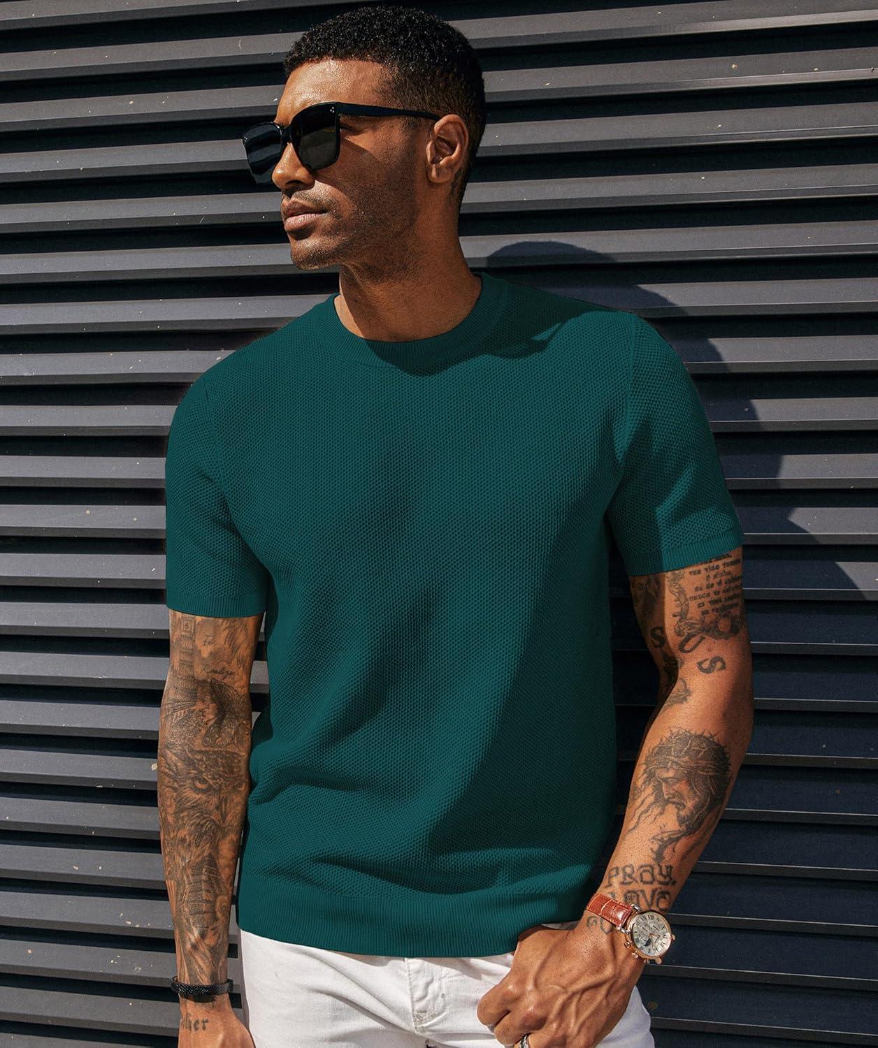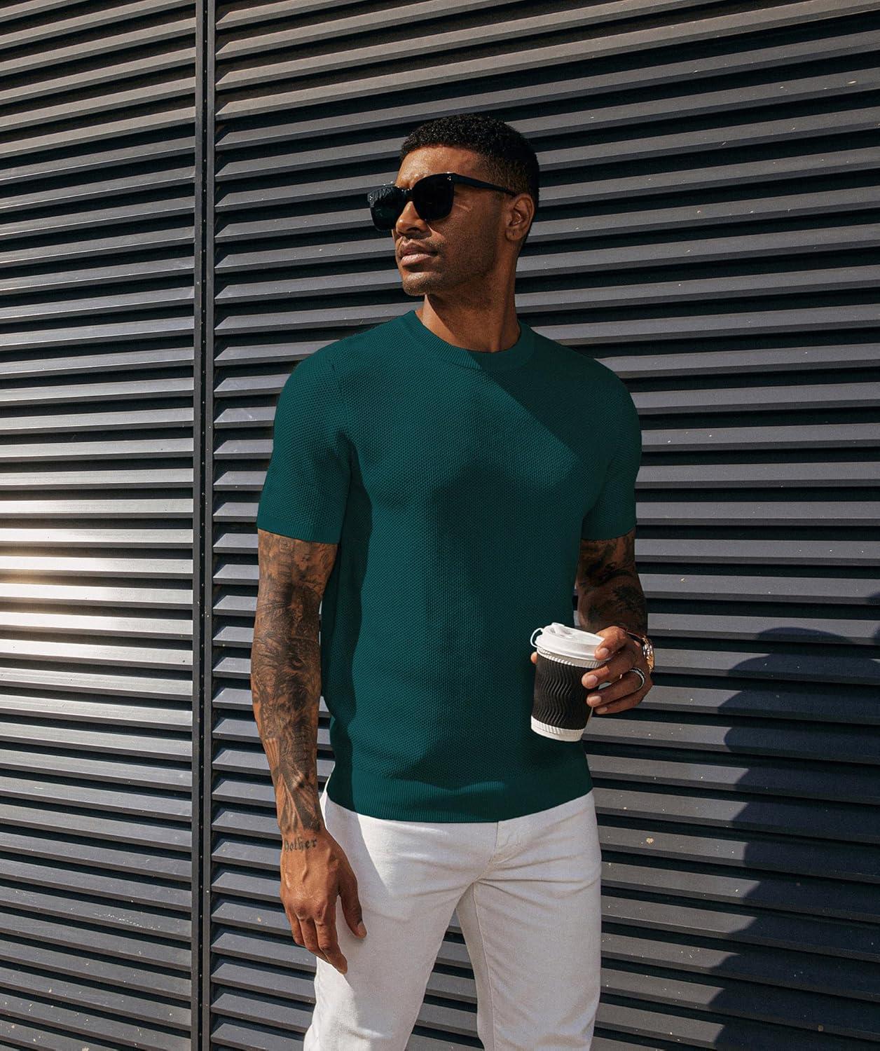 PJ PAUL JONES Mens T-Shirts Crew Neck Waffle Knit Shirt Short Sleeve Tee Shirts Fashion Casual Pullover Tops(Dark Green)