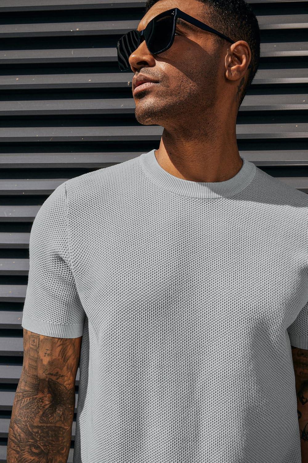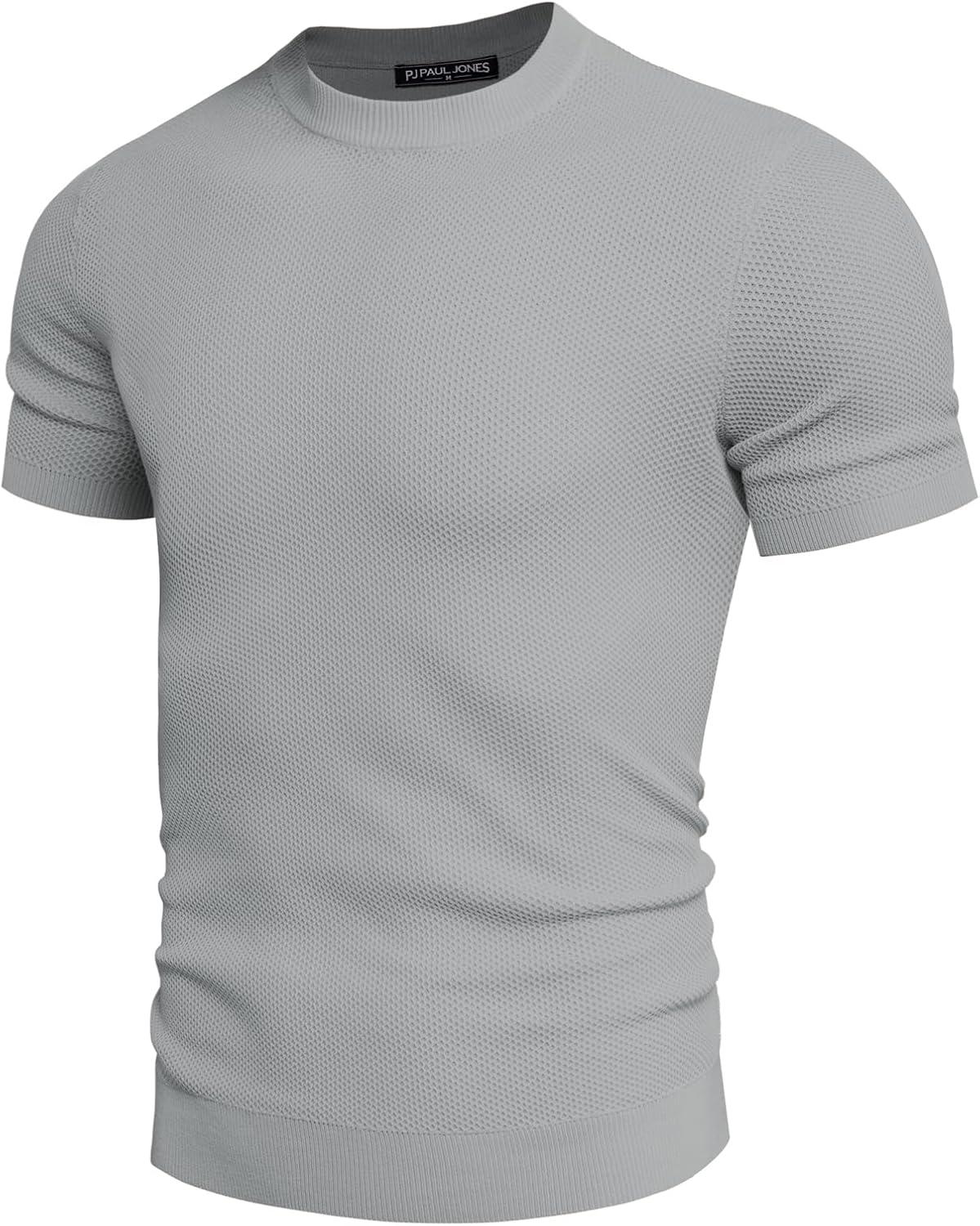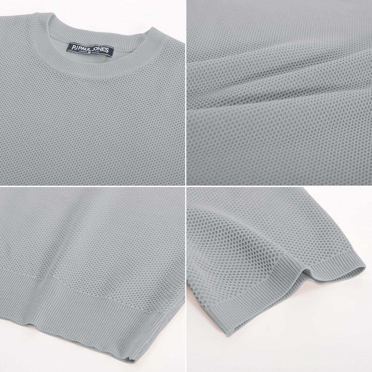 PJ PAUL JONES Mens T-Shirts Crew Neck Waffle Knit Shirt Short Sleeve Tee Shirts Fashion Casual Pullover Tops(Silver Gray)