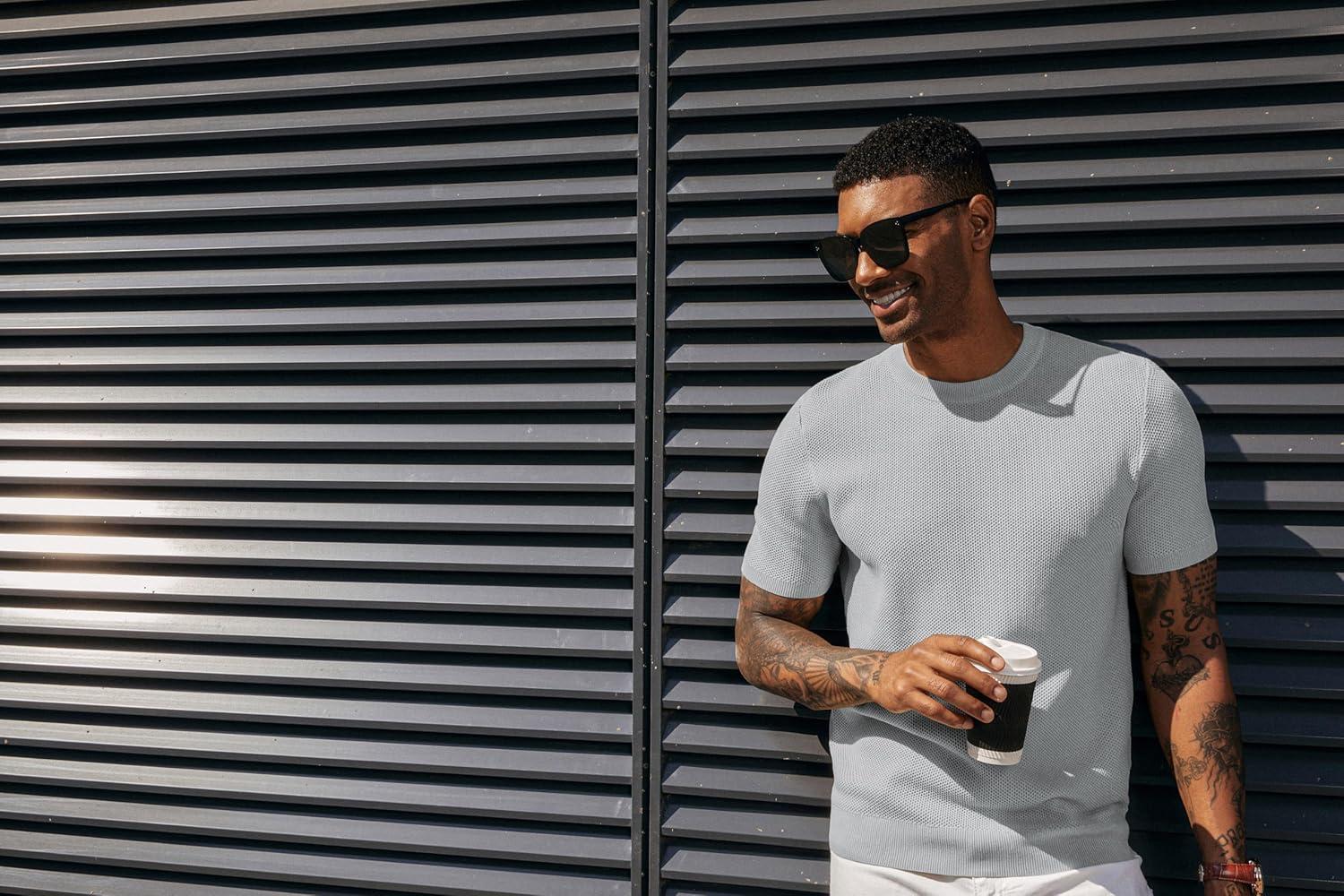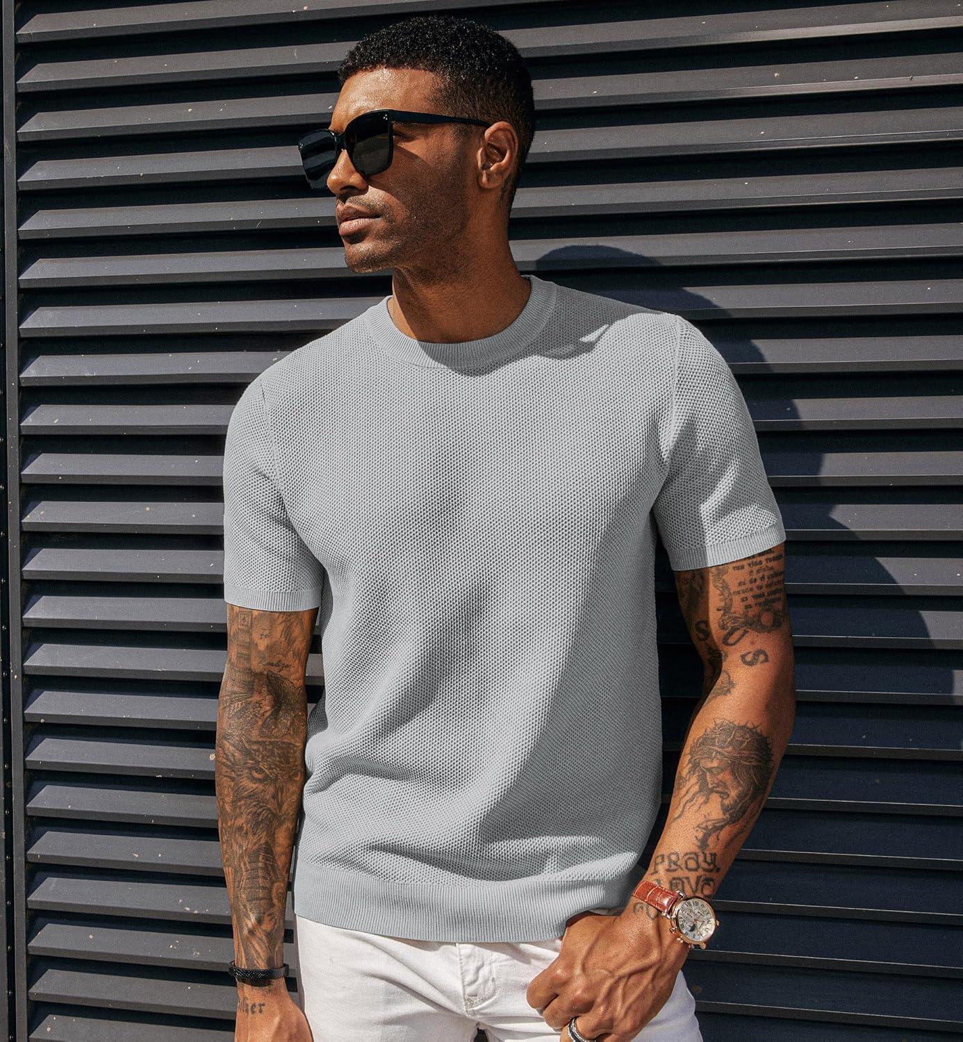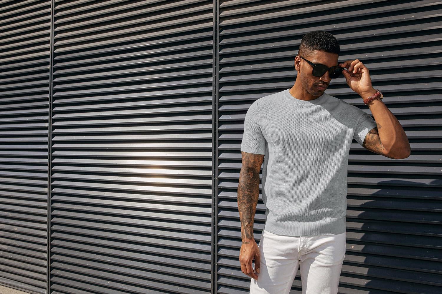PJ PAUL JONES Mens T-Shirts Crew Neck Waffle Knit Shirt Short Sleeve Tee Shirts Fashion Casual Pullover Tops(Silver Gray)