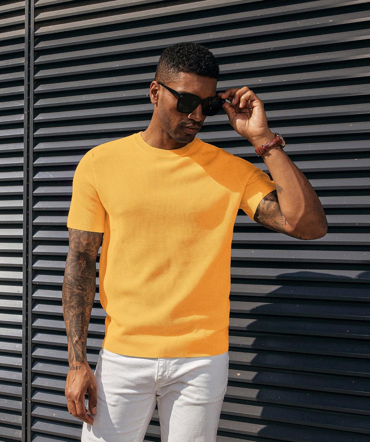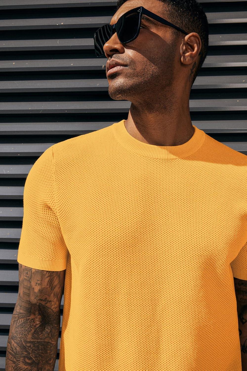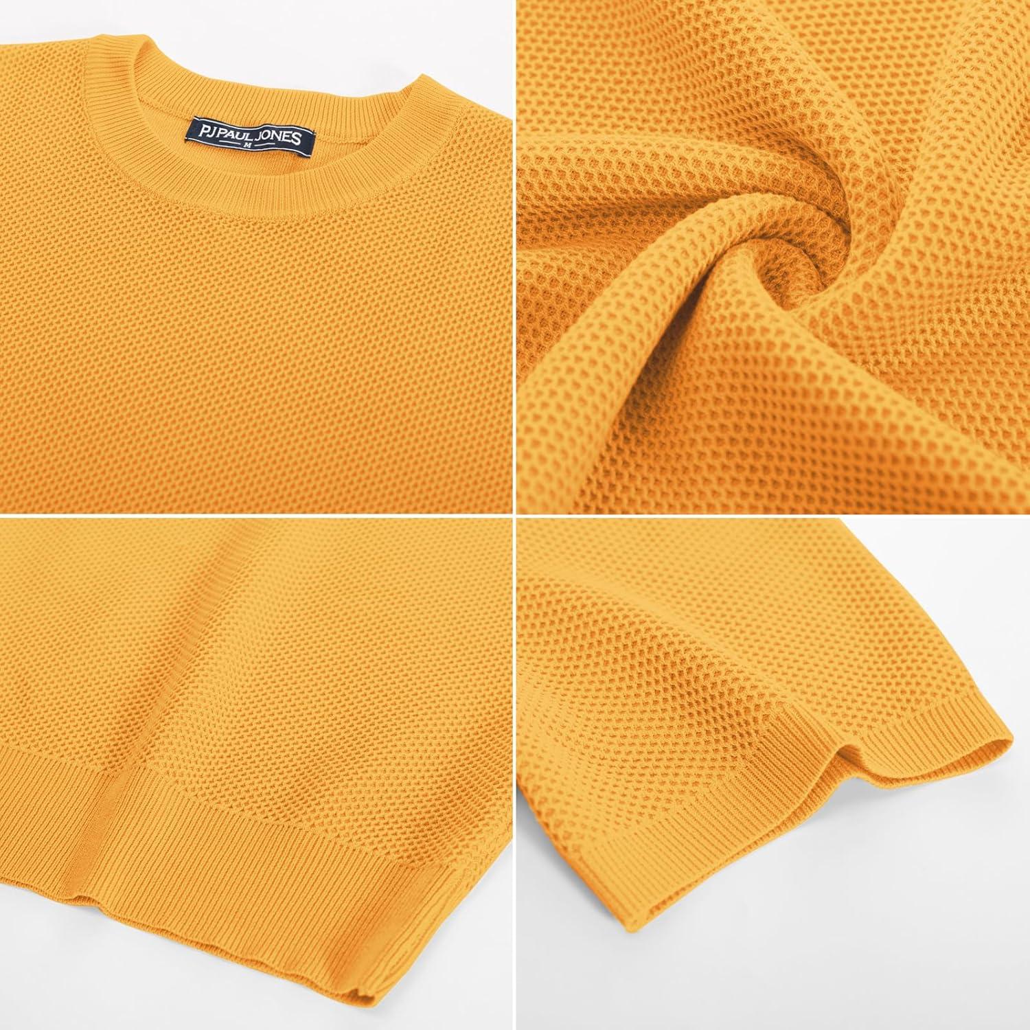 PJ PAUL JONES Mens T-Shirts Crew Neck Waffle Knit Shirt Short Sleeve Tee Shirts Fashion Casual Pullover Tops(Yellow)