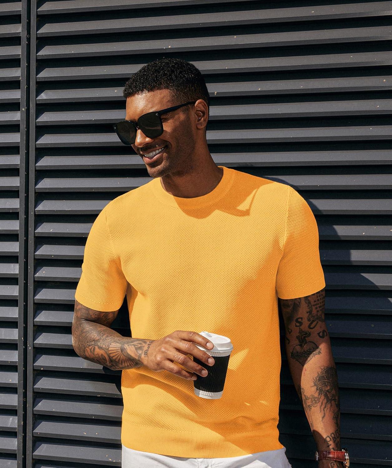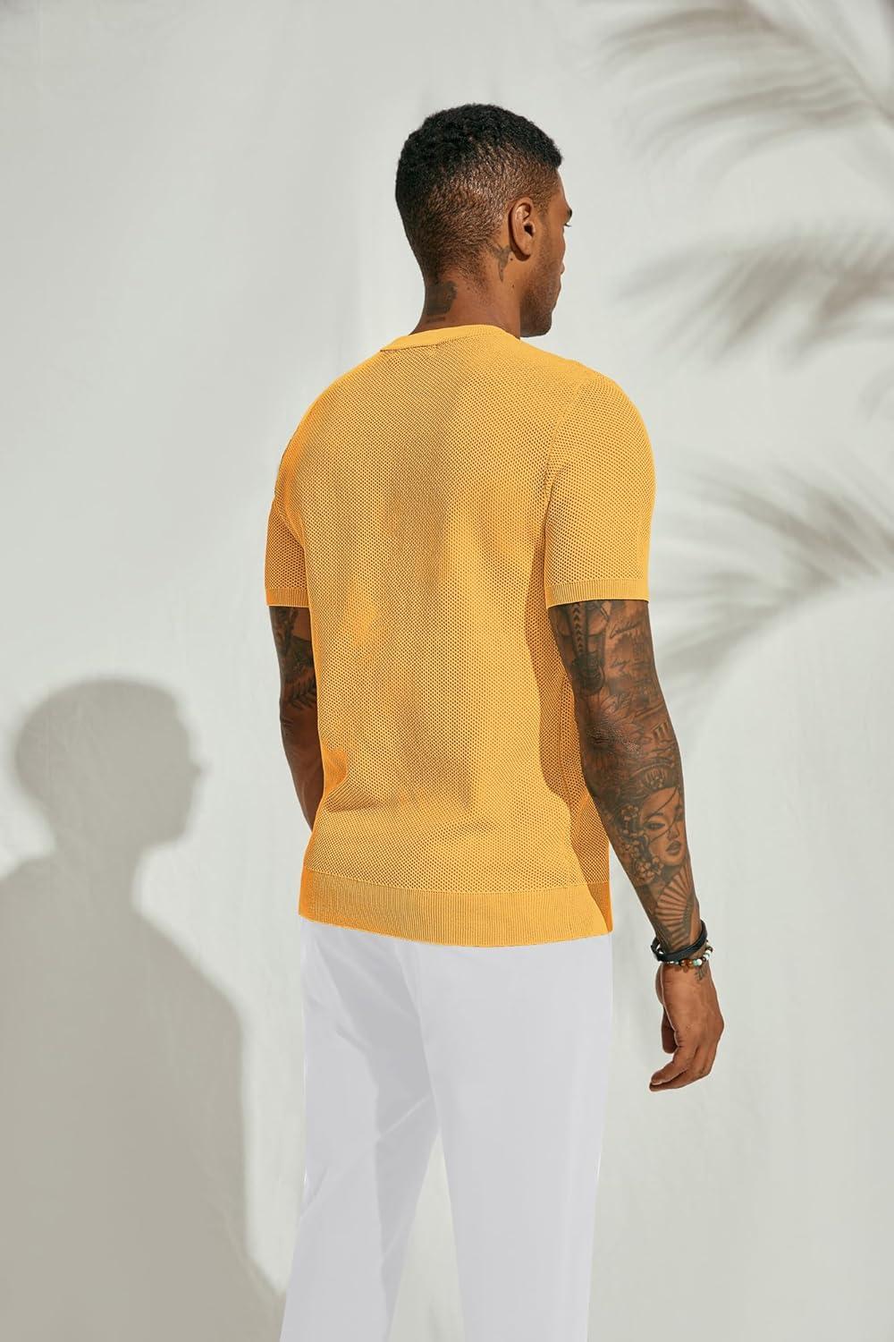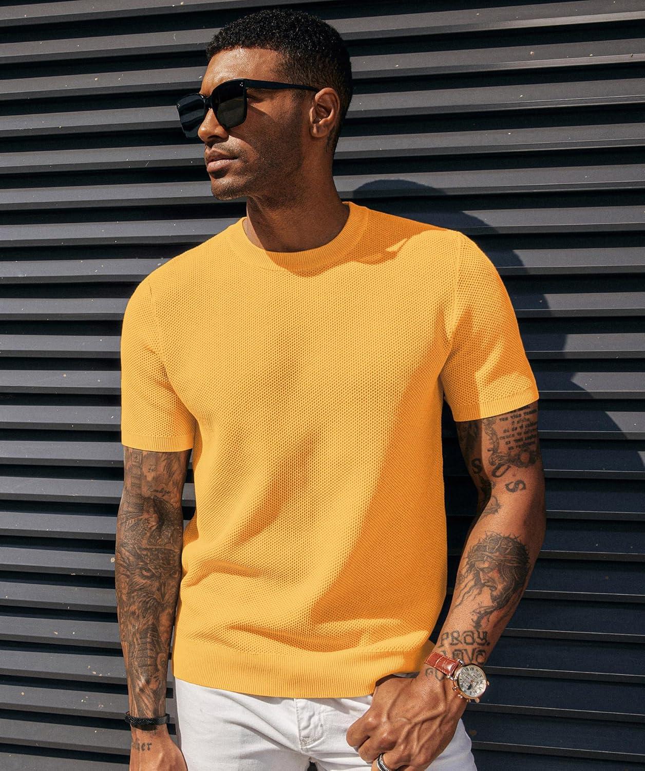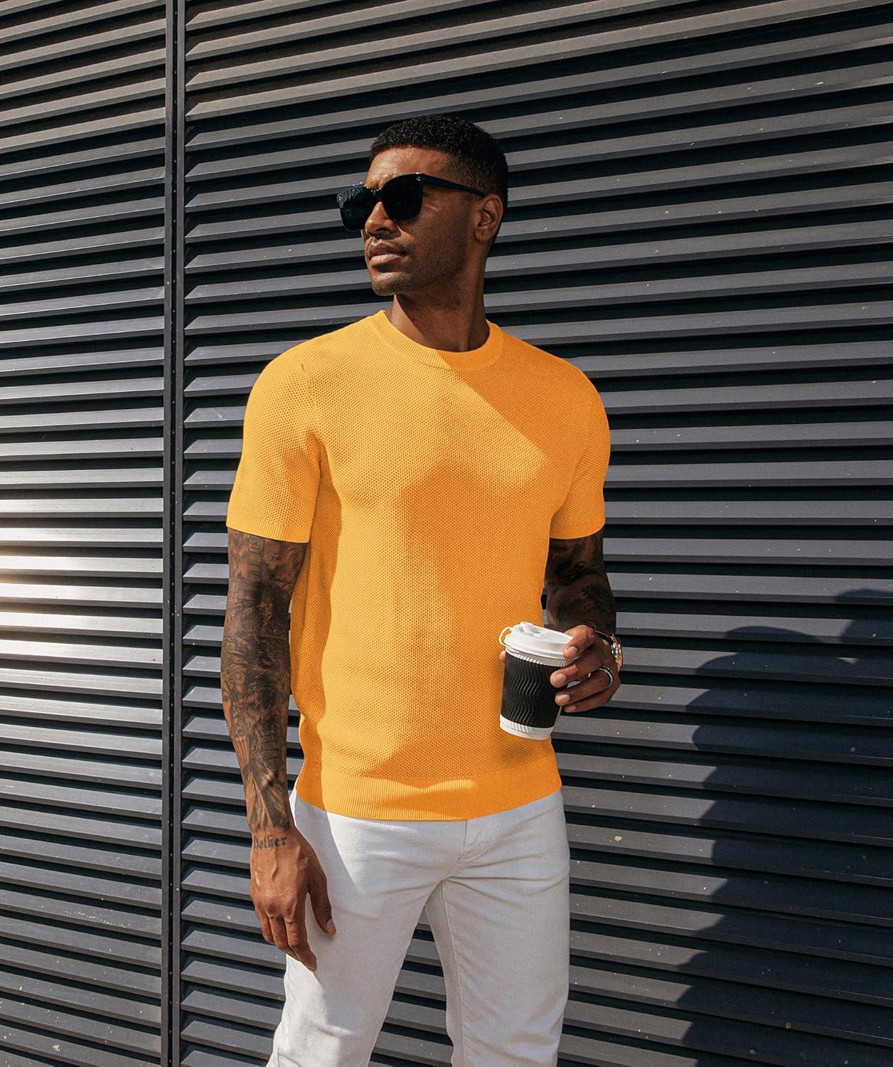 PJ PAUL JONES Mens T-Shirts Crew Neck Waffle Knit Shirt Short Sleeve Tee Shirts Fashion Casual Pullover Tops(Yellow)