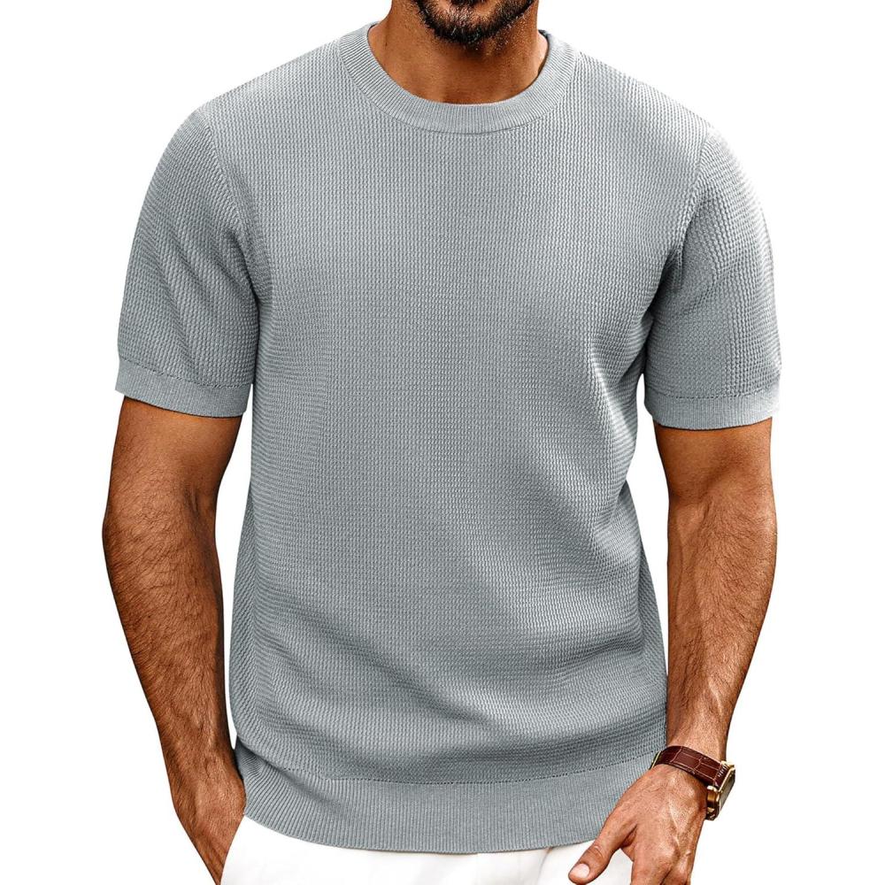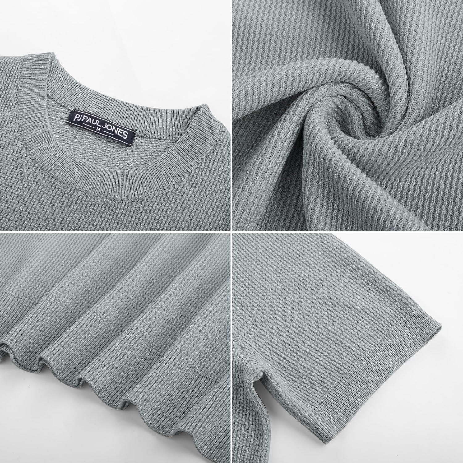 PJ PAUL JONES Mens T-Shirts Knit Short Sleeve Crewneck Shirt Casual Textured Pullover Tees(Light Grey)