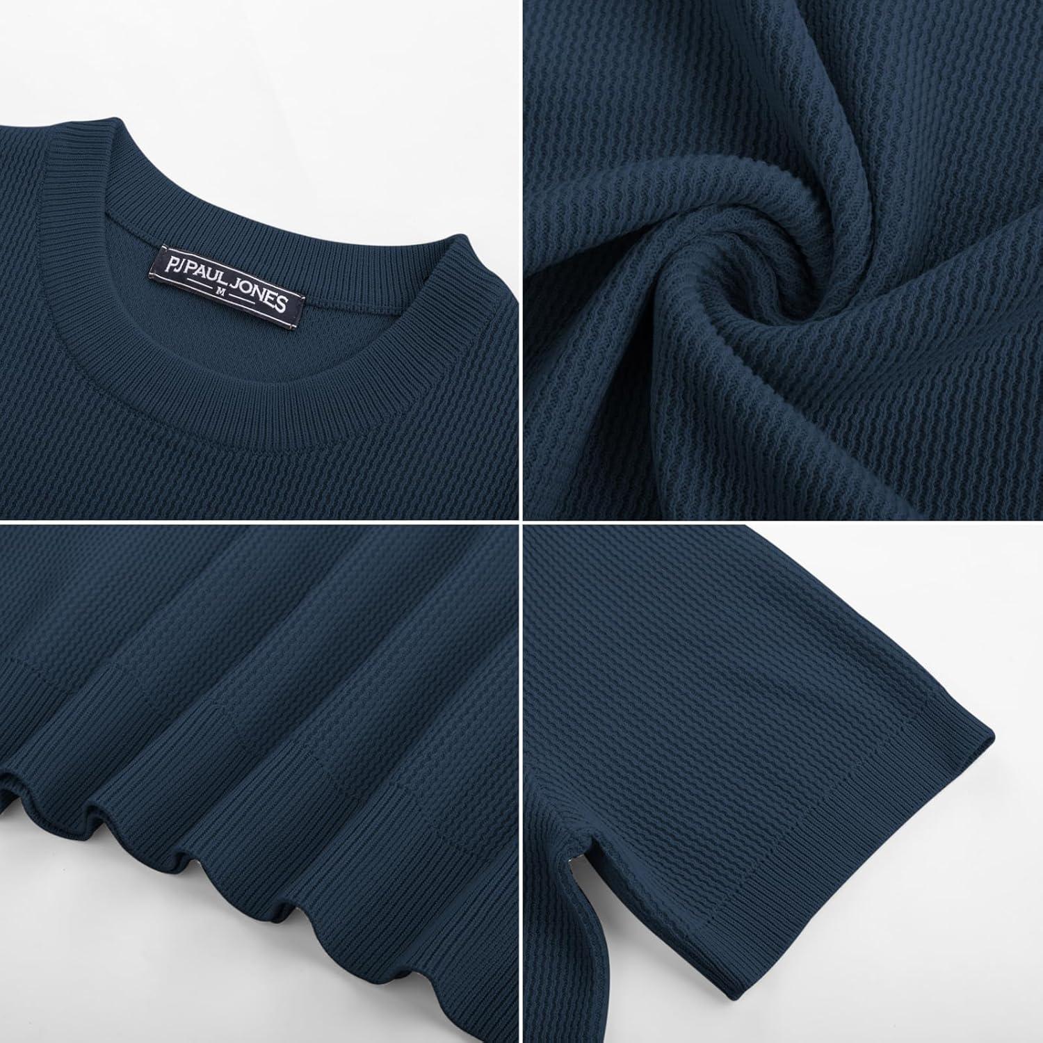 PJ PAUL JONES Mens T-Shirts Knit Short Sleeve Crewneck Shirt Casual Textured Pullover Tees(Navy Blue)