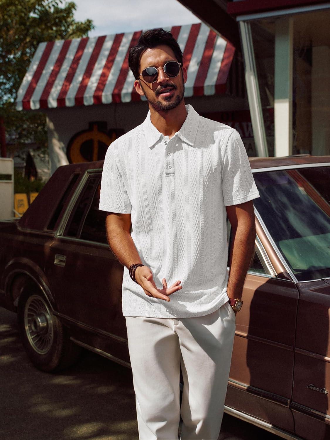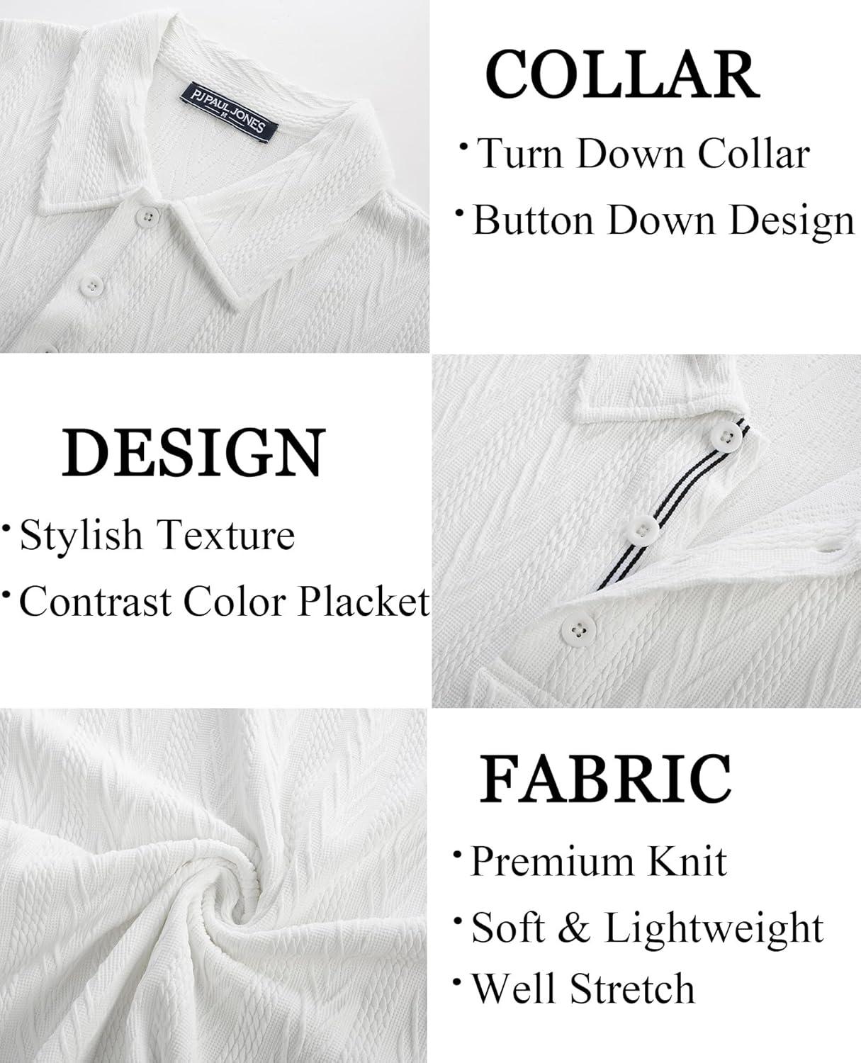 PJ PAUL JONES Men’s Textured Knit Polo Shirt Short Sleeve Regular Fit Stretch Collared Summer Shirts(White)