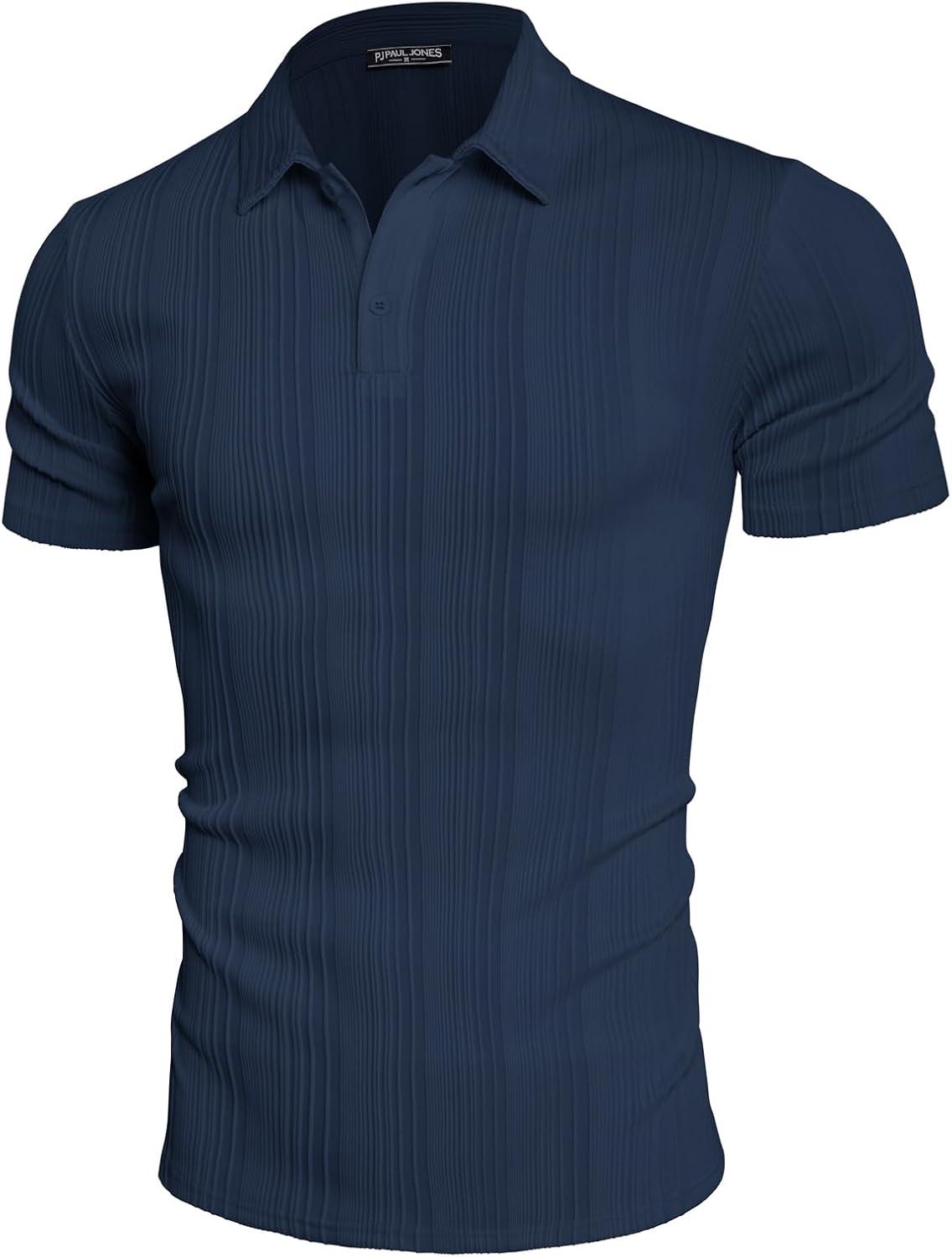 PJ PAUL JONES Mens Textured Knit Polo Shirts Regular Fit Stretchy Golf Shirts(Navy)