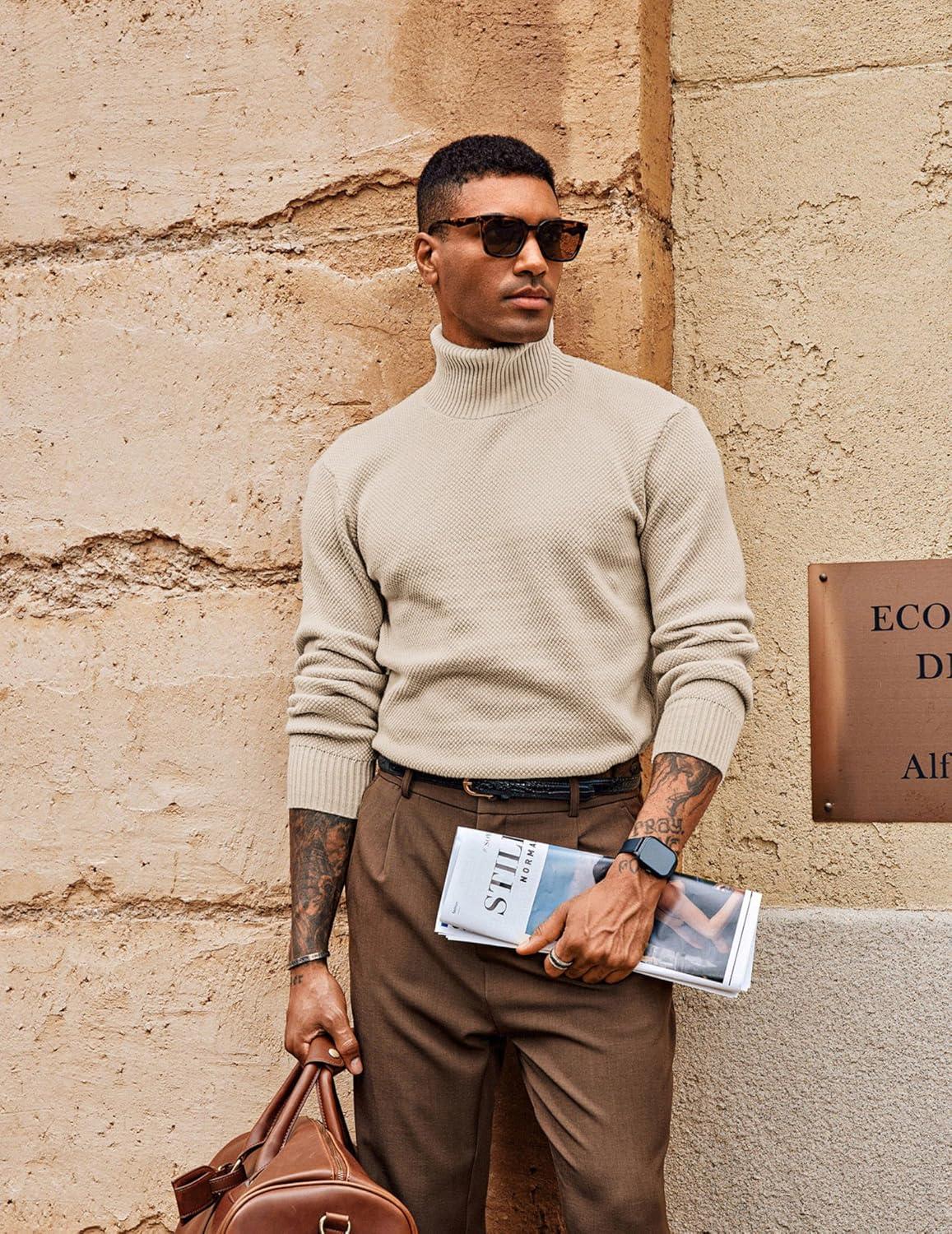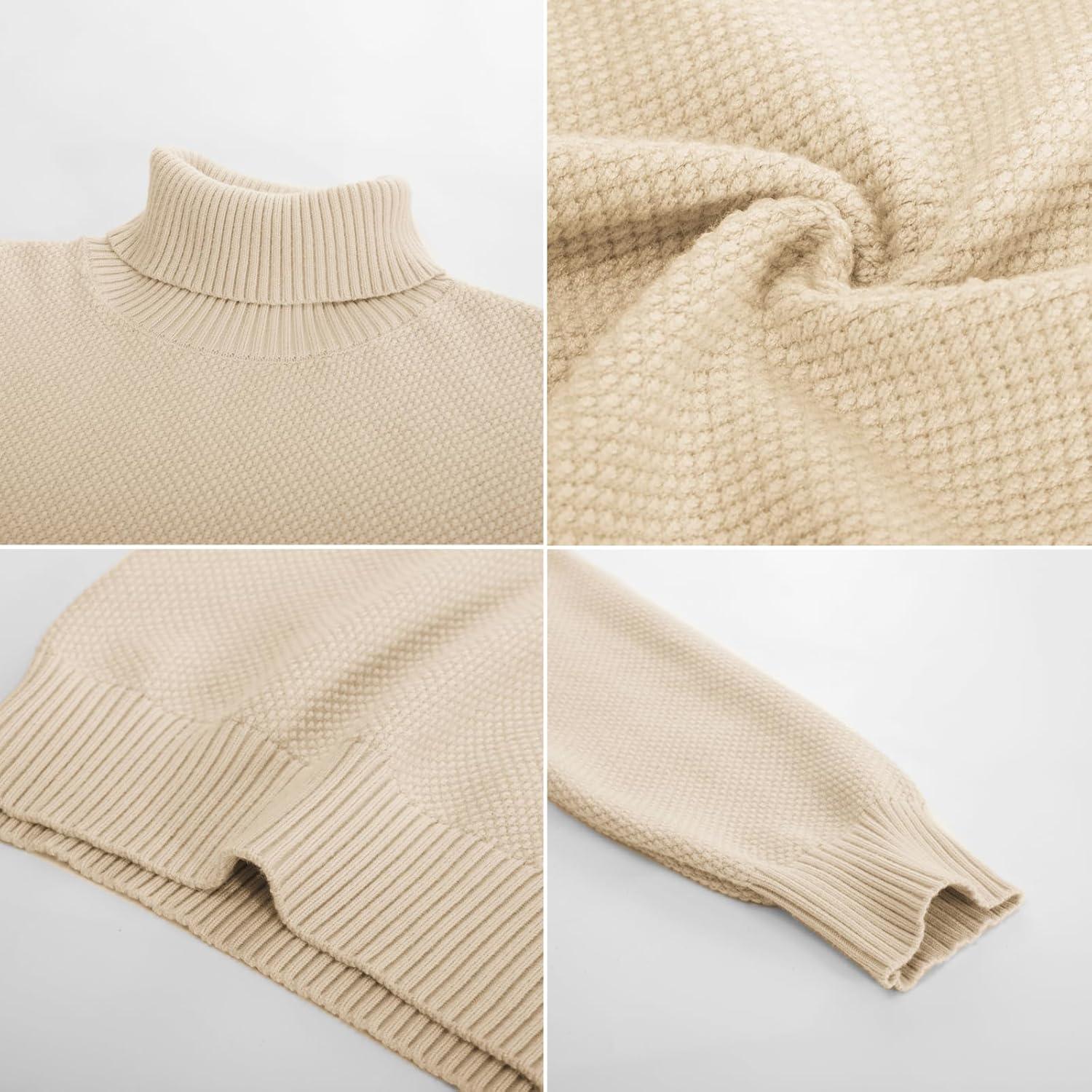PJ PAUL JONES Mens Turtleneck Sweaters Long Sleeve Mock Neck Knit Sweaters Ribbed Slim Pullover Sweater(Apricot)