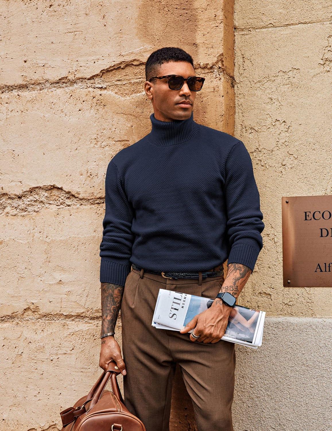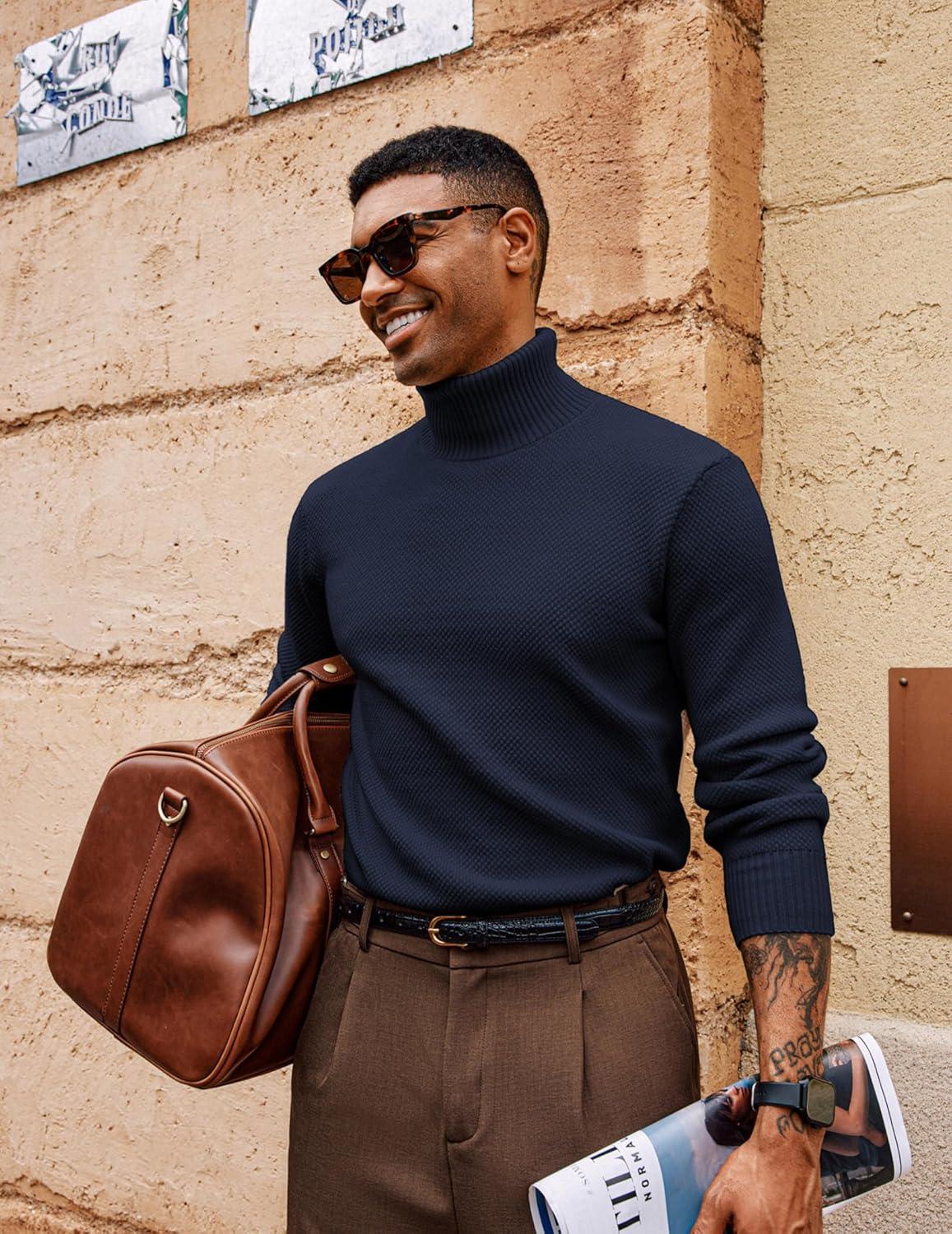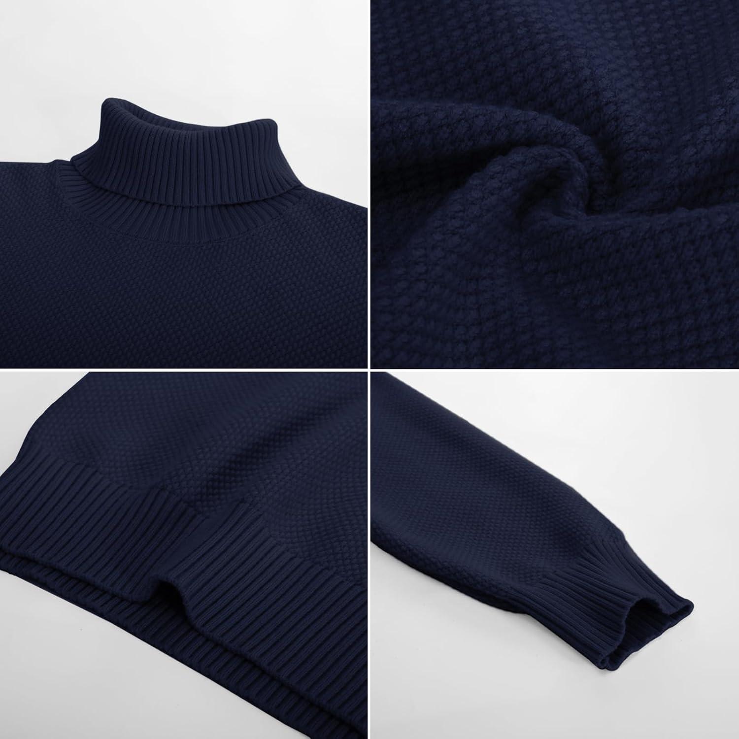 PJ PAUL JONES Mens Turtleneck Sweaters Long Sleeve Mock Neck Knit Sweaters Ribbed Slim Pullover Sweater(Navy Blue)
