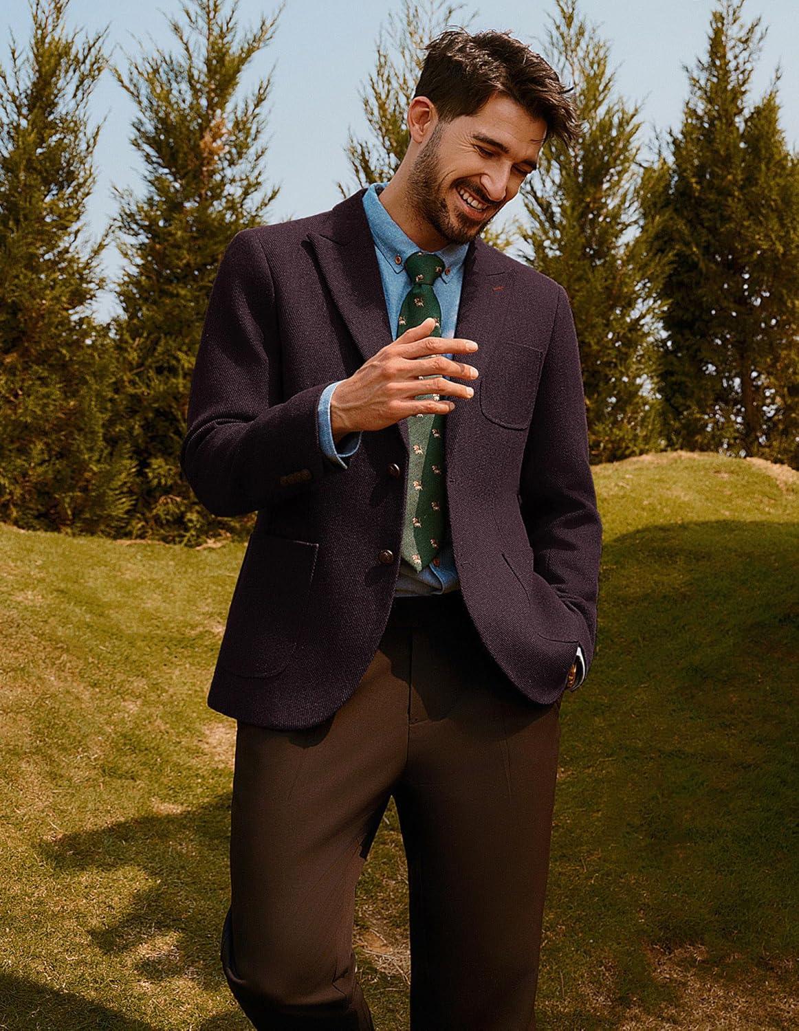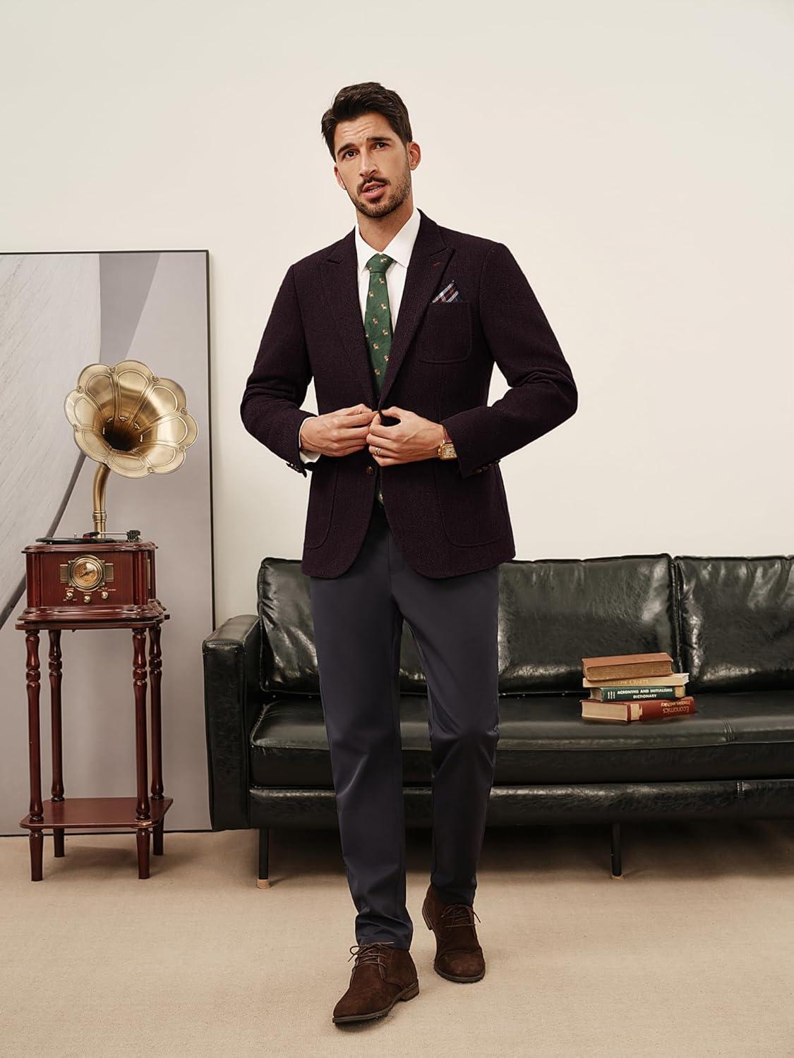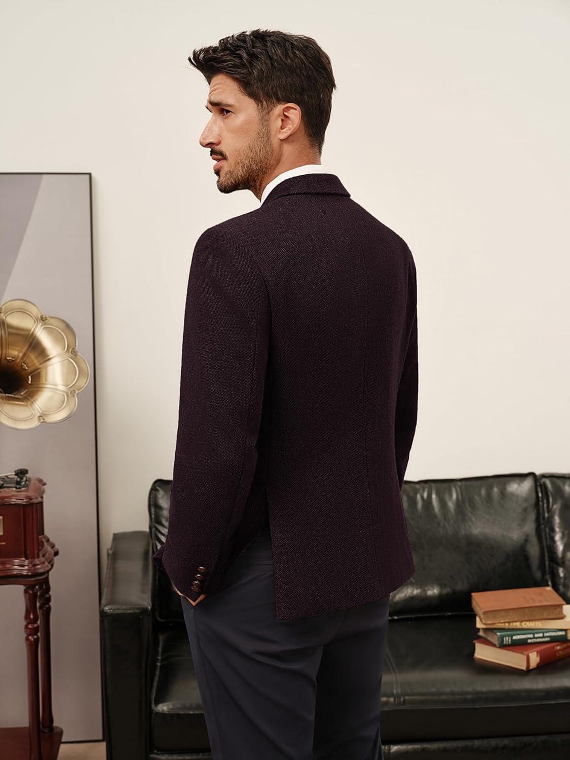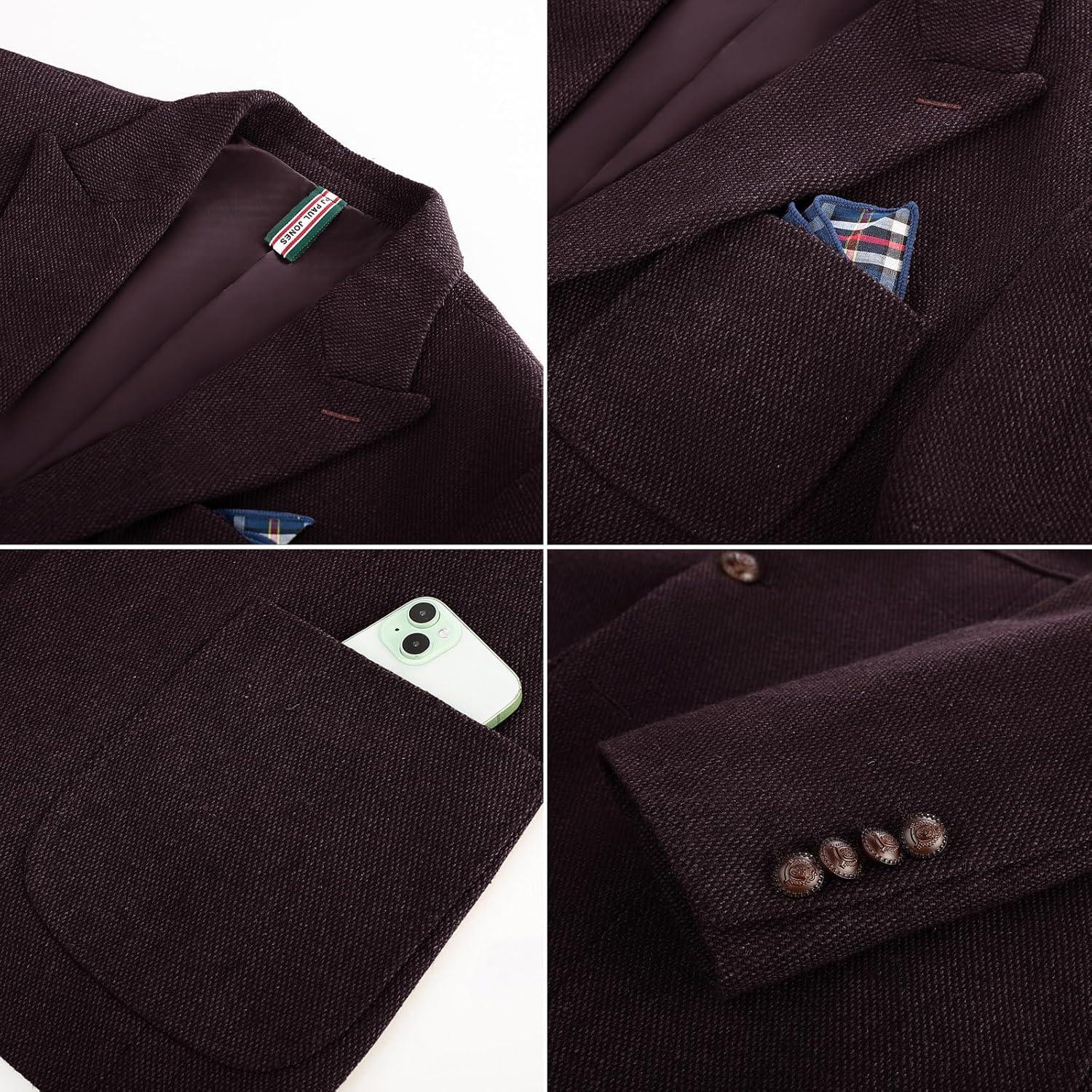 PJ PAUL JONES Mens Tweed Blazer Wool Sport Coat Two Button Peak Lapel Vintage Suit Jackets(Wine Red)