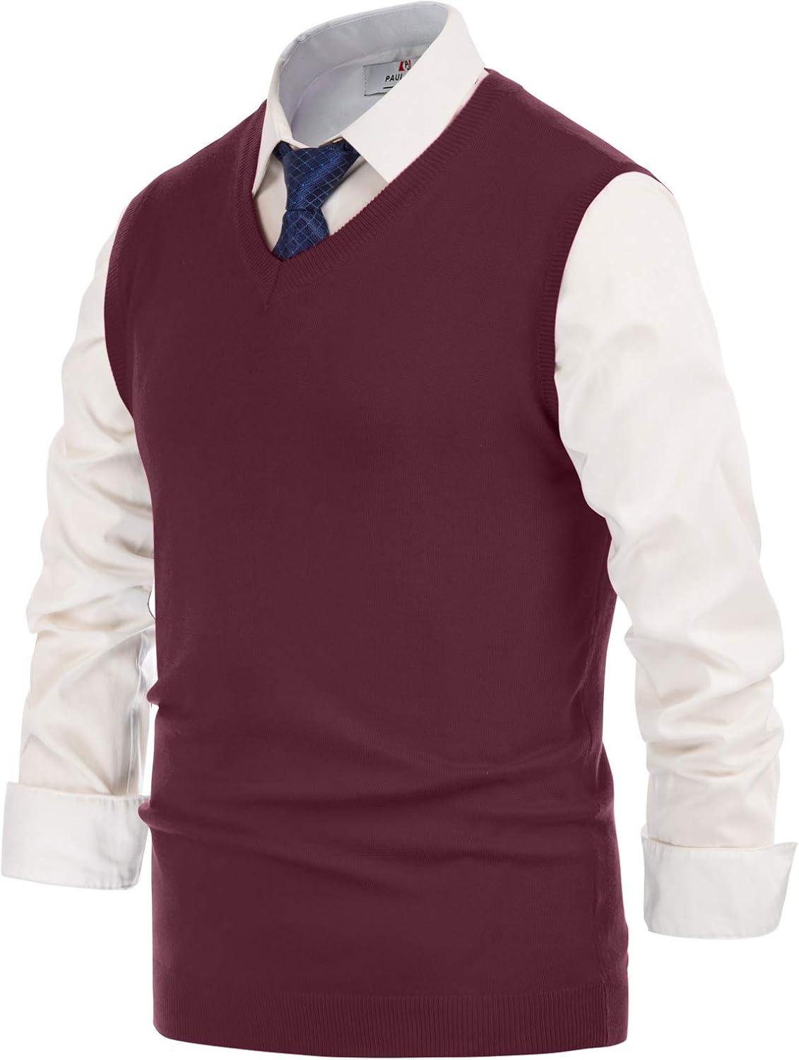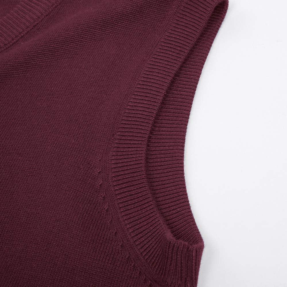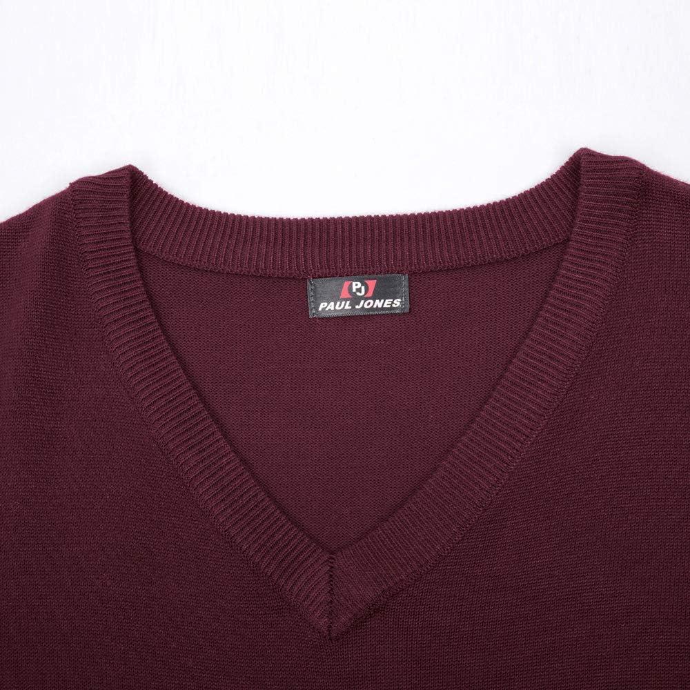 PJ PAUL JONES Mens V-Neck Knitted Sweater Vest Solid Plain Sleeveless Pullover Knitwear(Burgundy)
